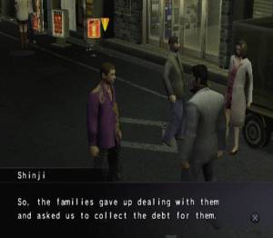 Yakuza (PS2) jest tytułem bardzo silnie stojącym fabułą. Nic dziwnego skoro historia opowiedziana przez tytuł, jest dziełem Toshihiro Nagoshiego, który nie tylko wygląda jakby sam był częścią „ciemnej strony” Japonii, ale i posiada wykształcenie w produkcji filmów. Całość jest dobrze prowadzona i przypomina mi filmy Takeshi Kitano, czy – prawdopodobnie – bardziej znane Police Story. Mamy tutaj drogę ku odkupieniu, poszukiwanie prawdy, zdradę, szczyptę polityki i oczywiście codzienność Yakuzy. Nie jestem znawcą tematyki mafii z Kraju Kwitnącej Wiśni, ale tytuł zrobił na mnie wrażenie bardzo szczegółowym trzymaniem się odpowiedniego nazewnictwa Yakuzy. Wszystkie poznane postacie są nam przedstawiane z imienia i nazwiska, a także pozycji w „drzewku” rodziny i klanu. Osób do zapamiętania jest bardzo dużo, ale po początkowym zagubieniu i kilku pokonanych rozdziałach, zaczynamy się w tym łapać. Autentyczność produkcji budują również takie elementy jak ubiór, brutalność i bezpardonowość przedstawionej w grze Yakuzy. Morderstwa, szantaże, zastraszanie – jest tutaj wszystko. Nawet w Def Jam: Fight for NY (PS2) nie leciało tyle przekleństw i „wiązanek” w dialogach jak tutaj. Podobało mi się bardzo i mimo, że ktoś może uznać takie „rzucanie łaciną”, za pierdołe, to uwierzcie mi grając w japońską grę z angielskim dubbingiem, bardzo one pomagają wczuć się w gangsterski klimat produkcji. Dla miłośników ogrywania gier z Japonii, z tamtejszą ścieżką dźwiękową muszę zmartwić: nie ma możliwości zmiany języka, choć angielska wersja nie jest zła. Nazwy związane z poszczególnymi szczebelkami mafii oraz takie zwroty jak aniki, oyabun, senpai nie są tłumaczone. Podobny zabieg m.in. zastosowano w trylogii Ezio serii Assassin’s Creed. Dubbing do plusów, a brak japońskiej ścieżki do minusów zdecydowanie, gdyż ta gra to JAPONIA.