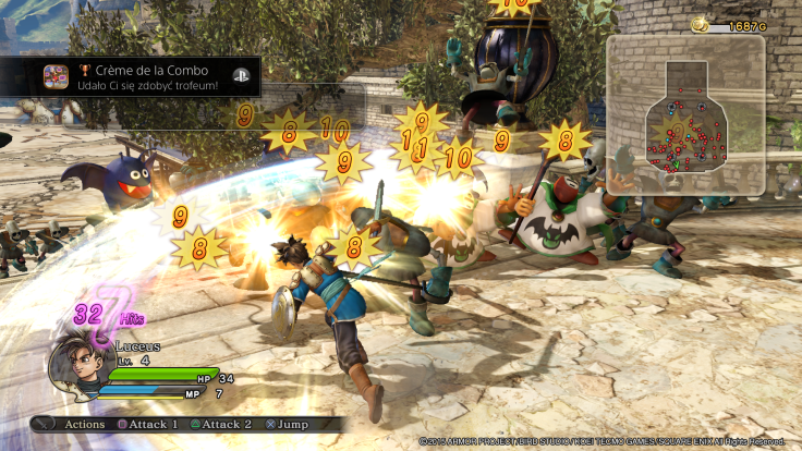 Każdy z bohaterów posiada swój unikalny, związany z władaną bronią styl walki, zestaw umiejętności i coup de grace – atak specjalny. Jasne. Nie uświadczymy tutaj skomplikowanych combo dla każdego bohatera, a umiejętności odpalane są tymi samymi kombinacjami klawiszy, ale mimo wszystko czuć różnicę pomiędzy bohaterami. Lokacje natomiast pozbawiono ogromnych połać terenu do przemierzania, pustych z odległym horyzontem. Z tego, co widziałem na materiałach z gier KOEI Tecmo, o których wspomniałem na początku, to mapy są znacznie mniejsze i co ważne: bardziej „wypełnione”. Zarówno zabudowaniami, jak i przeciwnikami, gdzie w kontekście różnorodności mamy do czynienia z paletą głównej serii Dragon Quest. Kto grał w jakąkolwiek z części natychmiast rozpozna pewne „moby”. Większość przeciwników w grze posiada swoje unikalne ataki i mimo faktu, że sporo z nich nie przeżyje na tyle długo byśmy mogli je dokładnie zanalizować, to przynajmniej bujność ich wykonania cieszy oko. Coś, co rzucało mi się w oczy podczas oglądania materiałów z Dynasty Warriors: walka z setkami identycznych klonów żołnierzy. W Dragon Quest Heroes podczas misji spotkamy znacznie bardziej zróżnicowane grupy. Na plus.