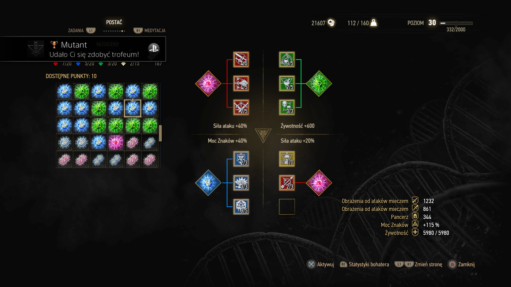 Nie zapominajmy jednak, że Wiedźmin 3: Dziki Gon (PS4) to gra, w którą trzeba grać, więc jest gameplay – mistrzowska dedukcja. Jako RPG musi z gatunku posiadać system rozwoju postaci, połączony z frywolnym tworzeniem drzewek umiejętności oraz najlepiej walkę. Wszystko jest na miejscu. O ile kreatora postaci nie odnajdziemy w grze, a jedyne zmiany wyglądu ciała bohatera dokonujemy poprzez wizytę u fryzjera, tak w kwestii umiejętności gra znów rozwala system. 4 rodzaje drzewek skillów. Związane z atakiem, ze znakami wiedźmińskimi (taka mini-magia), eliksirami/odwarami oraz ogólne. W 3 głównych drzewkach po 20 umiejętności, podzielone na 5 wierszy, gdzie każdy z nich by się aktywować wymaga odpowiedniej ilości odblokowanych umiejętności w wierszach powyżej – grający w Borderlands™ (PS3) od razu się połapią. Do tego umiejętności posiadają swoje poziomy, przeważnie 5 lub 3 i sami widzicie. Ja osobiście muszę przyznać, że do momentu, gdy dowiedziałem się o istnieniu możliwości odpłatnego resetowania wszystkich skilli, bardzo się bałem w coś inwestować by czasem nie spieprzyć sobie postaci. Możliwości budowy jest szalenie dużo i możemy dowolnie Geralta przystosować do naszego stylu gry.
