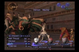 Walczyć – tak ogólnie – to w Shin Megami Tensei: Digital Devil Saga (PS2) trzeba dużo. Praktycznie skupia się na tym cała gra. Próżno szukać tutaj questów pobocznych, zadań w stylu „przynieść, podaj, pozamiataj”. Gra rzuca nas od lochu do lochu, gdzie do rozwiązania będziemy mieli jakiś mechanizm w formie zagadek, który wraz z biegiem gry stają się co raz trudniejsze i czasochłonne. Ostatni dungeon powodował u mnie wrzenie krwi. Będziemy walczyć, walczyć i jeszcze raz walczyć, a same walki również ostro mogą zdenerwować. Wszystko za sprawą nieźle działającego AI przeciwników, czy po prostu schematom walk jakie zaimplementowali twórcy. O ile w napotkanych random encounters wystarczy poznać słabości przeciwników i odpowiednio ustawić sobie do nich drużynę, tak potyczki z bossami to już inna „para kaloszy”. Są wymagające, domagają się skrupulatnego poznania strategii przeciwnika i dopieszczenia nawet takich elementów naszej drużyny, jak ustawienie odpowiedniej kolejności w rzędzie ekipy – poważnie, to ma ogromne znaczenie. Bossowie są brutalni i się z nami nie certolą. Bez skrupułów wykorzystują każdy błąd. W szczególności dotyczy to bossów pobocznych, których obecność zastępuje w Shin Megami Tensei: Digital Devil Saga (PS2) side-questy. Jeśli nie straszne Wam były Ultima Weapon czy inne Dark Aeon’y, to side-bossowie tutaj stawią przed Wami takie same, a może i nawet większe wymagania. Sprowadza się to do tego, że walki dają w kość, a zwycięstwa są cholernie satysfakcjonujące. Jest to spory plus produkcji. W sieci wyczytałem, że tą serią twórcy chcieli wprowadzić markę SMT na szerokie wody sukcesu komercyjnego, więc postanowili nieco ułatwić swoją rozgrywkę – skoro tak, to boję się siadać do Shin Megami Tensei: Lucifer’s Call (PS2).
