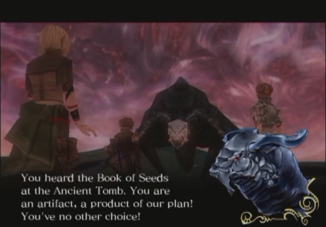 Ogólnie można to powiedzieć o całym tytule: gra momentów. Były chwile, które wykonano na tyle dobrze by zrekompensować np. 40 min bezmyślnego wymachiwania mieczem w brzydkich do porzygu lokacjach. Przez jakieś 3/4 gry, zmuszeni jesteśmy do obserwowania przewidywalnych do bólu, banalnych i co najgorsze niespójnych wydarzeń. Poważnie. Od pierwszej sekundy gry, wiemy kim okaże się naprawdę gość na ekranie, kto będzie zły, a kto dobry. Niektóre dialogi środka produkcji przeczą innym z początku. Inne znów są kompletnie nielogiczne, jednak ze względu na spoilery nie będę tutaj ich przytaczał – wierzyć będziecie musieli mi na słowo. Męczymy się więc i męczymy, by nagle dotrzeć do ostatnich kilku rozdziałów, które niepokojąco zaczynają w nas budzić ciekawość. Gdy Legna zaczyna „odkrywać karty” przed Nowe, tłumacząc mu wielki mistrz-plan rządzący światem oraz połączenie pomiędzy smokami, ludźmi i bezimiennymi bogami, zmuszony zostałem do przyjęcia „poważnej pozycji” na kanapie. Historia nabierała sensu i głębi, których brakowało praktycznie przez 20 godzin katuszy. Manah zaczyna ostro „odpierdalać palma”. Wykrzykuje coś o byciu „dobrą dziewczynką” i aby jej mama przestała ją bić, czego zwieńczeniem jest psychodeliczna podróż w głąb jej świadomości – przyznam to było ciekawe. Dla osób znających zakończenie ‘A’ Drakengard (PS2) dopowiem, że właśnie tę linię fabularną kontynuuje dwójka. Dowiemy się co Cain zrobił po uratowaniu świata i utraceniu cennej mu postaci oraz jakie skutki miało to na jego osobowości. Zresztą, jego pojawienie się w historii to również jeden z lepszych momentów produkcji. Gra ogólnie ma dużo smaczków dla znających pierwszą część, więc zachęcam do…obejrzenia streszczenie historii na YouTube. Szkoda, że tak późno Drakengard 2 (PS2) zaczyna intrygować, oraz że nieliczne ciekawe chwile mają za małą siłę przebicia ponad kiepską resztę. Mimo wszystko, plusik należy się za w/w plan dla świata. Nie wiem, czy ktoś z zespołu Cavia nie dzwonił do Taro w ramach konsultacji, ale całość ma sens nawet po zestawieniu obok siebie z jedynką i jest łatwiejsza w ogarnięciu.