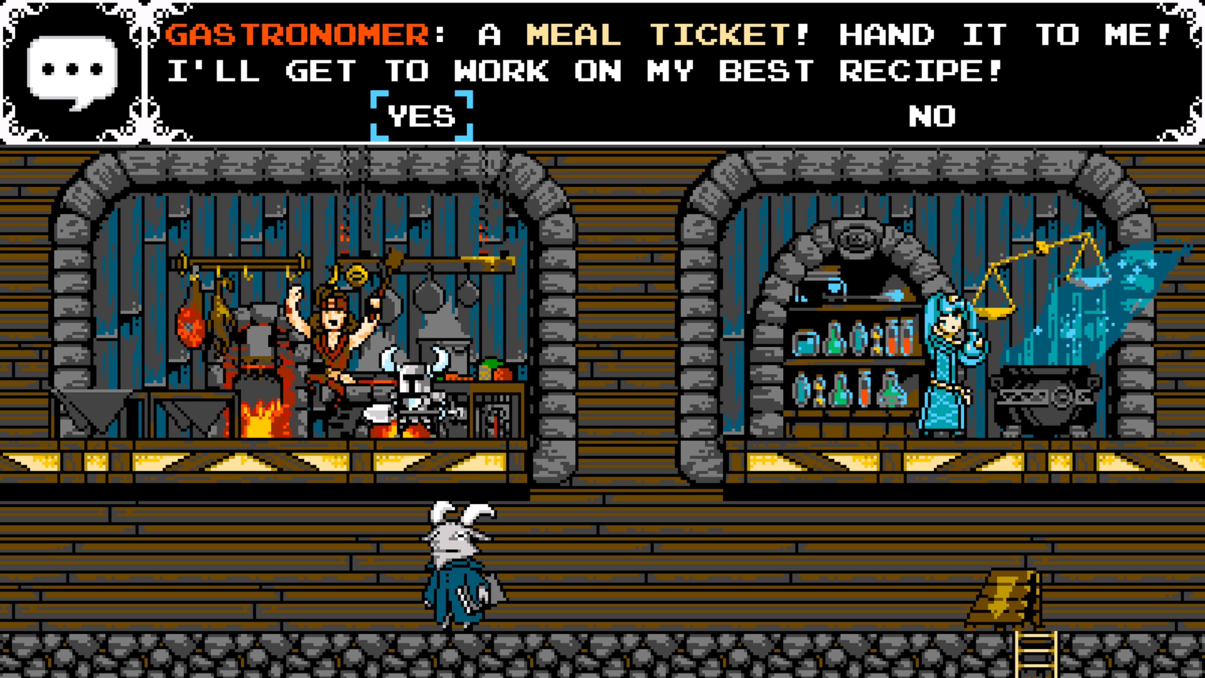 W grze, albowiem nie znajdziemy żyć. Zastąpiły je punkty kontrolne poziomów, do których wracamy po śmierci. Ułatwienie? Może i tak, ale jest haczyk. Gdy umrzemy część naszego zgromadzonego złota wypada i pozostaje w miejscu śmierci jako lewitujące worki mamony. Po odrodzeniu się mamy możliwość ich zgarnięcia, jednak tylko jeśli po drodze nie powinie nam się noga – khem, khem seria, khem souls – wtedy bowiem znów wypada z nas złoto, a to wcześniejsze oczywiście przepada. Wciąż za łatwo? No to lampiony, które wskazują miejsce odrodzenia możemy zniszczyć, otrzymując za to solidny zastrzyk kosztowności, w zamian za miejsce do odrodzenia się. Kolejną rzeczą nawiązująca do czasów teraźniejszych jest rozwój postaci i liczne przedmioty pomocnicze jakie możemy odblokować. W pierwszej kwestii mamy możliwość zwiększania za kasę punktów życia Rycerza Łopaty oraz punktów magii, służących do używania przedmiotów. Jest różdżka strzelająca w przód ogniem, są zielone kule przez chwilę odbijające się od wszystkiego i raniące przy tym przeciwników, a także takie cuda jak wędką. Część przedmiotów pozwala nam także na pokonywanie wcześniej niedostępnych miejsc, więc – w starym stylu – jeśli nie możemy gdzieś z początku się dostać, wystarczy wrócić nieco później z odpowiednim sprzętem. Te wszystkie elementy składają się w bardzo dobrze skomponowaną całość, które jest wystarczająco trudna by pobudzać w nas frustrację niepowodzeń i należycie ją rekompensować poczuciem zwycięstwa. Niezależnie czy chodzi o trudny fragment poziomu czy starcie z bossem, które nomen-omen, to kolejny świetnie wykonany kawał kodu.