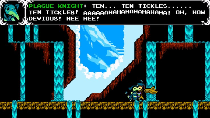 Z początku przyznam się szczerze i bez bicia, że niezbyt wiedziałem nad czym zachwycają się znane mi osoby, które uważam za opiniotwórcze w branży. Jasne kopa nostalgii dostałem, ale dopiero po okiełznaniu Shovel Knight (PS4) w całości zrozumiałem jak wyjątkowo dobrze zrobiony to tytuł. Nie mam się w nim za bardzo do czego przyczepić. Poza grafiką, która zgodnie z mottem „haters gonna hate” znajdzie sobie tak samo wielu zwolenników i adoratorów, na myśl przychodzi mi jedynie długość produkcji. Aczkolwiek dzięki solidnemu poziomowi trudności, spędziłem z nią sporo godzin, a zawsze są jeszcze pucharki do zdobycia i odblokowujące się po przejściu gry wyzwania. W nich zmierzymy się z bossami na czas, będziemy odpierać fale wrogów lub uciekać przed goniącym nas lewym krańcem ekranu. Zakończę recenzję zatem…STOP! Zaskoczeni? Ja też byłem zaskoczony, gdy po ukończeniu gry dostaje nową postać i nową kampanię. Tak, zupełnie nową. Twórcy albowiem oddali graczom pierwszy dodatek fabularny Plague of Shadows za darmo. Zanim jednak nastawicie się na pokonywanie tych samych poziomów i historii w nowej skórce, uprzedzam: kierowany przez nas Plague Knight, to pełnoprawnie nowa postać, z własną paletą ruchów, technik, całkowicie przemodelowanym systemem przedmiotów (tworzymy bomby z 3 składników: proch, obudowa, lont) oraz fabułą, toczącą się gdzieś obok wątku Shovel Knighta. Praktycznie dwukrotnie wydłużyli tym samym czas spędzony z produkcją. Kapitalne posunięcie panowie i panie z Yacht Club Studios. Czekam na resztę rycerzy.