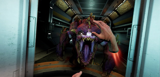 Wycieczka po parku zaczęła się od atrakcji VR, a dokładnie trybie VR dla Doom (PS4) oraz – prawdopodobnie – pełnego wsparcia VR dla Fallout 4 (PS4). Przynajmniej tak zrozumiałem wydarzenia na streamie. W DOOM VFR zaprezentowano ciekawy sposób poruszania się po lokacji poprzez teleportowanie się. Wskazujemy miejsce do skoku i wykonujemy teleport w te miejsce. Bardzo sprytne w kontekście okiełznania rozgrywki VR. Następnie nadszedł czas na Elder Scrolls. Na pierwszy ogień poszło rozszerzenie do The Elders Scrolls Online (PS4), czyli Morrowind – fani powinni być zachwyceni. Drugim rzutem była karcianka w świecie ES, o podtytule Legends, gdzie zapowiedziano zawartość świata Skyrim, który zamykał cześć fantasy konferencji przypomnieniem nadchodzącego The Elder Scrolls V: Skyrim Special Edition (PS4) na Nintendo Switch.