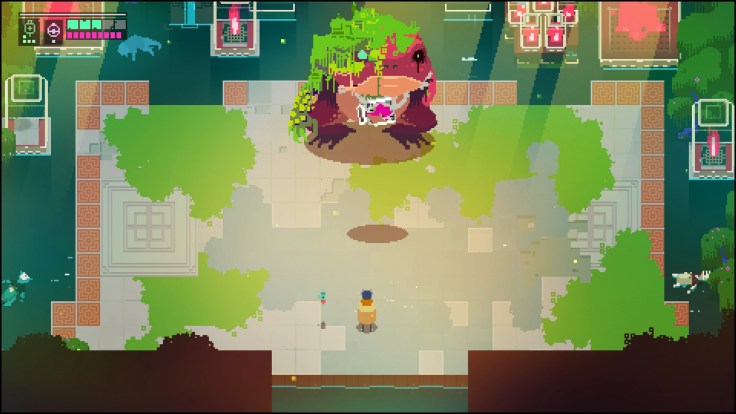 Przy okazji muszę nadmienić, że same sekrety to implementacja znajdziek, o której pisałem w blogu jakiś czas temu. Nie będę zdradzał Wam, jakie wskazówki umieszczono w grze, aby nakierować graczy do nich, jednak uwierzcie mi: lokacja każdego sekretu Hyper Light Drifter jest odpowiednio oznaczona. Prawdopodobnie jak ja, zrozumiecie to dopiero po jakimś czasie i tutaj się pożalę, albowiem brakuje mi w grze możliwości oznaczenia miejsc znalezionych znajdziek. Zaoszczędziłoby mi to trochę backtrackingu. Na szczęście zaimplementowano fast-travel, a gameplay jest naprawdę miodny. Akcja gry rozgrywa się w otwartym świecie, podzielonym na wspomniane cztery obszary.