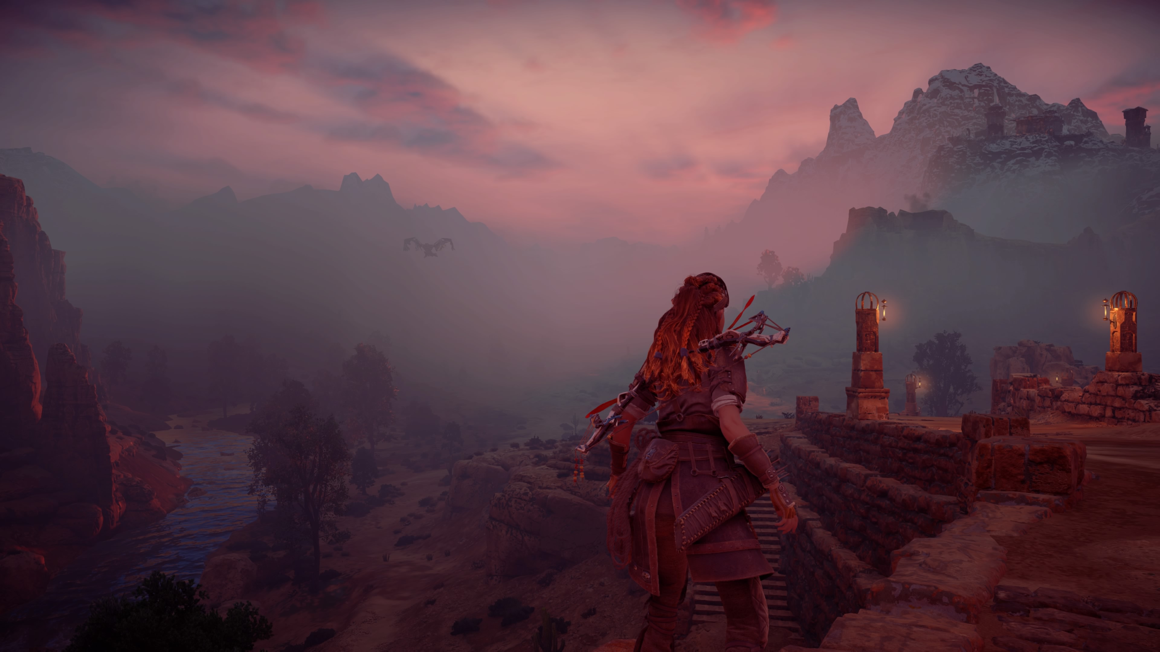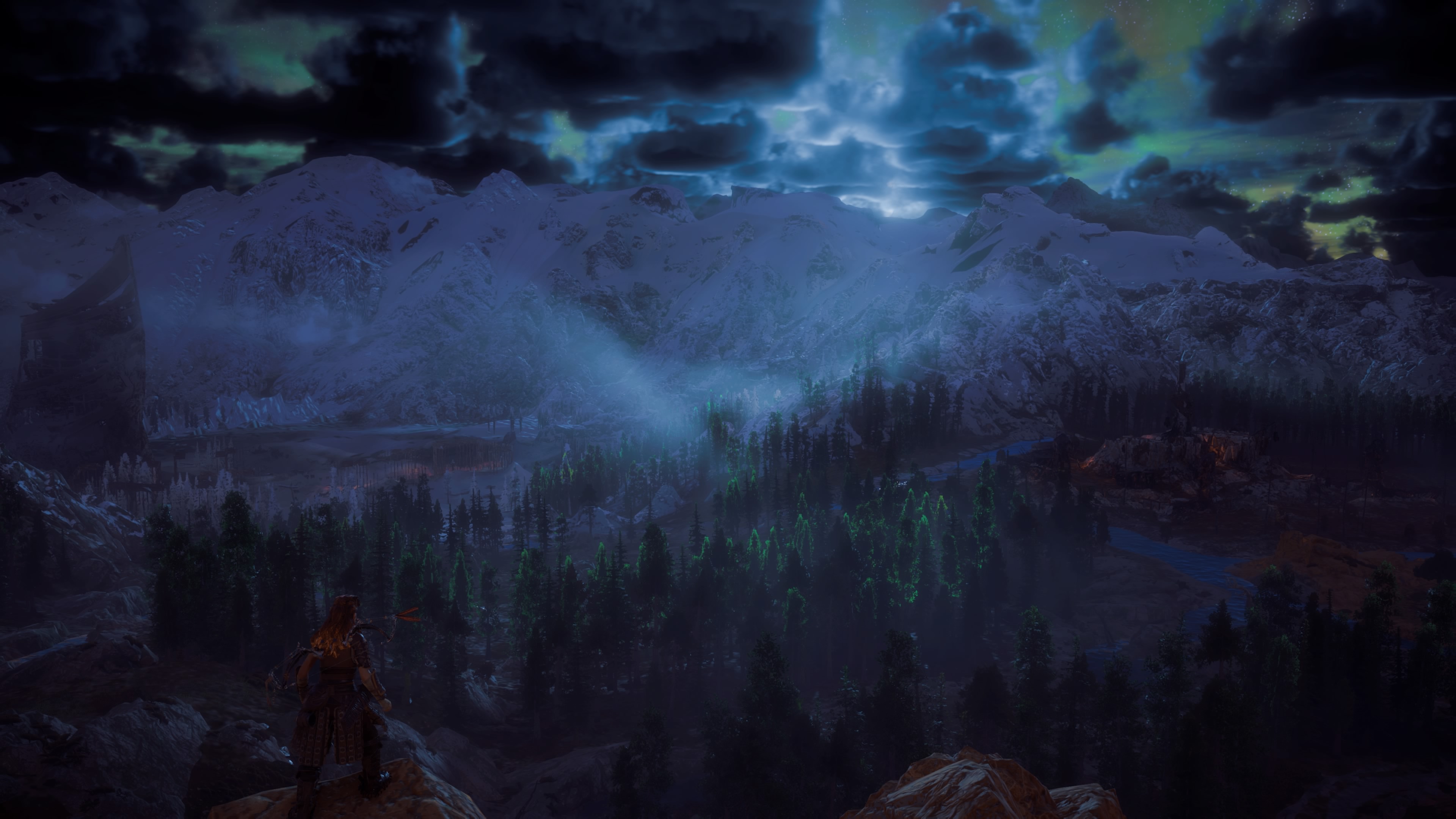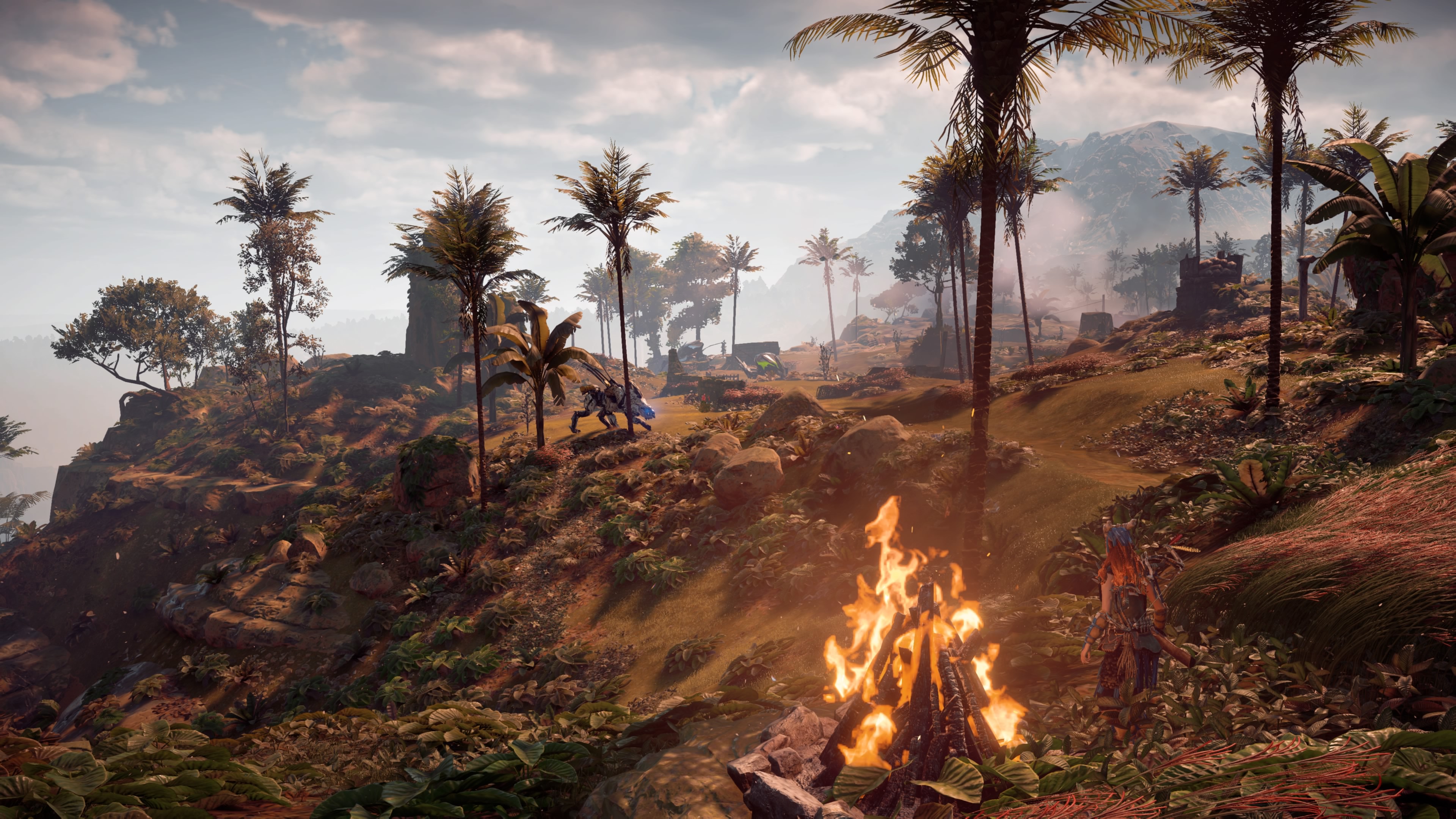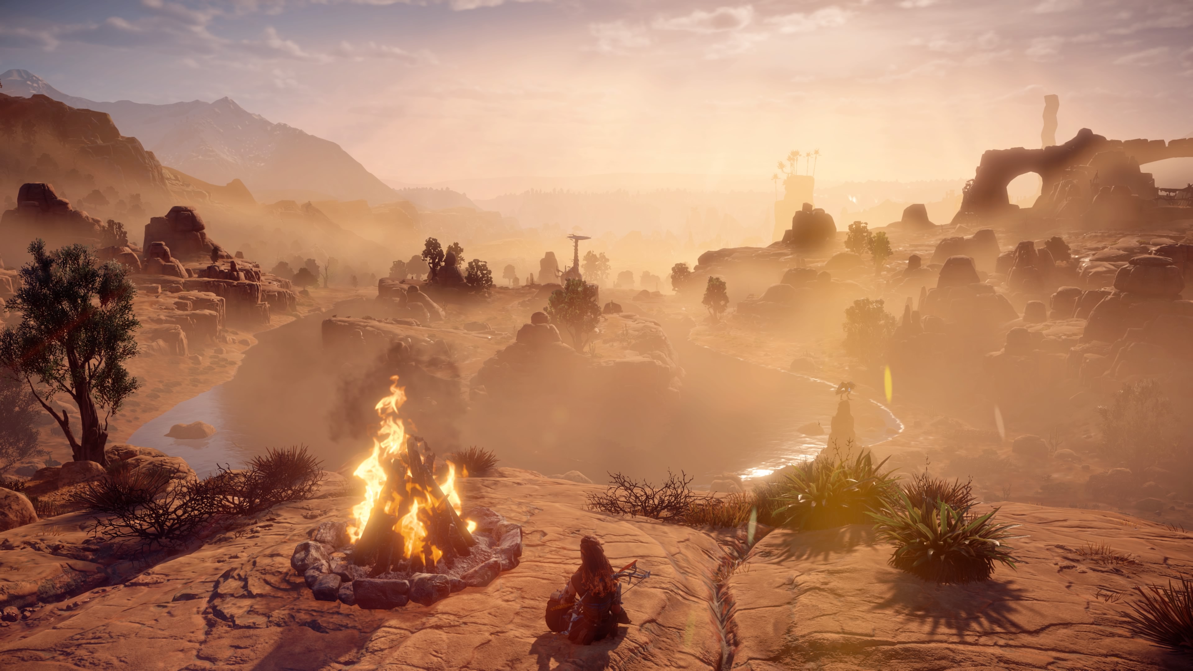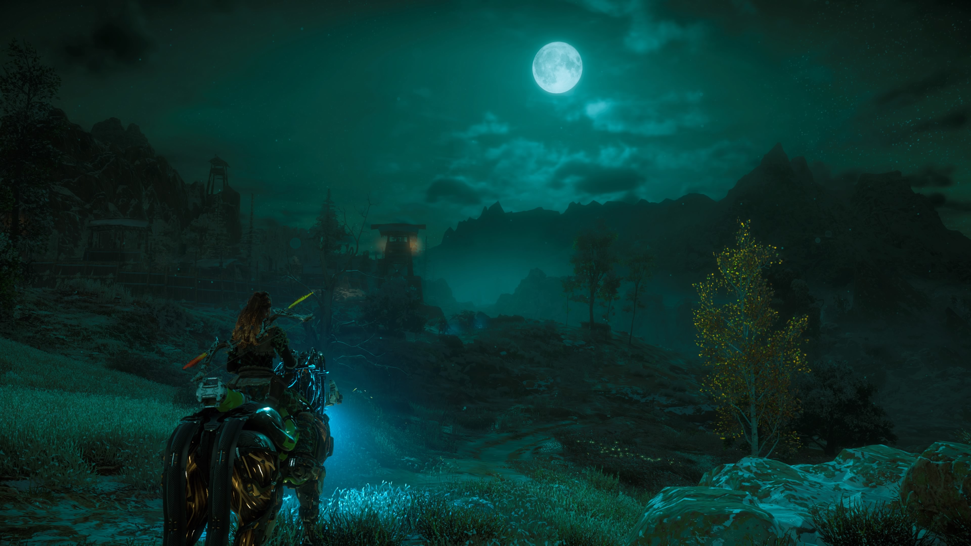 Podobnie zresztą do jakości oprawy wizualnej. Spokojnie znajdą się (ja nawet poza portalem nie muszę szukać) osoby, którym nie będzie się podobać to, czy tamto w Horizon Zero Dawn . Niemniej jednak nie wyobrażam sobie, aby znalazła się osoba narzekająca na walory wizualne produkcji. Na usta ciśnie się natychmiastowo: „MATKO BOSKO CZĘSTOCHOWSKO! JAK TO WYGLĄDA!”. Niech potwierdzeniem takiego stanu będzie dla Was fakt, że prawdopodobnie napisy końcowe zobaczyłem po jakichś dziesięciu godzinach więcej, ze względu na wspomniany tryb fotograficzny, a poszukiwania pięciu, sześciu zrzutów do recenzji zakończyło się kopiowaniem z konsoli 89 plików. Wiedźmin 3 był naprawdę ładnym tytułem, co zresztą doceniłem w mojej recenzji. CD Project RED oczarował mnie dbałością o szczegóły oraz pięknym otwartym światem. Jednak poziom, na jaki wyniosło osiągnięcia wizualne Horizon to dla mnie kosmos. To tytuł, który najbardziej pcha mnie ku zakupowi telewizora z HDR. Poczynając od warunków atmosferycznych, bajeczne krajobrazy, które niezależnie od pory dnia zachwycają, a kiedy na niebie pojawi się księżyc, można się zatracić w zjawiskowości świata i zmarnować wieczór w Photo Mode. Za widoczkami dumnie kroczy wykonanie roślinności oraz wszelkiej maści, mniej lub bardziej mechanicznych, mieszkańców obserwowanego świata. Poczynając na zmechanizowanej zwierzynie, po drobne stworzenia i oczywiście ludzi. „Człowiekom” to mógłbym poświęcić zupełnie osobny akapit.