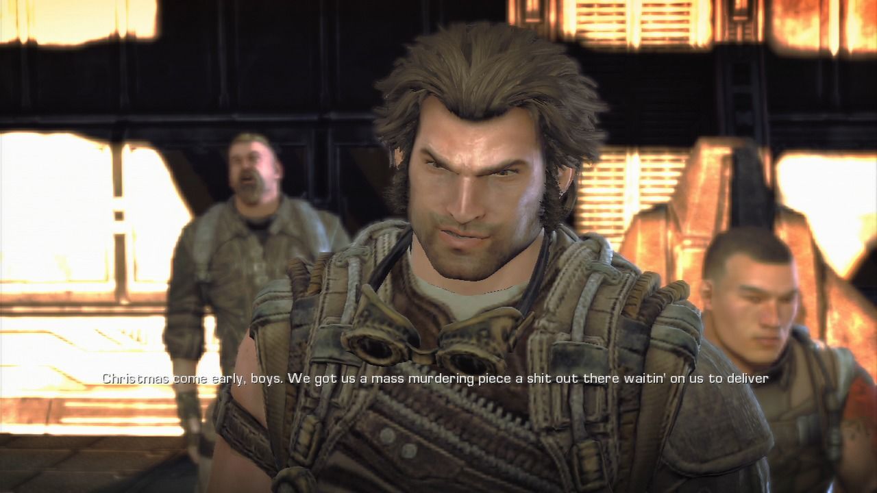 W centralnym punkcie fabuły znajduje się Greyson ‚Grey’ Hunt, były członek elitarnych sił wojskowych zwanych Dead Echo, który w momencie pojawienia się na ekranie jest galaktycznym piratem jak bozia nakazała – z niewyparzonym językiem, zapijaczony i raczej nie kierujący się zdrowym rozsądkiem w poczynaniach. Przykładem tego jest m.in. sytuacja z pierwszych chwil produkcji, gdzie po zauważeniu statku kosmicznego arcywroga, generała Serrano, bez zawahania się ryzykuje życie swojej załogi i taranuje gigantyczną machinę wojenną. Jak możecie się domyślić – wszystko się pierdoli. Oba pojazdy rozbijają się na pobliskiej planecie, zabijając przy okazji większość załogi. Przeżyć udaje się naszemu „bohaterowi” oraz jednemu członkowi załogi, Ishi’emu, który niestety przypłacił katastrofę częścią siebie, stając się w połowie cyborgiem. Dalsza część gry to próba zadośćuczynienia pirata za swoje decyzje oraz zemsta, bo okazuje się, że na domiar złego Serrano przeżył dzięki kapsule ratunkowej. Od tej pory dwójka rozbitków musi go odnaleźć i użyć jako biletu do ucieczki z planety, a potem prawdopodobnie zabić. Poważnie co?