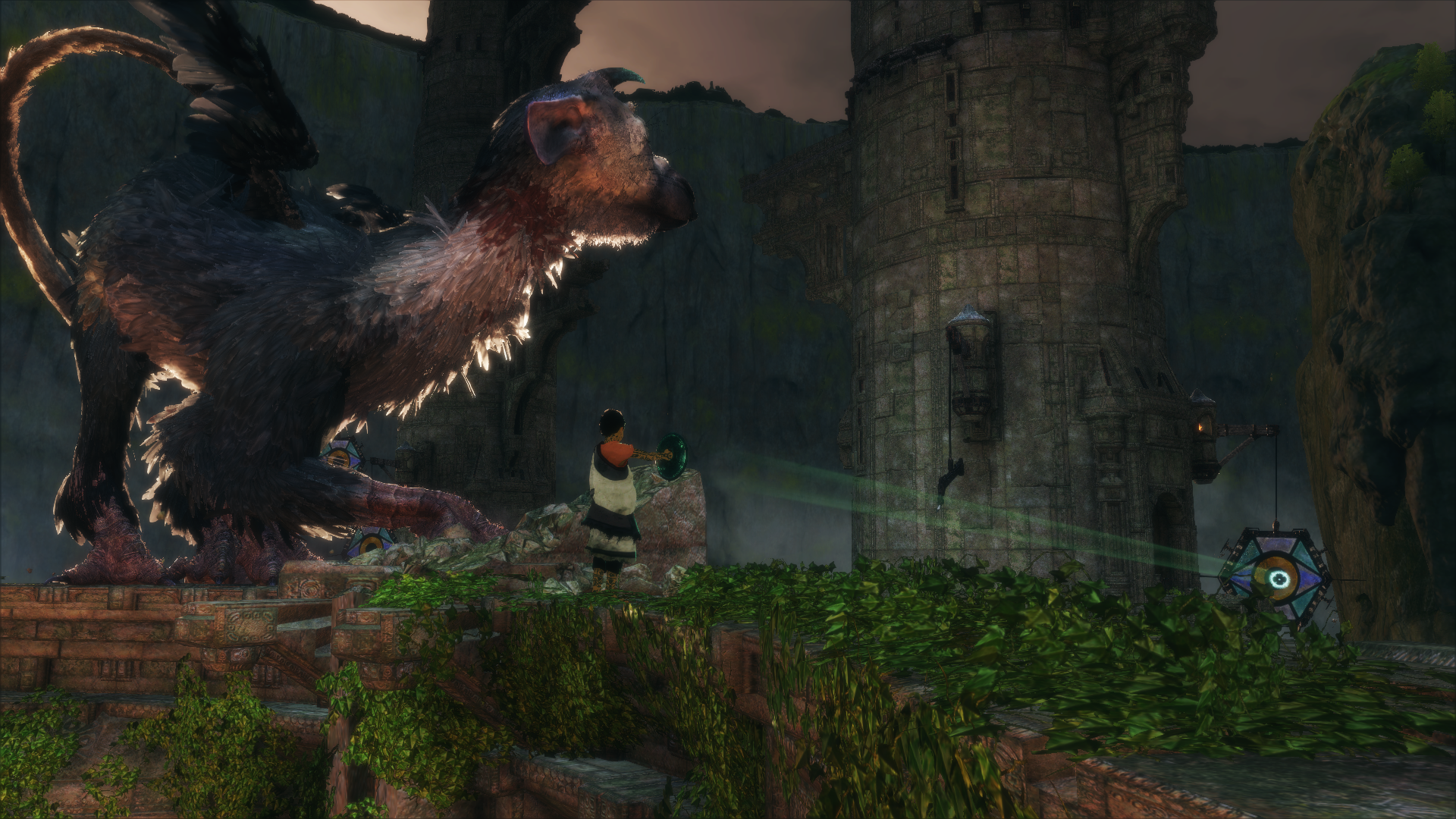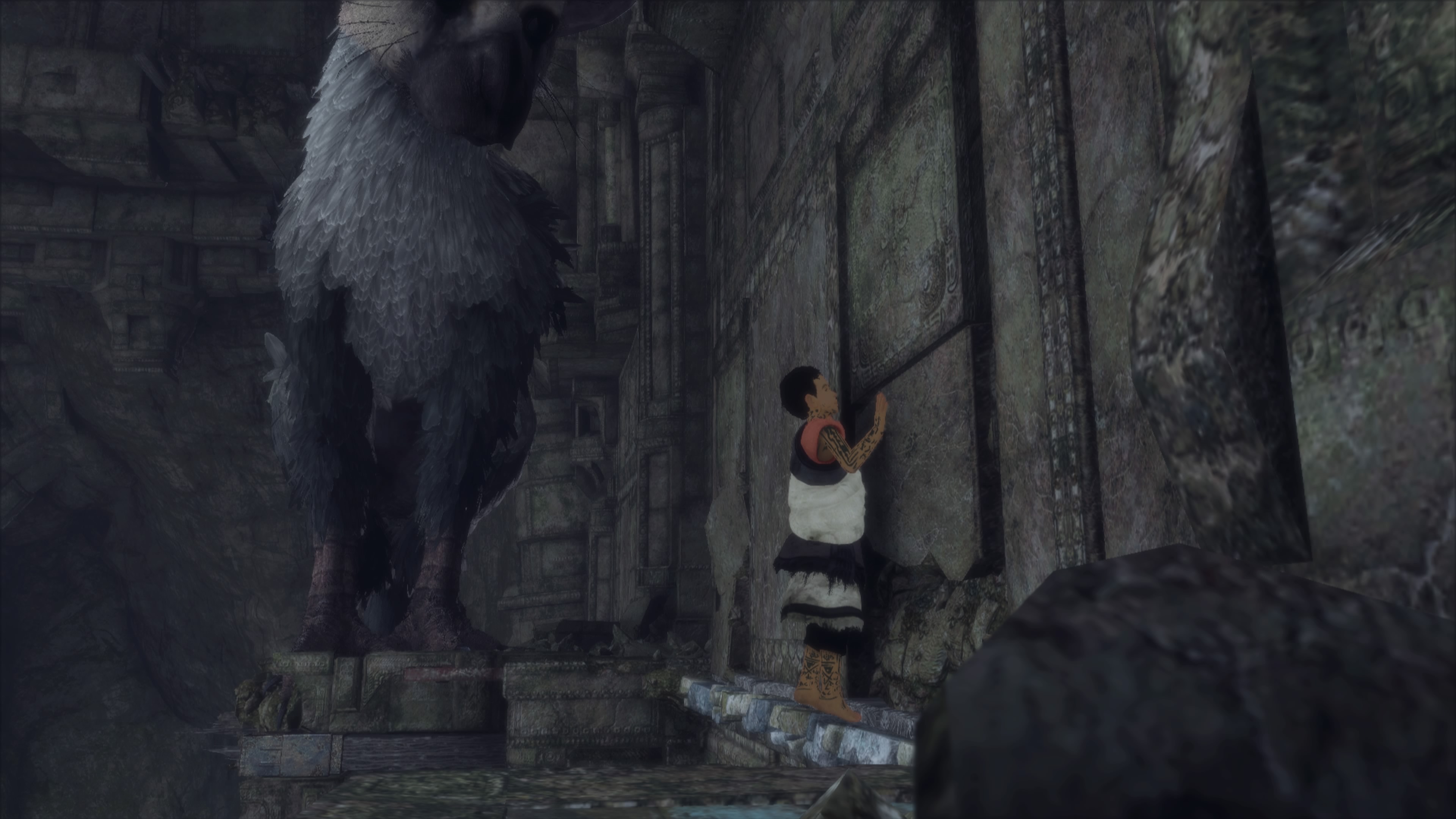 Takie bowiem imię nosi spotkany stwór, który jest najlepszym kompanem AI, jakiego spotkałem w grach video, a zarazem najbardziej denerwującego – denerwującego w iście genialny sposób. Podróżowałem z Elizabeth w Bioshock Infinite i choć poprzez swoją prezencję, wydobywała ona z wewnątrz człowieka poczucie odpowiedzialności oraz troski o jej dobro, tak więź, jaką udało się twórcom wywołać pomiędzy nami w roli chłopca i przedziwnej bestii jest czymś niespotykanym, wręcz niesamowitym. Nigdy wcześniej nie spotkałem się z tak genialnie zaprojektowanym AI, które zachowuje się autentycznie, niczym niesforne, ciekawskie, a czasem nadgorliwe zwierzątko. Gra umożliwia nam komunikacje z nim w formie, jaką posługiwalibyśmy się ze zwierzęciem w codziennym życiu: możemy machać rękoma w kierunku, w którym chcemy skierować jego uwagę oraz krzycząc coś w języku ludzi z gry. Możemy podskoczyć w miejscu i krzyknąć, starając się dać do zrozumienia, że chodzi nam o wymuszenie na Trico podskoku, albo się pochylić i liczyć na to, że zwierzę zrozumie, że chodzi nam o podróż w dół np. urwiska. Niekiedy kompan rozwiąże zagadki za nas. Wskaże pyskiem półkę do wspinaczki lub gdy tylko wejdziemy na jego grzbiet, pomknie po wystających półkach – zupełnie niespodziewanie. I to jest niesamowite. Trico zachowuje się jak prawdziwe zwierzę. Jeśli ktoś miał kota, pewnie zna powiedzenie, że: „tresura kota polega na tym, że mówimy do niego „idź” albo „nie idź”, a kot idzie, albo nie idzie” i właśnie to udało się uzyskać developerom z genDESIGN. Co najważniejsze, niepowodzenia w komunikacji ze zwierzęciem powodują naturalną i zrozumiałą frustrację. Nie wiem, jak dokonał tego zespół Ueda , ale faktycznie im się udało zbudować namacalną więź pomiędzy graczem, a wirtualną kreaturą.