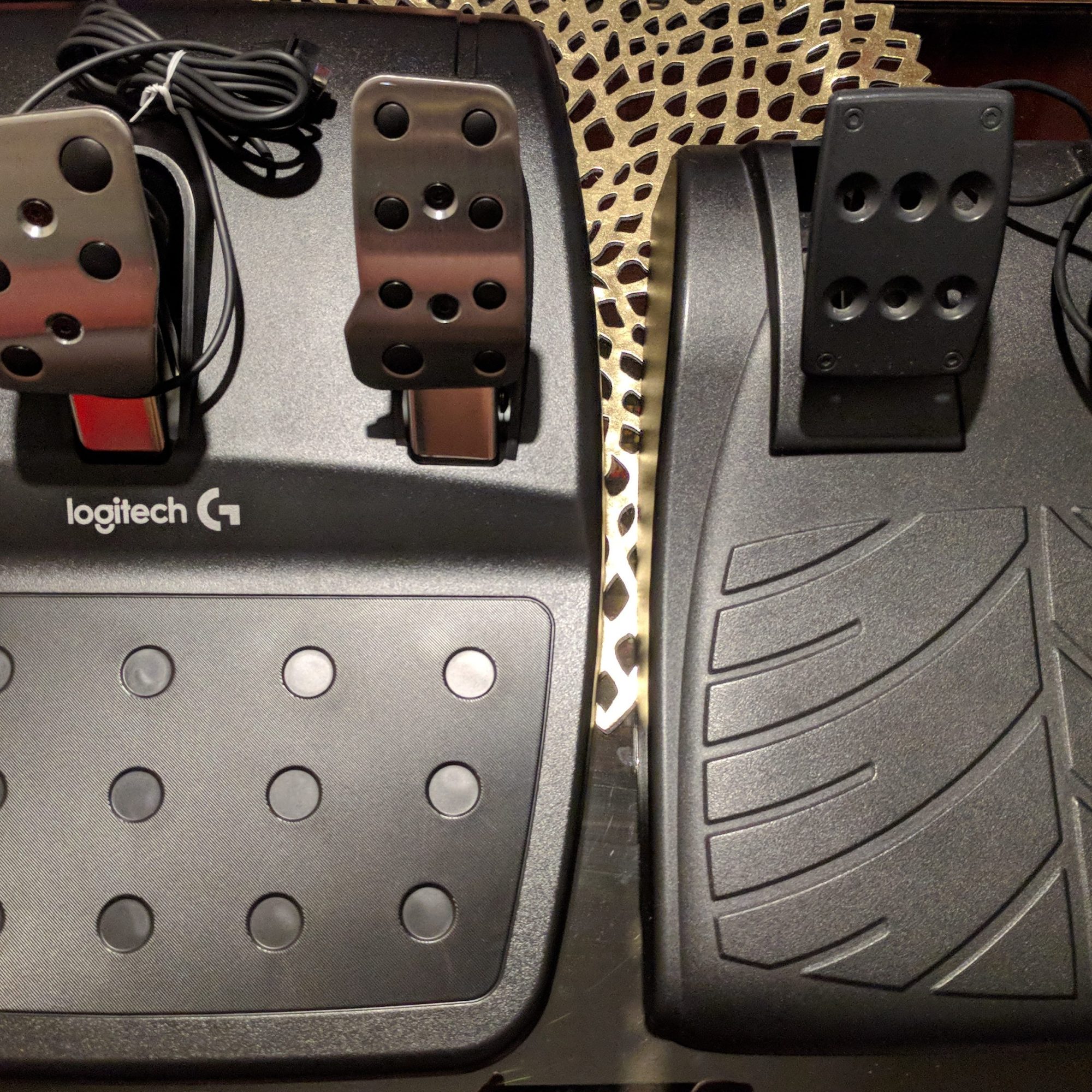 W pierwszej kolejności G29 prezentuje się bardzo, ale to bardzo dobrze. Momentalnie rzuca się w oczy skórzane (prawdziwe) obszycie oraz profesjonalnie prezentujące się, aluminiowe manetki zmiany biegów. Kładąc obok Driving Force GT zauważyłem, że pudło nowej kierownicy jest trochę mniejsze aniżeli poprzedniczki. Jest również zgrabniejsze, śruby mocujące kierownice do blatów są „chowalne” (prawie), a samo pudło, patrząc od frontu, przypomina maskę samochodu sportowego. Od spodu zadbano o okablowanie poprzez miejsce na ich zawinięcie, w razie potrzeby. Skoro już przy okablowaniu jesteśmy, to nadmienię, że przewód USB do podłączenia konsoli jest trochę krótki i niestety byłem zmuszony do korzystania z przedłużacza, aby grać, siedząc 1,5m od konsoli – lekki niesmak. Kolejną rzeczą, której nie da się pominąć w porównaniu z Driving Force GT, są pedały. W odróżnieniu do casualowego DFGT, tutaj mamy identyczny schemat, jak w G27: sprzęgło, gaz i hamulec. Tym samym pedały zajmują znacznie więcej miejsca i – serce mi się kraja na samą myśl – mieszczą się w moim stojaku, ale nie sposób go już złożyć do „przyjaznych” rozmiarów. Szkoda. Pozostaje wyciąganie pedałów ze stojaka na czas przechowywania lub trzymanie go „na płasko” (ja tak robię). Kolejny niesmaczek. Z drugiej jednak strony pedały teraz prezentują się okazale i profesjonalnie, więc coś za coś. Zmiana gabarytów pociągnęła za sobą modyfikacje optymalnego stanu stojaka i nowych kresek markerem na standzie, ale to wszystko generalnie rzeczy do przełknięcia. Żadne blokery, póki co.
