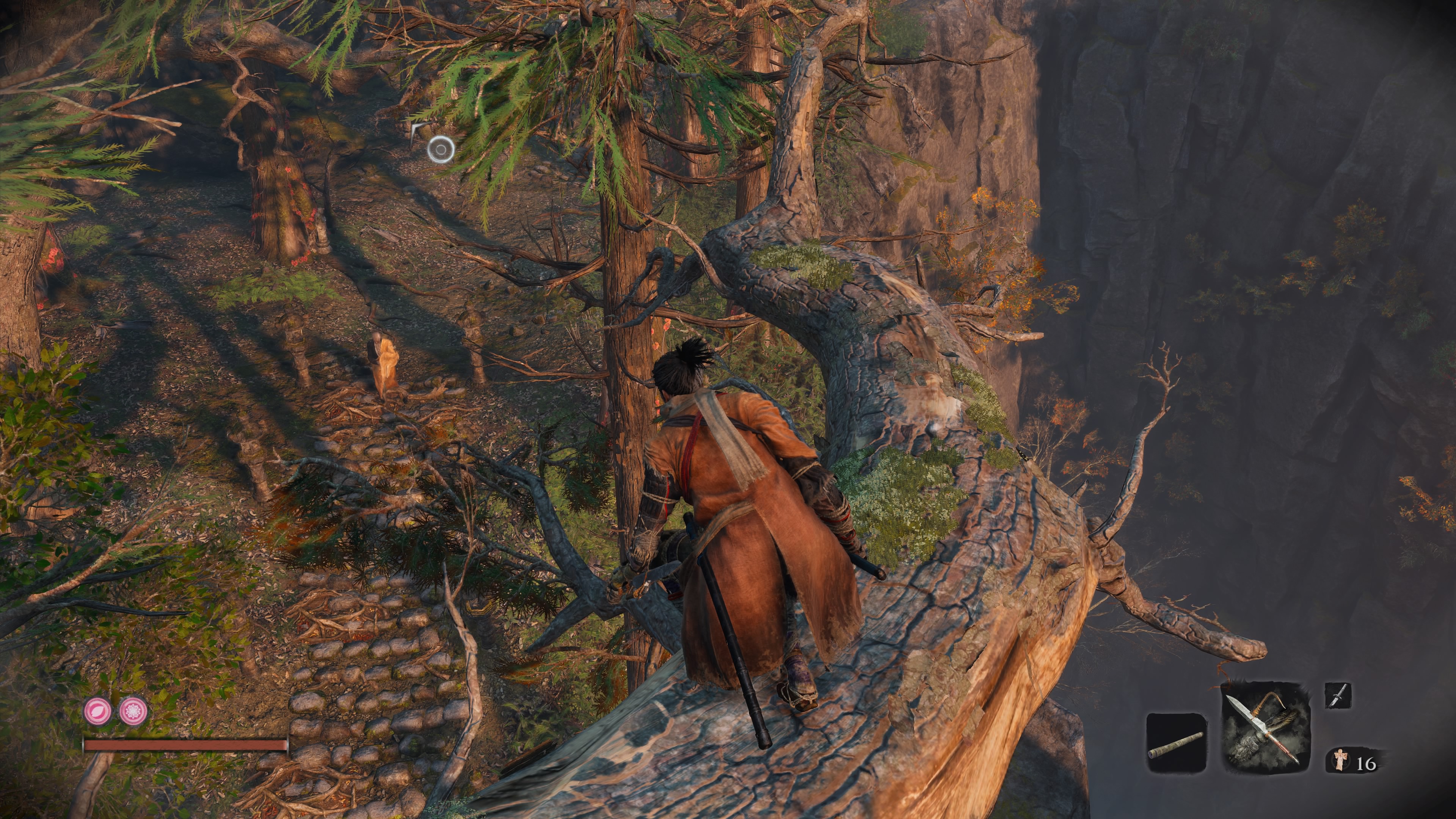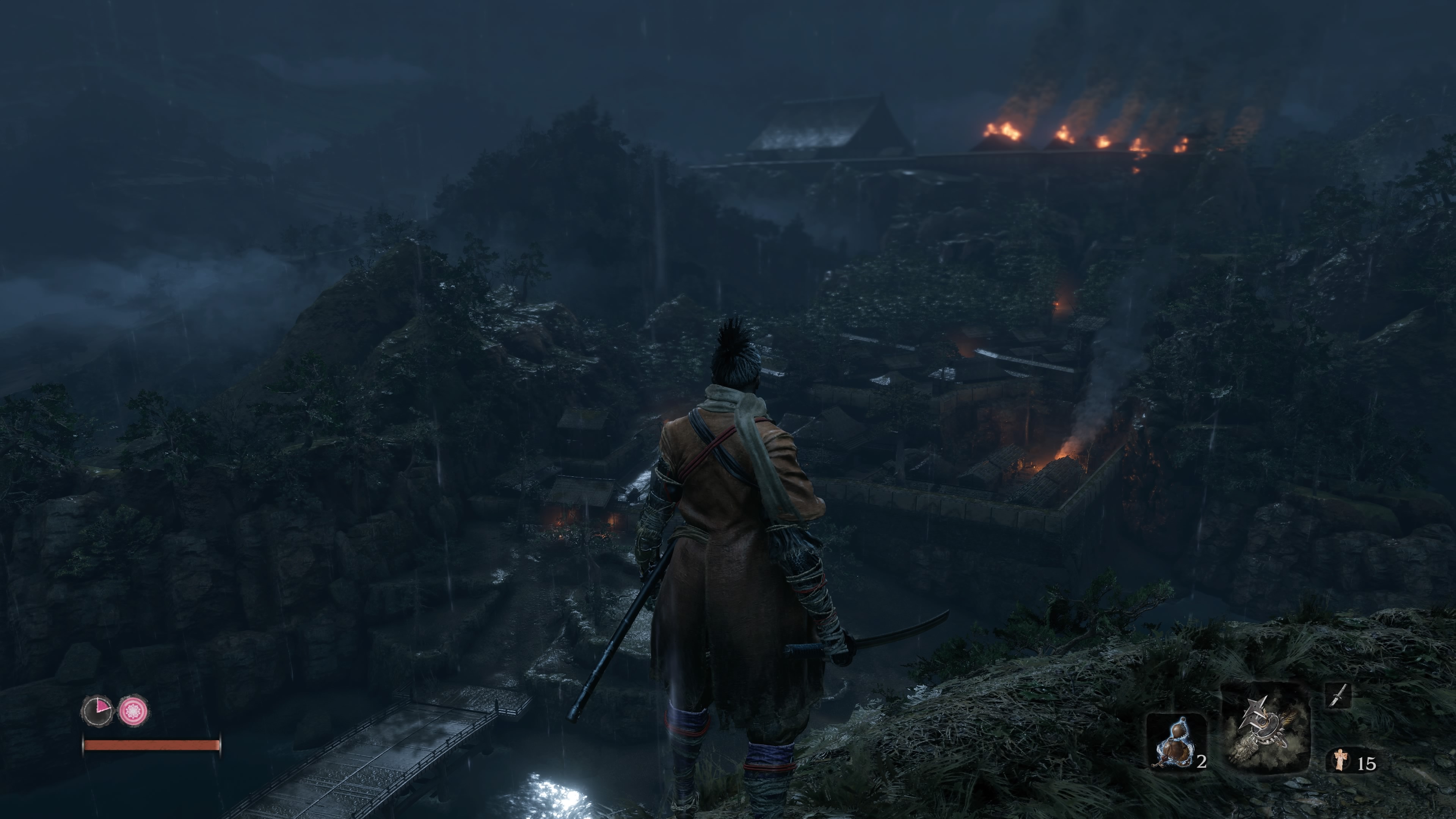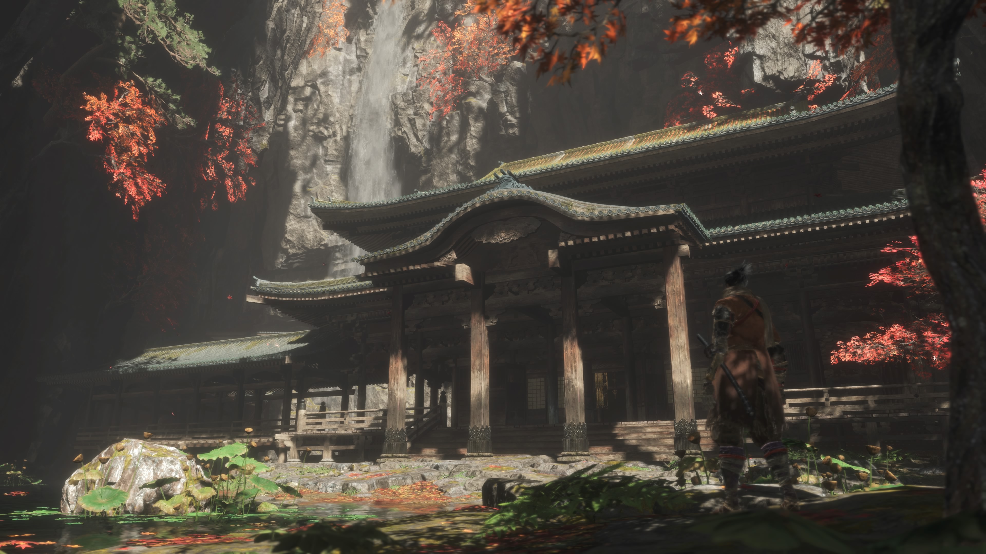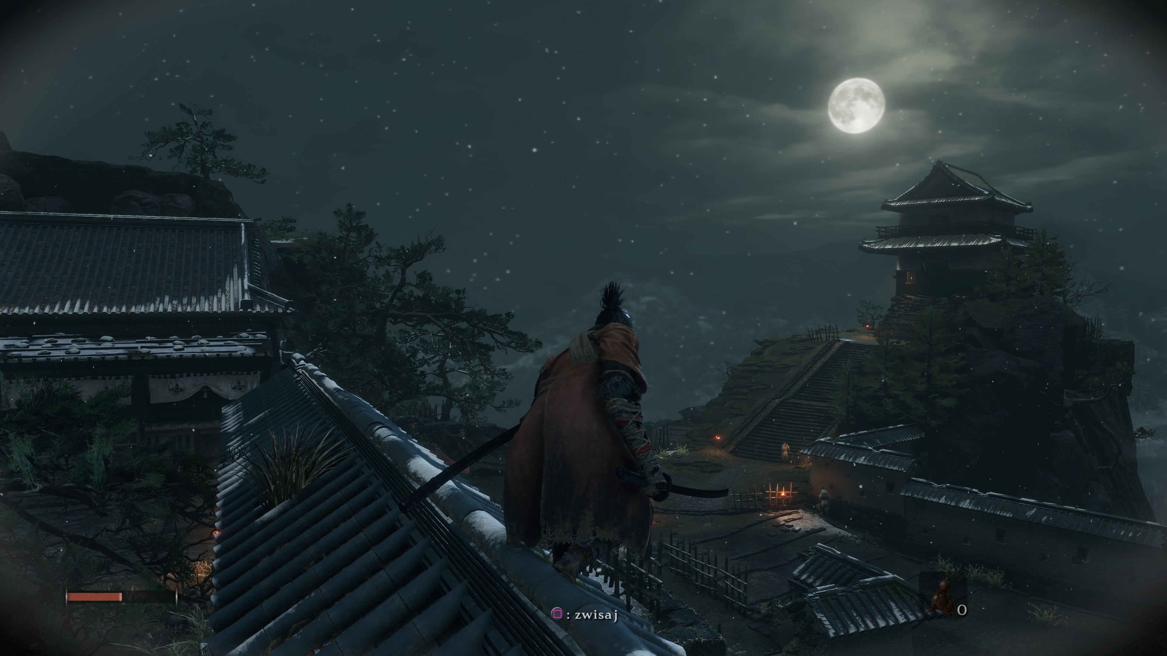 Dosyć zbliżona sytuacja również dotyczy rozgrywki. Zmieniło się wiele, nawet bardzo wiele, a jednak to co najważniejsze pozostało nietknięte. Najwyraźniej widoczną zmianą jest zaszczepienie w Sekiro ducha Tenchu, poprzez rozbudowane mechaniki stealth oraz uniesienie rozgrywki ponad ziemię. Wertykalność naprawdę robi astronomiczną różnicę. Dzięki możliwościom linki Wilk może chwytać się krawędzi budynków, skał czy drzew (w wyznaczonych miejscach), co nie tylko służy do błyskawicznego poruszania się po lokacjach, ale i otwiera gameplay na niespotykane – w ostatnich produkcjach From Software – doznania. Łącząc ten element z patentami rodem z najlepszych skradanek, otrzymujemy (zaraz po MGSV) jedną z najlepszych gier skoncentrowanych na cichym zabijaniu, w jaką dane mi było zagrać. Wprawdzie z początku nasz repertuar nie dorównuje możliwością Rikimaru i Ayame oraz widać, że studio nie chciało tworzyć kolejnego Tenchu, to po odblokowaniu kilku ciekawych zdolności możemy spokojnie bawić się, jak za dawnych odsłon wspomnianej serii z PS1/PS2. Bawiłem się kapitalnie w Sekiro, przypominając sobie dawne czasy z odsłonami Tenchu. Mimo, że gra nie jest podzielona na misje, to sam sobie takowe tworzyłem: spawn w danym miejscu i dotarcie do kolejnego punktu bez zauważenia, czyszcząc całą mapę z wrogów.