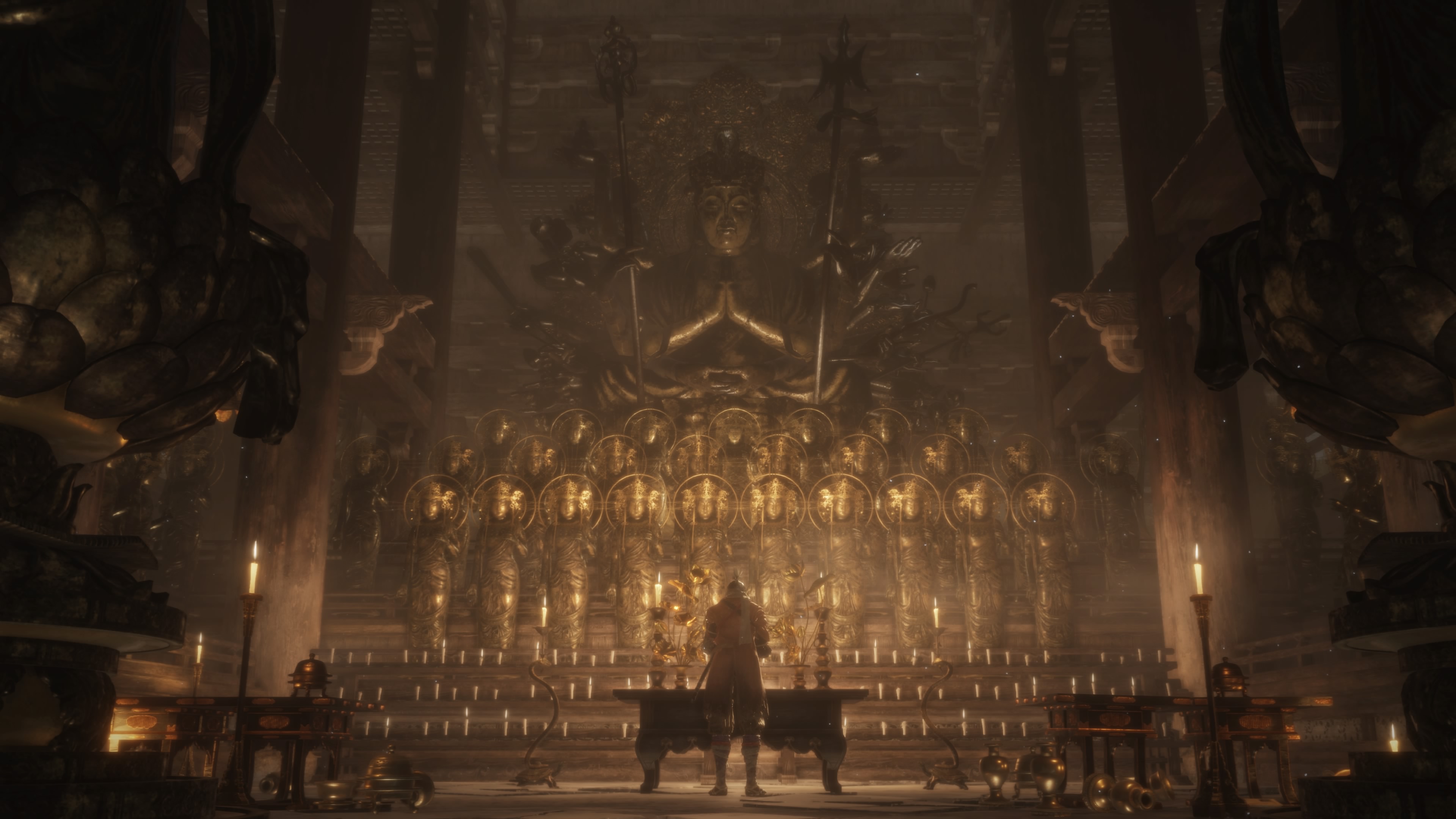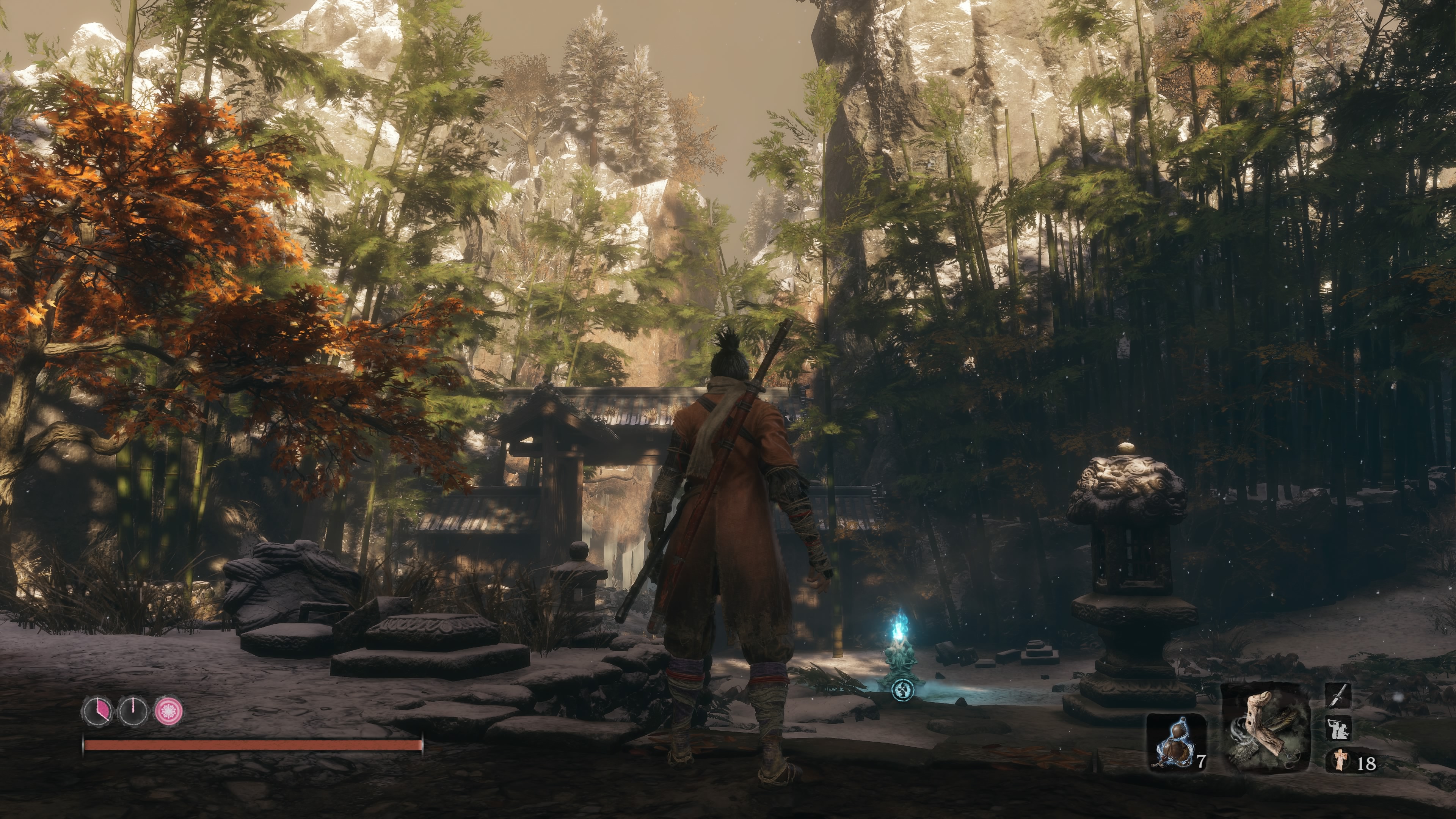 Natomiast zupełnie „niesoulsowo” prezentuje się model rozwoju postaci. To, że nie ma kreatora postaci jest chyba jasne dla każdego, zważywszy na postać Wilka? Jego brak ciągnie za sobą odejście od skomplikowanego budowania postaci ze skoroszytem Excela przed sobą. Cyferki, statystyki i premie liczbowe do cech zastąpiono prostymi drzewkami umiejętności. Kolejne gałęzie odblokowujemy wykupując je za pomocą nagromadzonych punktów umiejętności, o których nieco wspominałem wyżej. Odblokowują nam one zdolności pasywne i specjalne ruchy, które swoją drogą – warto zaznaczyć – w prosty i zrozumiały sposób opisano, więc nie ma mowy o główkowaniu nad wyborem kolejnego odblokowania. Gdy któryś z przeciwników sprawia nam wyjątkowe problemy, wato zajrzeć do drzewek, a może znajdzie się tam coś pomocnego albo…brzmiącego totalnie odjechanie. Kończąc grę nie zdołałem odblokować wszystkich skilli, więc odblokowany tryb New Game + na pewno się przyda. Drzewek jest wiele, a ich genezę bardzo spójnie wpleciono w fabułę gry. Zgodnie z duchem soulsów, grę rozpoczynamy w pozornie beznadziejnej sytuacji, a przeciwko nam cały świat. Wraz z postępem w grze Wilk uczy się umiejętności nawiązujących do przeciwników, których napotyka na swojej drodze, co właśnie bardzo ładnie spina się fabularnie z koniecznością przeskoczenia tytułu ninja przez głównego bohatera, jeśli chce mieć choć cień szans na uratowanie swojego pana. Nawet żywotność i siłę ataku podnosimy w sposób, która wyda się logiczny każdemu miłośnikowi tematów ninja – pierwszą dzięki zebranym koralikom modlitewnym, a swoją ofensywę Wilk podnosi dzięki wspomnieniom, po pokonaniu naprawdę silnego przeciwnika.