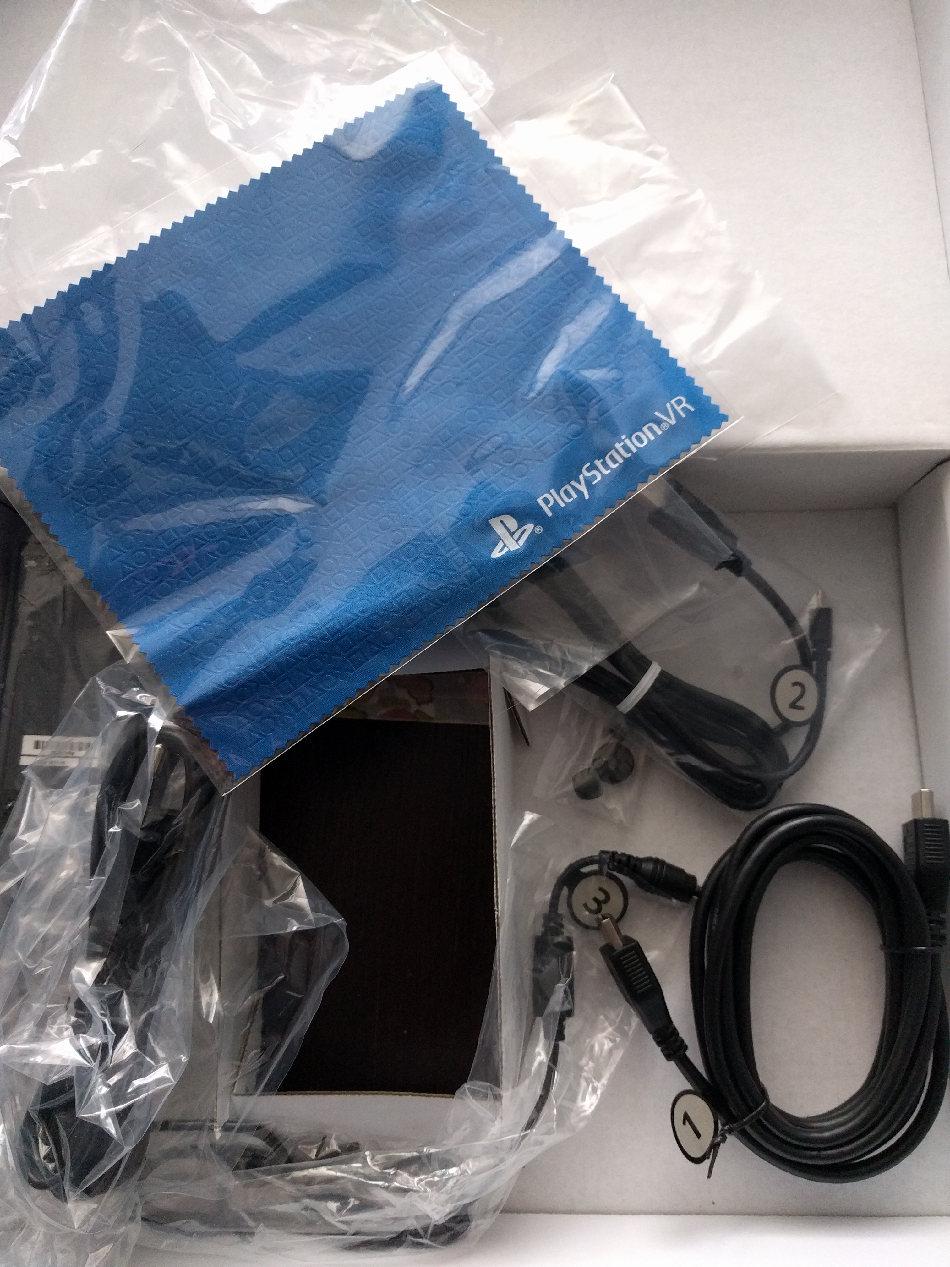Zakupiłem sprzęt w wersji „gołej”, a więc sam hełm z okablowaniem. Kamerę otrzymałem wraz z PS4, a kontrolery PS Move mam z PS3. Zależało mi natomiast, aby była to wersja druga PlayStation VR, ponieważ słyszałem i czytałem wiele dobrego o usprawnieniach, jakie Sony wprowadziło do nowego modelu, m.in. przy okablowaniu. Pudełko z hełmem jest znacznie większe niż się tego początkowo spodziewałem i cięższe, aczkolwiek po wyciągnięciu gogli zauważyłem, że większość ciężaru to skrzyneczka pomagająca konsoli w okiełznaniu wirtualnej rzeczywistości oraz okablowanie. W zestawie poza w/w nie ma zbyt wiele: chusteczka do wycierania soczewek, słuchawki i papierologia. Same gogle natomiast są niezwykle lekkie i sprawiają wrażenie zabawki, szczególnie część z soczewkami, bo obręcz na głowę w rękach prezentuje się solidnie. Jeśli dobrze zrozumiałem informacje o zakupionej wersji jest również bogatsza w otwory, w których możemy schować słuchawki, aby nie przeszkadzały oraz sterowanie głośnością/wyciszeniem mikrofonu, na spodzie wizjera.