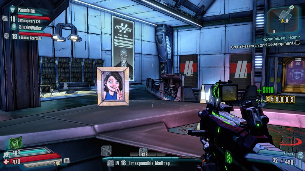 Wybaczcie, ale muszę się z tym rozliczyć w pierwszej kolejności: tytuł działa płynnie. Nie pamiętam, ile razy o tym wspominałem, grając w ten tytuł, ale pewnie często, ku niepodważalnemu zadowoleniu grających ze mną towarzyszy broni. Na pewno zachwycałem się działaniem tytułu przy okazji każdej większej rozpierduchy czy strzelania w cele latające – co może wydawać się wam śmieszne, jednak doskonale pamiętając, jak kończyło się to na PS3, jest z czego wiwatować. Zero kwiknięć. Zero dropów. Tytuł działa, jak należy, co nie jest przecież normą przy tytułach „portowanych” z PS3 (np. Bulletstorm, Dishonored). Byłem jednocześnie zachwycony i wzruszony, że mogę cieszyć się z kolejnych Borderlandsów w takiej jakości. Poza walorami optymalizacji gra zyskała na zwiększeniu rozdzielczości tekstur i wygląda bardzo ładnie. Przy okazji każdej produkcji z grafiką w stylu cel-shadingu (tak, wiem, że to nie cel-shading) mówimy, że taki rodzaj oprawy się „dostojnie starzeje”, więc to, plus podbicie rozdzielczości przez twórców, daje świetny rezultat. Szkoda tylko, że potencjału nie wykorzystano w bardziej „spektakularny” sposób. Z całym Borderlands: The Pre-Sequel jest albowiem jeden, zasadniczy problem – jest to produkcja pomiędzy dodatkiem a sequelem (hmm #1). W niemalże każdym aspekcie.
