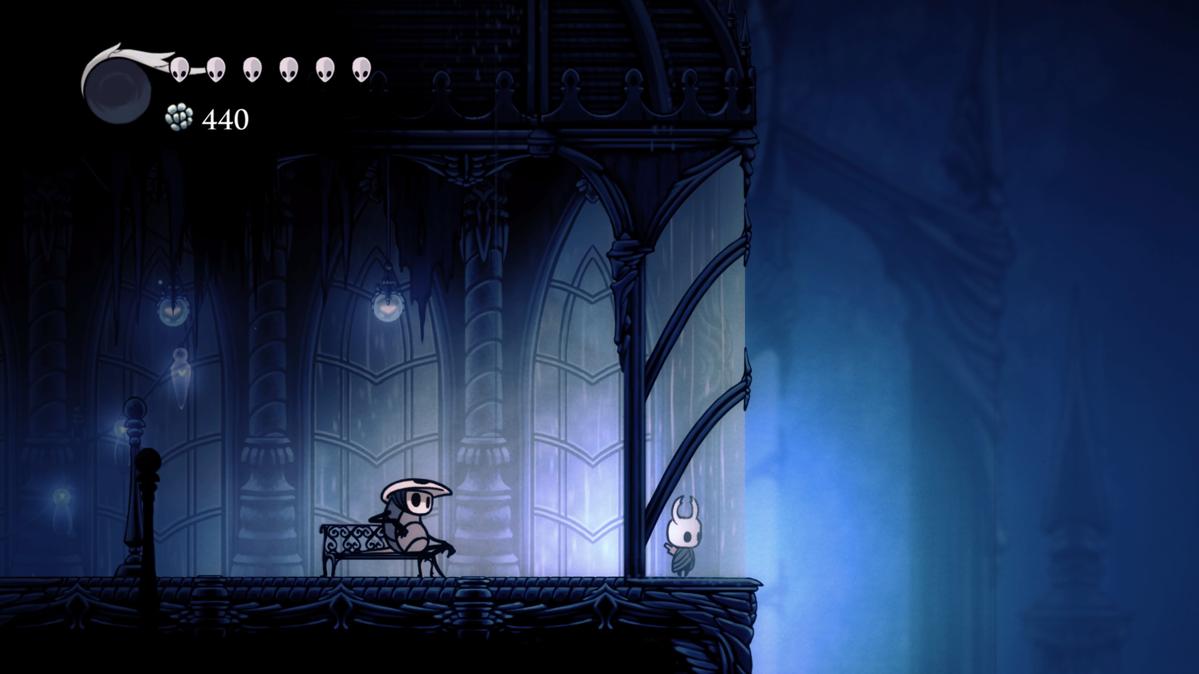 Sama eksploracja jest jednocześnie zachwycająca i przerażająca – z mapą umiarkowanie, a bez niej to prawdziwe wyzwanie. Pokonujemy korytarz po korytarzu, bacznie obserwując, czy nie zaatakuje nas znienacka przeciwnik i zmusi do pojawienia się przy ostatnim ognisku…znaczy, ławeczce. Tak się składa, że rolę soulsowych ognisk przejęły w produkcji Team Cherry ławki, na których nasz bohater odpoczywa – odnawiając życie i nanosząc odkryte miejsca na mapę. Z mapą przyjdzie nam pracować często i wnikliwie. Niezliczoną ilość razy wydawało mi się, że już kompletnie nie wiem, gdzie się udać w następnej kolejności, aby po chwili badania mapy zauważyć, że jedna ze ścianek pokazanego obszaru ma „dziurę”, więc pewnie tam nie byłem. Fakt, faktem jest przez to dużo backtrackingu, jednak w metroidvaniach to nic nowego i raczej – moim zdaniem – spodziewany element gatunku. W częstym pokonywaniu świata, od brzegu do brzegu mapy, pomaga system szybkiej podróży. Stacji nie jest zbyt wiele i są dosyć daleko od siebie rozłożone, aczkolwiek… mądrze. Tak, aby z jednej strony ułatwić nam zabawę, a jednak nie pozwolić na zbytnie eksploatowanie ich w przygodzie.