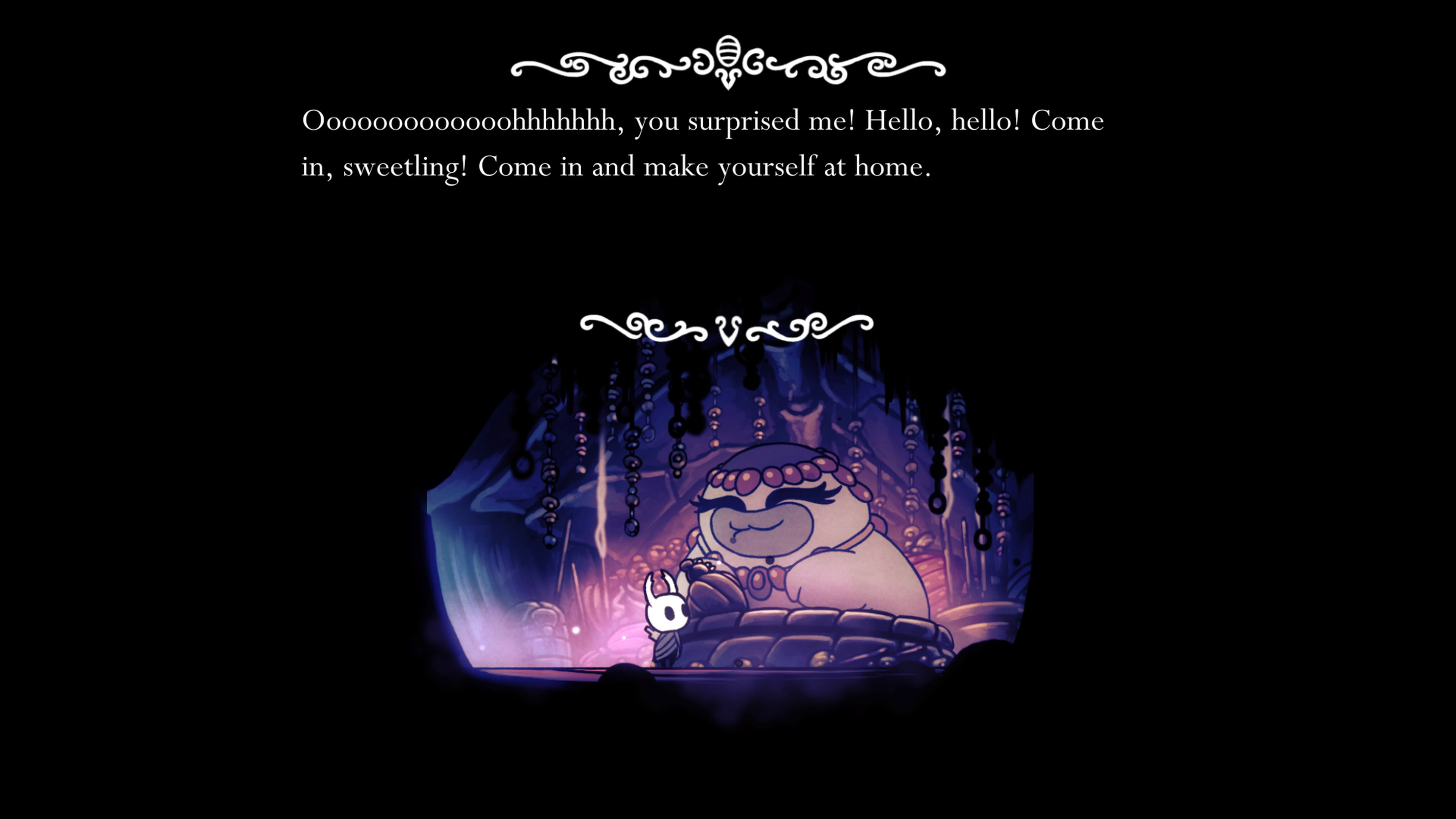 Przy tak „depresyjnym” kierunku artystycznym, nie będzie dla was zaskoczeniem, że fabularnie tytuł uderza w bardzo podobne klimaty. Zresztą w tym elemencie zaczynają się pierwsze porównania do gier From Software. Historię naszego głównego bohatera poznajemy bardzo szczątkowo, a ostateczne wyjaśnienie jego przygody praktycznie pojawia się w ostatnich chwilach wątku głównego. Przez większość gry podążamy w głąb królestwa Hollownest bez pełnej świadomości naszego celu. Docierają do nas zgliszcza historii odwiedzanych miejsc oraz losów jej mieszkańców. Do nas należy układanie wszystkiego w całość i łączenie ze sobą wątków, zapisanych w otoczeniu. Na swojej drodze spotykamy także wiele, naprawdę WIELE postaci pobocznych. Niektórzy to mieszkańcy przemierzanych ziem, inni to podróżnicy i wojownicy, jak my. Każdy ma coś do powiedzenia i rolę do odegrania w tytule. Kilkoro nawet – nie raz – w nieoczekiwanym momencie staną do walki u naszego boku. Śmierć niektórych z nich również nas nie ominie. Aby jednak nie doprowadzić graczy na skraj depresji, twórcy ubarwili naszą przygodę szczyptą elementów humorystycznych, aczkolwiek nie „głupkowatych” – za ten element należą się brawa, albowiem zrobili to w bardzo delikatny sposób. Nie wytrącając nas z ogólnego stanu i ducha poważnej produkcji, a jednak pozwalając czasem na chwilę się uśmiechnąć. Jeśli zatem lubicie tajemnice, jak i historie odkrywane szczątkowo, w mozolnym tempie, jednak warte tego wysiłku w końcowym rozrachunku, to tytuł jest dla was stworzony. Trzy zakończenia. Każde bazujące na tym, jak daleko zabrniemy w poznawaniu świata Hollow Knight. Jest w co się wgryźć. Na wiele godzin.
