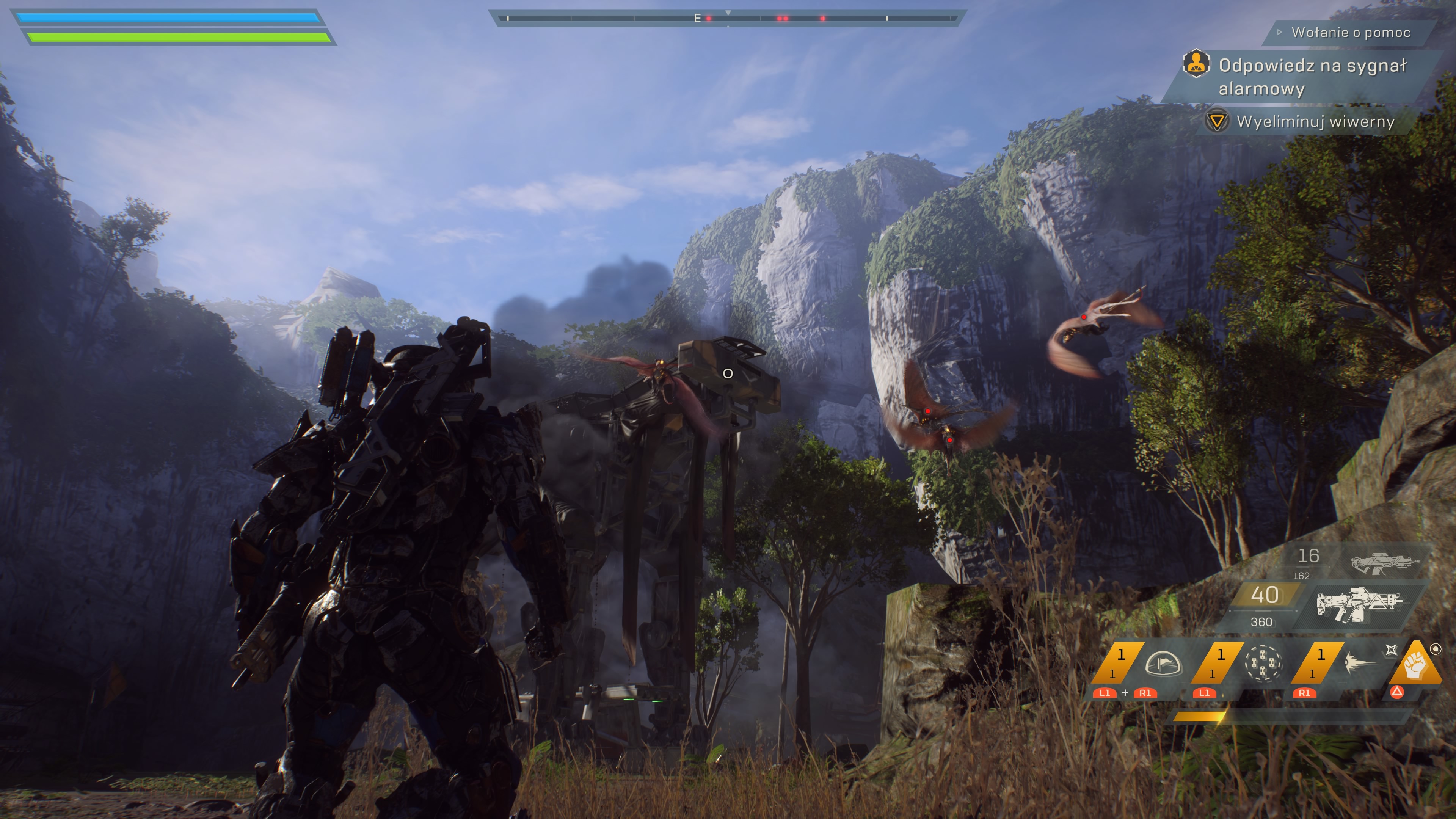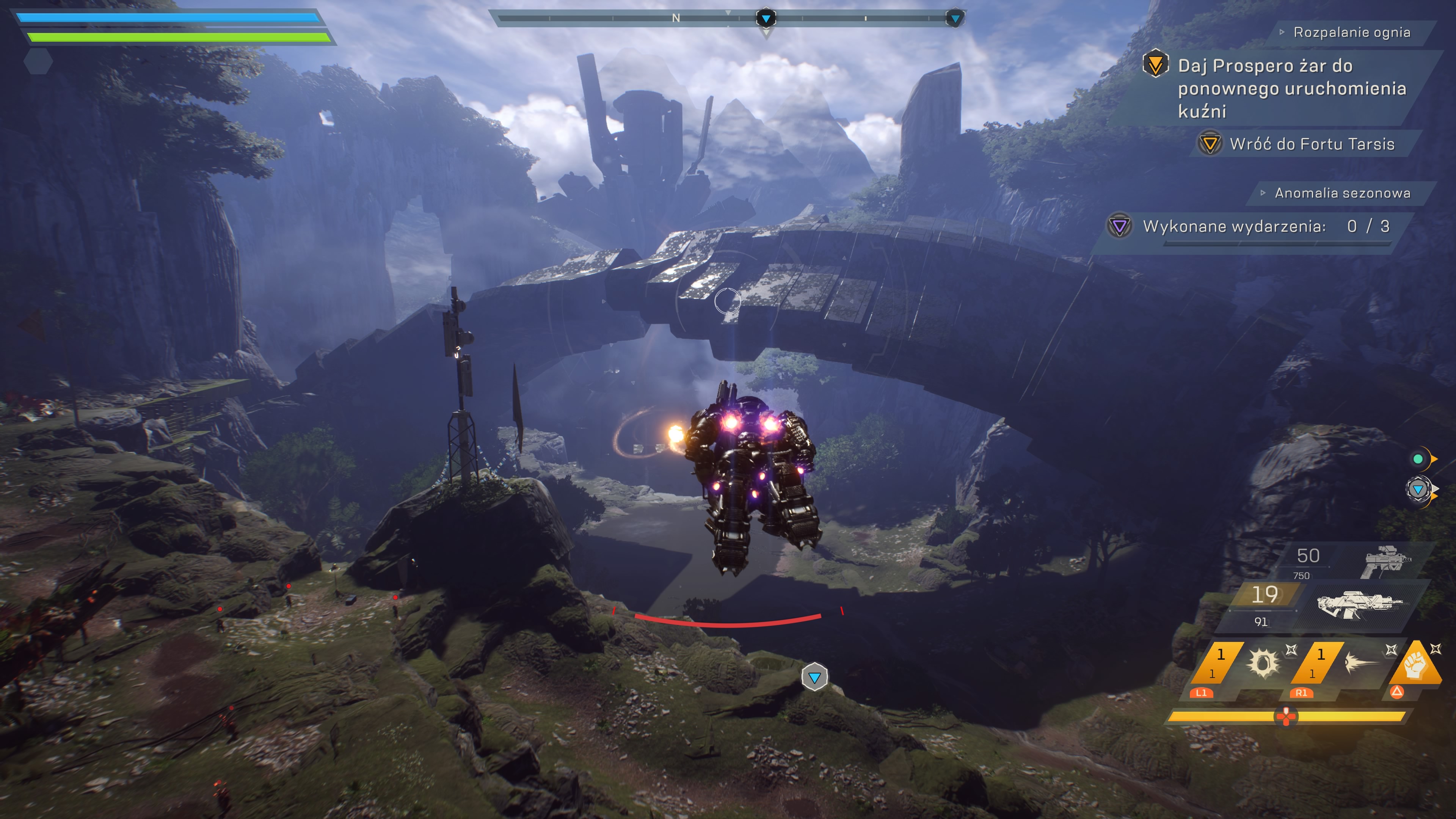 Pozostaje kwestia tzw. zdolności czy umiejętności każdego z javelinów, choć ich sytuacje nie jest przesadnie lepsza. Różnią się w zależności o klasy kombinezonu, co jest oczywiste, aczkolwiek i w ramach jednego z nich mamy możliwość wyboru kilku wariantów dla poszczególnej części ofensywnej javelina. Biorąc za przykład granat rzucany przez Łowcę, to mamy jego następujące warianty: granat odłamkowy zadający obrażenia obszarowe, granat rozczepiający się na kilka naprowadzanych ładunków oraz mrożący, zatrzymujący przeciwników na chwilę w miejscu. Mimo to nawet ten system popada w monotonię po kilku wieczorach grania. Między innymi dlatego, że jedna – jeśli nie jedyna – z ciekawszych mechanik gry, nie została należycie opisana przez twórców: chodzi o tzw. kombo. System polega na łączeniu ze sobą efektów dwóch akcji ofensywnych. Pierwsza przygotowuje mechanikę, a druga ją egzekwuje. Zarówno przygotowywacz, jak i wywoływacz oznaczono odpowiednimi ikonami. Szkoda tylko, że nie wprowadzono lepszego wyjaśnienia systemu w samej grze, bo faktycznie, obrażenia powodowane przez kombo są zdecydowanie większe, aniżeli przy zwykłym ataku. Dodatkowo bardzo fajnie się je wykonuje, grając z innymi online. I tak pewnie gdzieś znalazłaby się strona opisująca to pisemnych samouczkach wewnątrz gry, ale nie czepiałbym się, gdyby menu Anthem było bardziej czytelne, łatwe w nawigacji oraz nie bylibyśmy zasypywani setkami pseudowiadomości od mieszkańców Fortu Tarsis, które są zupełnie i całkowicie zbędne.