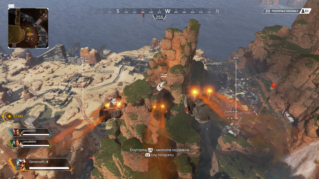 APEX Legends to FPS i przedstawiciel nurtu battle-royale, jakże modnego w ostatnich latach – zakładam zatem, że koncepcji „gatunku” nie muszę tłumaczyć. Właściwie to połączenie powinno wystarczyć jako wierne oddanie rozgrywki tytułu, ale jest kilka elementów, które wyróżniają go od jemu podobnych. Najistotniejszą z różnic jest na pewno fakt, że na mapę zostajemy zrzuceni w towarzystwie dwóch partnerów, a nie solo. Walki na arenie toczone są bowiem przez drużyny trzyosobowe, w których skład wchodzi po jednym z możliwych do wybrania…herosów. Ma to o tyle znaczenie, że po zaliczeniu zgonu w trakcie rundy, nasi kompani mogą nas przywołać z powrotem na mapę. Jednocześnie, zanim złapiemy zupełny zgon, nasi kompani mogą ponownie postawić nas na nogi, co dodatkowo nadaje tytułowi ducha współpracy. To od razu pierwszy z plusów produkcji w mojej ocenie, albowiem ściąga nieco napięcia z zespołów, które łatwo mogłoby przerodzić się w toksyczność całej społeczności oraz pozwala szybko spróbować jeszcze raz, po np. głupim błędzie z początku rundy. Ma to również wpływ na próg wejścia w tytuł dla nowych graczy, którzy mogą liczyć na pomocną dłoń oraz nieco wsparcia w swoich pierwszych meczach. Zdecydowanie bardziej, aniżeli być zdanym wyłącznie na siebie od momentu pojawienia się na mapie.