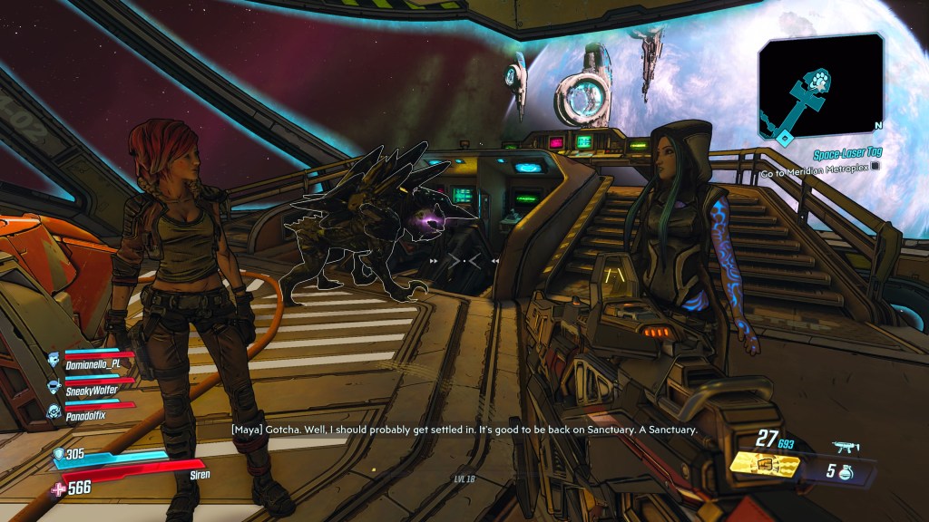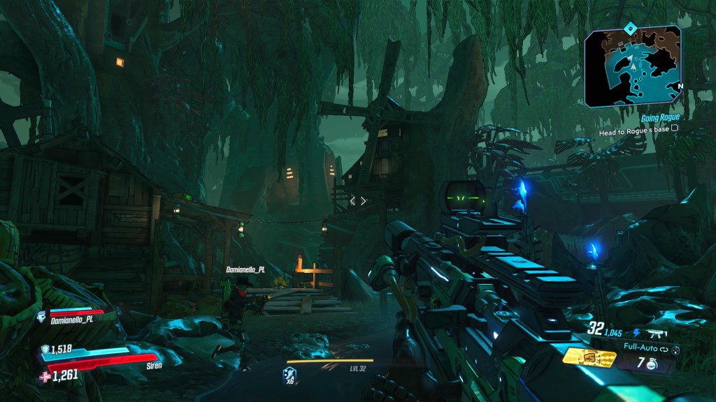 Z jednej strony zatem to typowe RPG. Zabawę zaczynamy od wyboru jednej z czterech postaci, wśród których każda reprezentuje odmienną klasę bohatera. Mi przypadło (za późno się zdeklarowałem) ogrywać trójkę jako Amara, będąca tzw. Syreną. W świecie gry oznacza to okraszone nadprzyrodzonymi zdolnościami niewiasty, mogące manipulować przestrzenią, np. podnosić przeciwników siłą woli czy wystrzeliwać w nich wiązkę energii. Mimo początkowych obaw, szybko załapałem bakcyla i dziewczę mi się spodobało. Zarówno od strony charakteru, będącego połączeniem gwiazdy muzycznej i zawadiaki, po umiejętności skoncentrowane na wyjątkowych mocach Syren. Inną postacią, o której mógłbym powiedzieć, że: „znam ją lepiej niż gorzej”, jest Zane, którym posługiwał się mój szwagier, a z którym ukończyłem większość tytułu. Zane to szpieg posiadający szkocki (albo raczej irlandzki?) akcent, czyli człowiek od zadań specjalnych, który w walce posługuje się różnymi gadżetami, np. hologramami czy rozstawianą barierą. Jego zdolności znam z obserwacji, natomiast jego odzywki w trakcie kampanii czy komentarze o wydarzeniach w grze, oblane typowo-wyspiarskim humorem, nie raz szczerze mnie rozbawiły. Skład zamykają Fl4ck i Moze. Pierwszy to łowca, korzystający w walce ze wsparcia różnych stworzeń/pupilów, które wywodzą się bezpośrednio z uniwersum. Wśród nich znajdą się m.in. „piesowaty” Skag czy przypominający goryla, Jabber, który np. potrafi podnieść z kolan swojego pana. Moze w starciach może przywołać wielkiego mecha, aby zasiąść za jego sterami i siać niesamowity zamęt wśród przeciwników lub rozkazać eliminować wrogów na auto-pilocie. Postacie (ogólnie) są ciekawe do tego stopnia, że gdyby nie pogoń za backlogiem chętnie sprawdziłbym wszystkie w akcji. Każda ma do dyspozycji trzy odmienne drzewka umiejętności, z których każdy gracz zbuduje, pasującego do jego stylu gry, bohatera. Drzewka można między sobą również mieszać, co daje sporo swobody w kreacji swojego builda. Wszystko zależy od naszego upodobania, a możliwości jest ogrom. Miałem również wrażenie, że postacie lepiej ze sobą współpracują pod względem umiejętności, czego brakowało mi w Pre-Sequel. Dla przykładu: unieruchamianie wrogów w powietrzu Amary, to idealna okazja dla innych pod ostrzał, albo możliwość wskoczenia na grzbiet mecha Moze, skąd można bezpiecznie pruć w przeciwników. Dużo zależy oczywiście od drzewka i stylu, jaki obierze gracz, aczkolwiek mimo to nowi vault hunterzy to powiew świeżości i jednocześnie całkiem udany kolektyw.