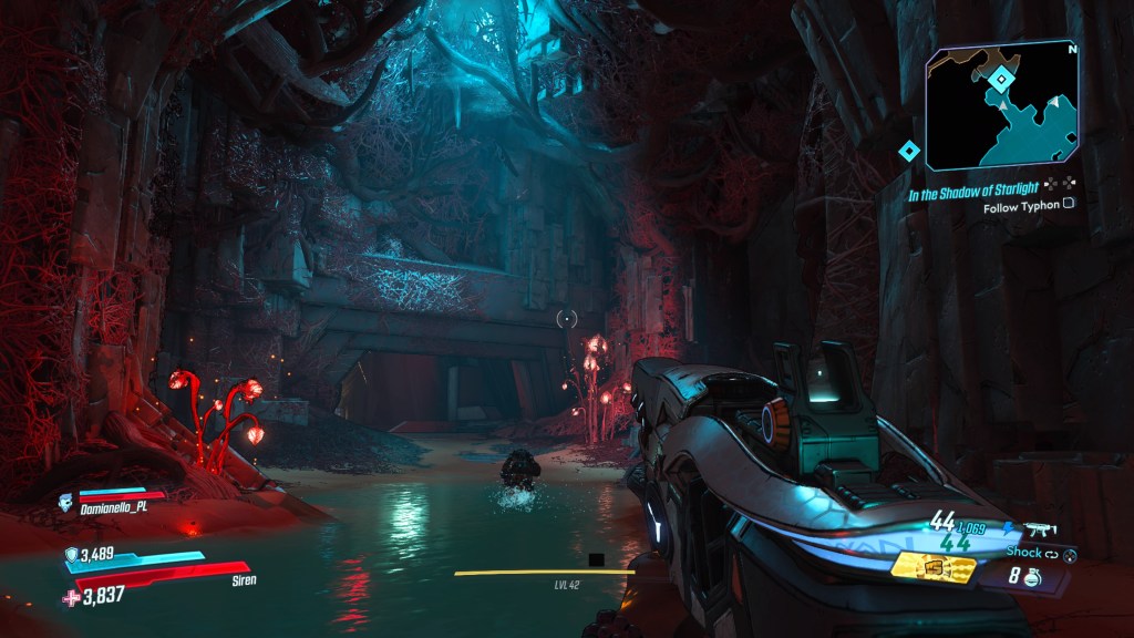 Jak również przystało na rasowego erpega, w grze nie mogło zabraknąć lootu, a tego mamy tutaj więcej niż gdziekolwiek. Gearbox zwykle mocno promuje ilość sprzętu, jakie ich algorytmy generują w grze, używając tak absurdalnych określeń jak gazylion czy bazylion, jednak nie wiem, czy znalazłoby się określenie na to, co widzimy w Borderlands 3 – krejzylion? Wśród nich wracają wszystkie gatunki giwer z dotychczasowych odsłon, bez specjalnych niespodzianek. Karabiny maszynowe i krótkie, rewolwery, pistolety, wyrzutnie rakiet itd. Również i producenci, to te same marki, które fani momentalnie rozpoznają z poprzednich odsłon. Jacobs, Hyperion, Maliwan czy Atlas – wszyscy na miejscu. Nową marką jest Children of the Valut, którego „prezesami” są główni antagoniści tytułu. Ich bronie charakteryzują się brakiem konieczności przeładowania, a w zamian wskaźnikiem przegrzania, który po dłuższym okresie duszenia spustu, zmusi nas do przerwy. Arsenał i przedmioty wspierające podzielono również według poziomu rzadkości, od pospolitego po legendarny. Im bardziej rzadka giwera, tym ciekawsze jej unikatowe zdolności i lepsze statystki główne oraz specjalne. Wśród głównych znajdziemy standard: częstotliwość ognia, czas przeładowania czy wielkość magazynku, a do specjalnych możemy zaliczyć np. obrażenia elementarne. Ostatnie szczególnie mnie interesowały, albowiem Syreny od zawsze miały drzewka skonstruowane pod grę elementami – Amara kontynuuje tradycję. Obrażenia o elemencie ognia są skuteczniejsze przeciwko przeciwnikom cielesnym, korozyjne przeciwko pancerzom, a elektryczne robią siekę z tarcz energetycznych wrogów. Nowością – w pewnym sensie – jest element lodu, który spowalnia lub nawet zatrzymuje przeciwnika. Większość z tego jednak już widzieliśmy, a w/w nowości – choć mocno spoko – nie robią specjalnego wrażenia.