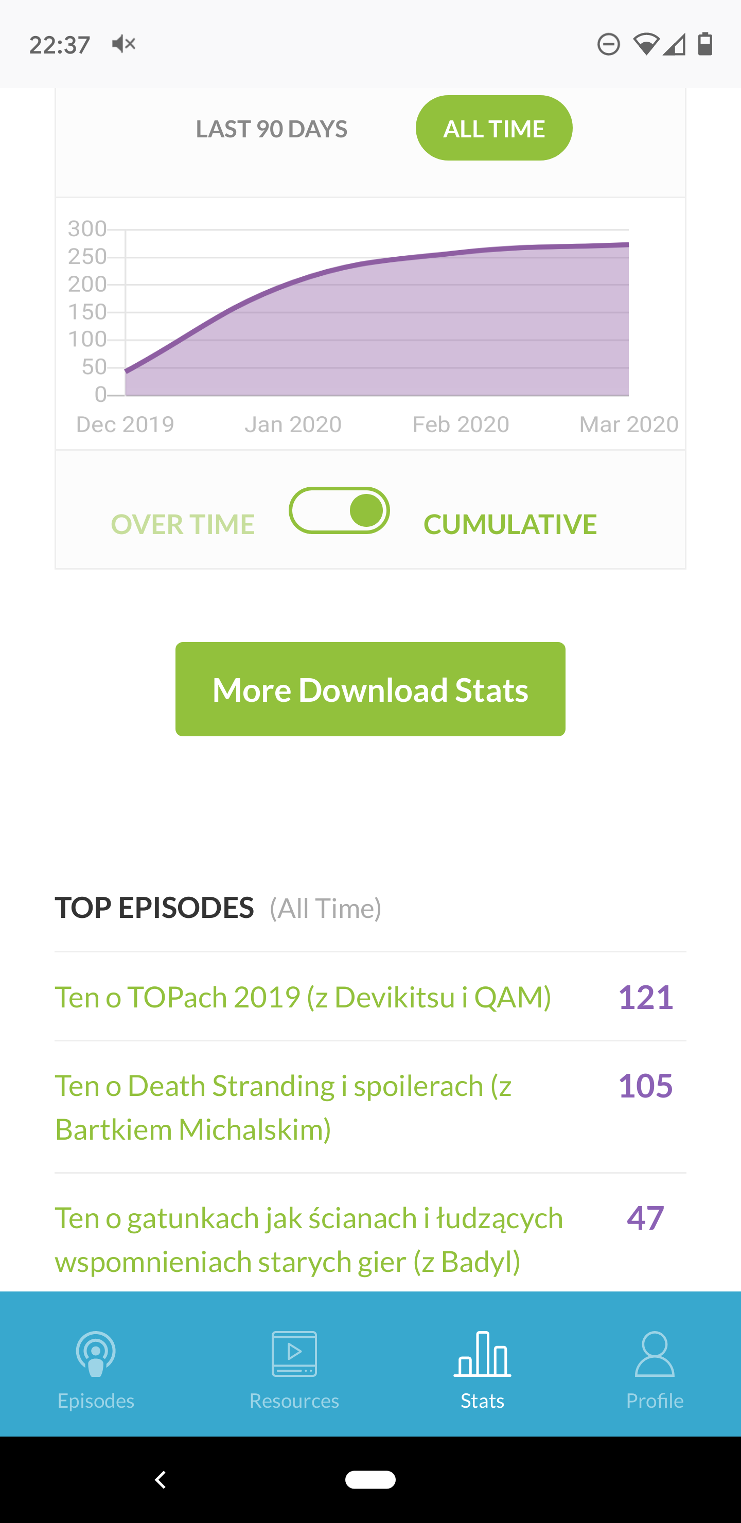 Jeśli chodzi natomiast o podcast, to jestem pozytywnie zaskoczony, że odcinkom udało się wbić w trzycyfrową liczbę, tak szybko. I choć ostatni odcinek mocno zaniża średnią, to wine widzę w braku regularności i dużym oknie pomiędzy publikowaniem. Myślę, że jak tylko odcinki zaczną wpadać bardziej regularnie, to sytuacja się poprawi. Już wprowadziłem pierwsze zmiany w procesie przygotowania kolejnych odcinków, m.in. duuuużo wcześniej odzywam się do potencjalnych gości nagrania, które jeśli się uda nagrać blisko poprzedniego odcinka, to audio może sobie leżeć do terminu publikacji.