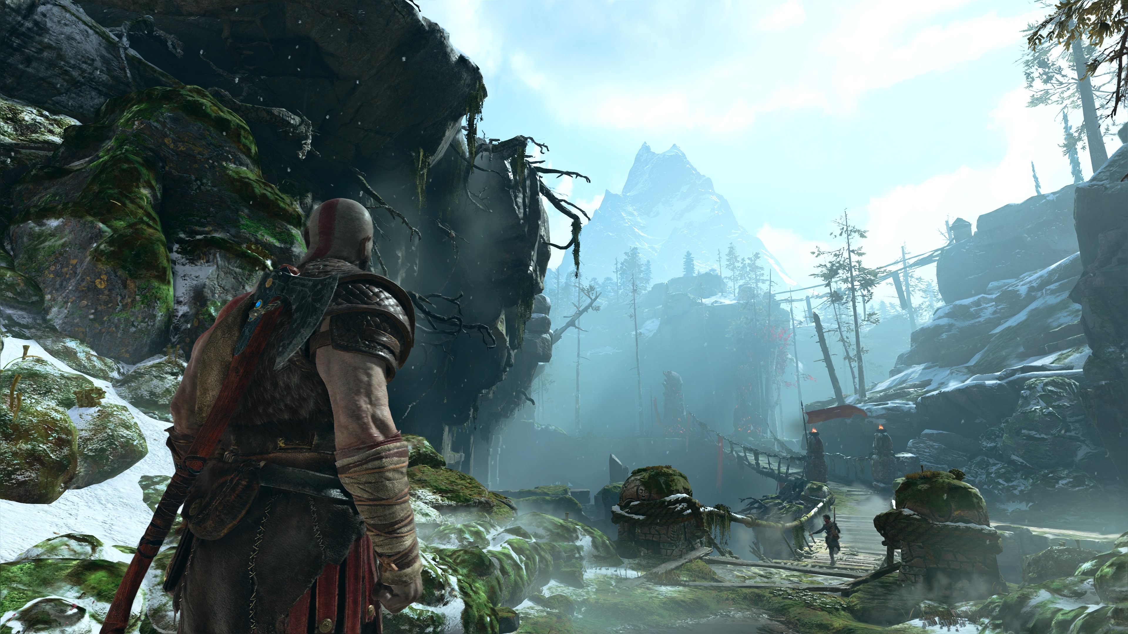Na ratunek sytuacji zjawia się oprawa audio-wizualna. W tym roku czeka mnie więcej ekskluzywnych tytułów, więc myślę, że powinienem sobie wypracować, jakiś szablon zachwycania się grafiką i muzyką. Może też odwrotnie, powinienem wylistować sobie epitety i kiedy je zastosowałem, aby się nie powtarzać…ale do sedna: God od War wygląda śliczne. Choć mam wrażenie, że Horizon Zero Dawn wyglądało lepiej, tak prawdopodobnie to tylko wrażenie. Każda z odwiedzanych krain posiada swój odmienny styl i koncepcję artystyczną. Jest zimne, pokryte zmarzliną i lodem Hellheim, które staje się odpowiednikiem gry na powracający w serii motyw ucieczki z zaświatów. Kraina wojny jasnych i ciemnych elfów, która kontrastuje konflikt swym pięknem, Midgard, kraina najbliższa świata ludzkiego, w której to spędzimy najwięcej czasu. Wszytko urzeka. Wrażenie również robią modele, czy to postaci głównych czy napotykanych przeciwników. Wystarczy zbliżyć wzrok na zbroję Kratosa czy jego broń, aby zauważyć liczne szczegóły i zdobienia. Za muzykę natomiast odpowiada Bear McCreary, który do tej pory z grami nie miał zbyt wiele wspólnego, ale jest za to niesamowicie ochoczo kontraktowany do pracy na ścieżkami muzycznymi do telewizji, a przede wszystkim seriali. The Walking Dead, Outlander czy Da Vinci’s Demons – to niektóre z tytułów w jego portfolio. Zatem doświadczenia odmówić mu nie można, a wykorzystał je tutaj świetnie. Cały soundtrack dostępny jest na Spotify, więc zachęcam chociażby do wysłuchania pierwszego, tytułowego utworu krążka – idealnie wprowadza klimat całego tytułu. Dla kilku utworów, kompozytor zaprosił skandynawską wokalistkę Eivør, którą możecie usłyszeć chociażby w drugim utworze albumu OST – miód malina.