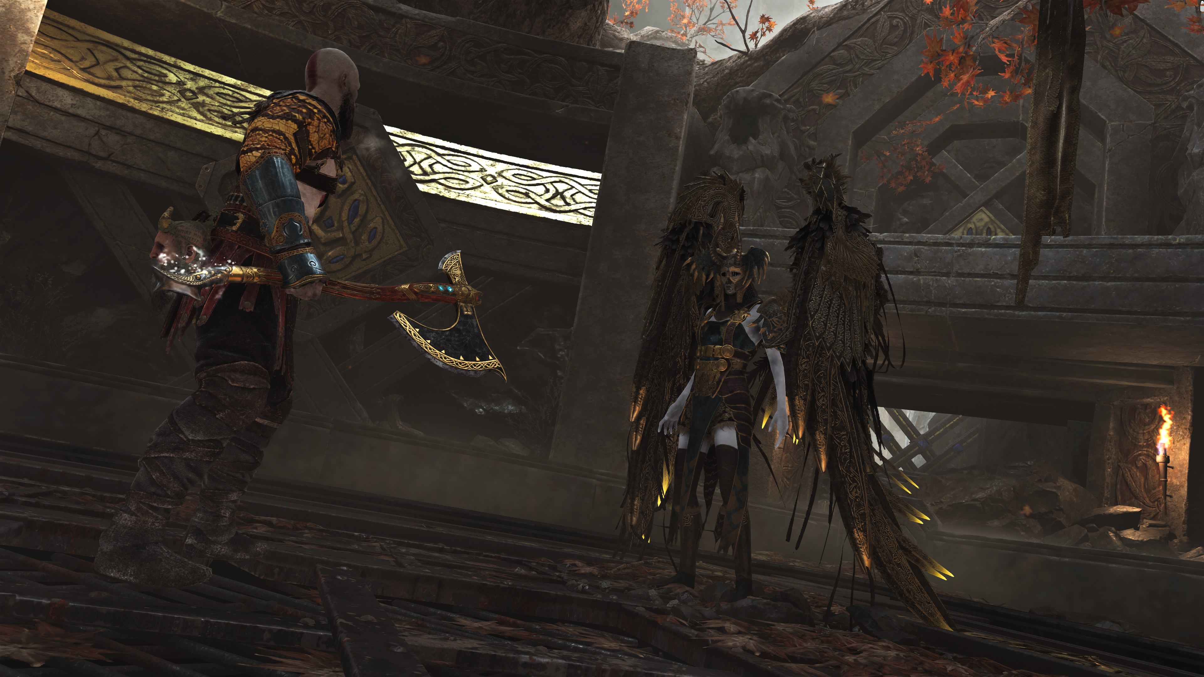 Również i rozgrywka doczekała się solidnej metamorfozy. Tytuł ze slashera, ze sztywno umieszczoną kamerą w przestrzeni, zmienił się w typową produkcję akcji z widokiem zza ramienia bohatera – trochę jak w Dead Space czy odsłonach Resident Evil ery HD. Idąc tym tropem, gra przestała być radosną sieką, której celem było podbijanie wskaźnika combo. System walki stał się bardziej nieprzypadkowy i wymagający. Już wcześniej opierał się na tempie i rytmie walki, aczkolwiek tutaj opanowanie obu czynników jest wyzwaniem, gdzie wcześniej było raczej mrzonką. Z początku miałem z tym lekki zgryz, albowiem wciąż dobrze pamiętany gameplay serii przed metamorfozą, gdzie wpadałem na wrogów na pełnej, bez planowania czy przemyślenia kolejnych, wyprowadzanych ciosów. Brakowało mi tej „sieki”. Tęskniłem za efekciarstwem. Na szczęście, im więcej czasu spędziłem z tytułem, tym lepiej łapałem nowy rytm Kratosa. Natomiast im więcej nowych ataków odblokowywałem, tym ciekawszy stawał się wachlarz możliwości w starciach, a jednocześnie stawały się one efektowniejsze. Zacząłem lepiej obserwować znacznik mówiący o zagrożeniu poza okiem kamery, wykorzystywać parowanie ciosów i wykonywać uniki, gdy przeciwnik zamierzał użyć nieblokowanego ciosu. Trzeba też przyznać, że pomimo nieco bardziej „dojrzałego” systemu walki, tytuł nie stracił nic z brutalności i poczucia potęgi, jakie towarzyszyły poprzednim odsłonom. Skłaniam się bardziej ku temu, że nawet zyskał na każdym z tych aspektów. Nie mały wpływ na to miał nowy oręż Boga Wojny, Topór Leviathana. Siedząc przez telewizorem, dosłownie można poczuć ciężar i moc każdego uderzenia toporem, za co należą się twórcom brawa. To jedna z tych broni, które powinny znaleźć się w gamingowym hall of fame takowych przedmiotów, zaraz obok np. Gravity Gun z Half Life’a czy Ukryte Ostrze z serii Assassin’s Creed – czytając posty z serii „Wygrzebane z sieci”, na pewno widzieliście nie jeden materiał z jego analizą.