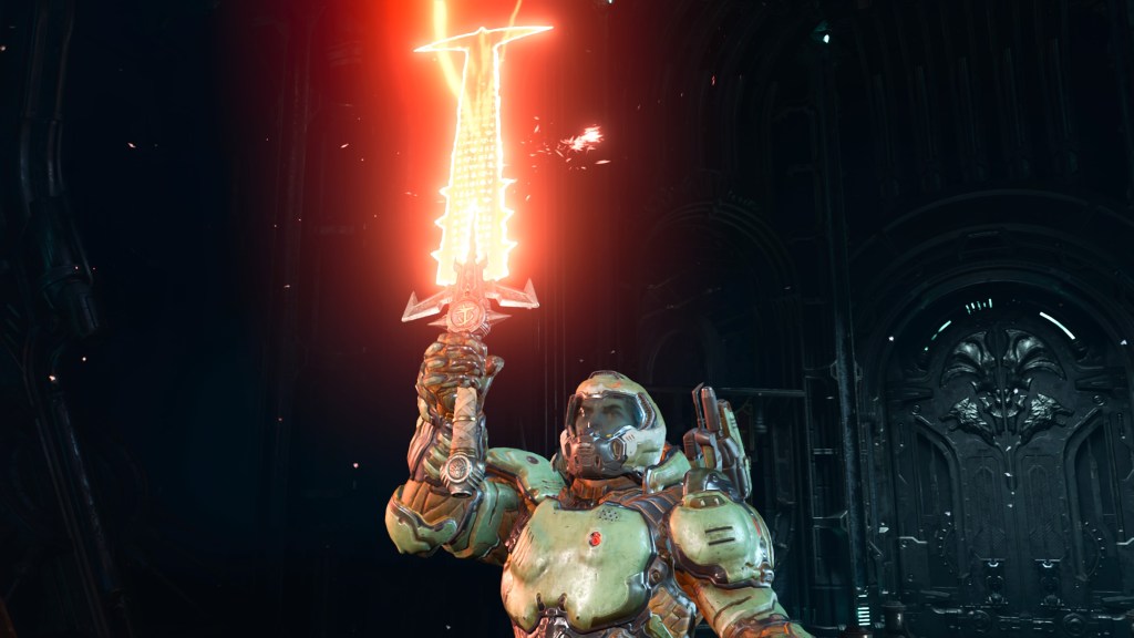 Zacznę od aspektu, od którego rozpocząłem również omawiania tytułu w trakcie siódmego odcinka Gamecastu RaczejKonsolowo: gierkowości tytułu – brzmi kiepsko, ale pozwólcie mi wytłumaczyć. Otóż wyobraźcie sobie oś, na której jednym końcu znajduje się słówko real, a po drugiej game. Elementami, które przesuwają suwak po osi w stronę realizmu, są np. fotorealistyczna grafika czy nawiązujące do świata prawdziwego elementy. DOOM16 (taki skrót wymyśliłem), pomijając kwestię hord piekielnych demonów z Marsa, miał umiejscowiony suwak bliżej krańca realizmu, a bodźcami, które pchały go w drugą były wszelkie przedmioty użytkowe, znajdywane pod nogami. Zielony pancerz niemający nic wspólnego ze światem gry, punkty życia wypadające z przeciwników po egzekucjach – to przykłady. Jako sekrety szukaliśmy figurek, które z niewiadomych przyczyn, ktoś pochował w szybach wentylacyjnych – dlaczego? Pamiętam, że gryzło mi się to nieco ze sobą, aczkolwiek ekstaza krwawej jatki skutecznie niwelowała wpływ nieścisłości na zadowolenie. Dla odmiany w DOOM Eternal, jak pewnie się już domyślacie, id software przesunęło suwak znacznie bliżej drugiego krańca skali. Zupełnie jakby na spotkanie planującym ktoś powiedział: „Wiecie co? Jebać to. I tak nikt nie uwierzy, że DOOM jest poważny. Jedziemy po bandzie!” – i temu komuś należy się cholerny medal.