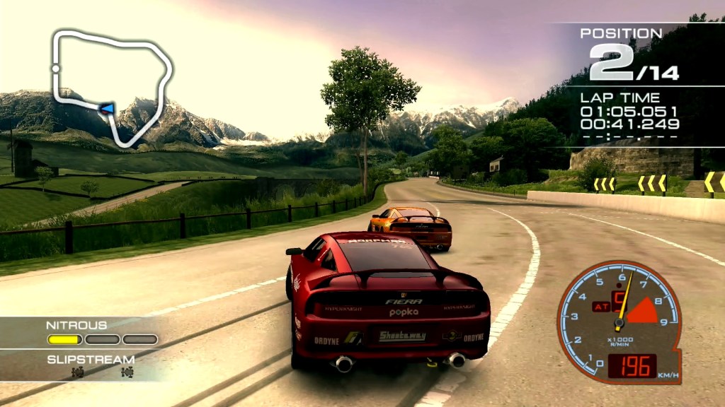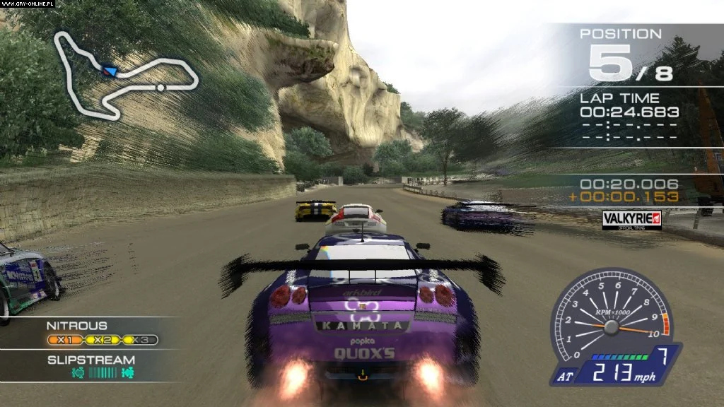 Czym natomiast Ridge Racer deklasuje konkurencje to efekciarstwo. Tak naprawdę albowiem, grze jest rozgrywką bliżej do Wipeout, aniżeli Gran Turismo. To arcade w pełnej okazałości, gdzie najszybszym sposobem pokonania większości zakrętów jest drift, którego wywołuje zupełnie nierealnie prosto – puszcze gaz, skręt auta, znów do dechy i tyle. Dwieście km/h na liczniku, a przed nami zakręt dziewięćdziesiąt stopni? Potrzymaj mi piwo! Na chwilę puszczamy gaz, skręcamy i znów go dusimy, a samochód idealnie układa się do pokonania zakrętu bokiem, gdzie do nas należy jedynie utrzymanie dobrego kierunku. Nie doszukujcie się tutaj praw fizyki i grama realizmu. Wspomniany tunel aerodynamiczny wprowadzono tak, umownie, że pozostaje lekko uśmiechnąć się pod nosem: chowamy się na chwilę za przeciwnikiem, a nasz pojazd przyśpiesza w mgnieniu oka o kilkanaście km/h. To ma sprawiać frajdę, co też robi. Aczkolwiek przyznam, że nie dziwię się twórcom, którzy po siódemce próbowali diametralnie zmienić kolejną odsłonę – co finalnie im nie wyszło. Mimo, że w samym ogrywaniu Ridge Racer 7, niespecjalnie byłem zmęczony rozgrywką, tak mając świadomość, że od szaraka niewiele w serii się zmieniło, trudno nie zrozumieć Namco w zamrożeniu serii, po nieudanym Unbound.