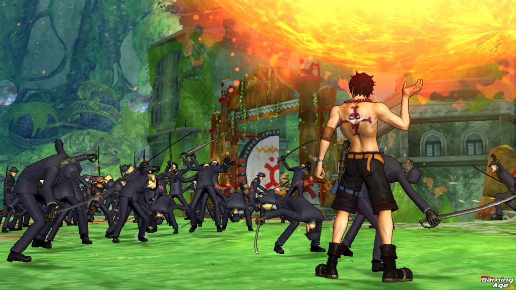Zanim jednak o tym, co się zmieniło, to warto przypomnieć czym seria Pirate Warriors, ogólnie jest. Produkcje Omega Force to – zgodnie z rutyną studia – przedstawiciel gatunku musou, a zatem gier, w których biegamy po lokacjach, tłukąc pokaźne ilości przeciwników i realizując różne cele czy misje. Szczególnie element napierniczania się z hordami przeciwników brzmią bardzo znajomo fanom anime One Piece, w uniwersum którego rozgrywa się gra. Luffy i przyjaciele bardzo często natrafiają na całe armie marynarki czy wrogich pirackich band, co kończy się wielkimi bitwami z tysiącami oponentów – dokładnie tego doświadczycie w One Piece: Pirate Warriors 2. Gatunek oczywiście trzeba lubić. Dla urozmaicenia rozgrywki, opartej głównie na nabijaniu w tysiące licznika nokautów, twórcy dorzucili cele do każdej wyprawy. Raz będzie to przejmowanie terytorium, a innym razem ochrona jednego z naszych kompanów na mapie. Nie są one może specjalnie wymyślne, nawet wcale, ale robią robotę, niejednokrotnie zmuszając mnie do kalkulacji kolejnych kroków i omijaniu mniejszych grup przeciwników, aby jak najszybciej dostać się do np. będącego w opałach przyjaciela. Po ukończeniu poziomu, gra ocenia nasze dokonania względem trzech kryteriów i wlepia ocenę, od której zależą nagrody w postaci monet pirackich, które wracają w kontynuacji. Monety służą jako perki, które przypinamy do wybranego bohatera, zwiększając jego statystyki bitewne.