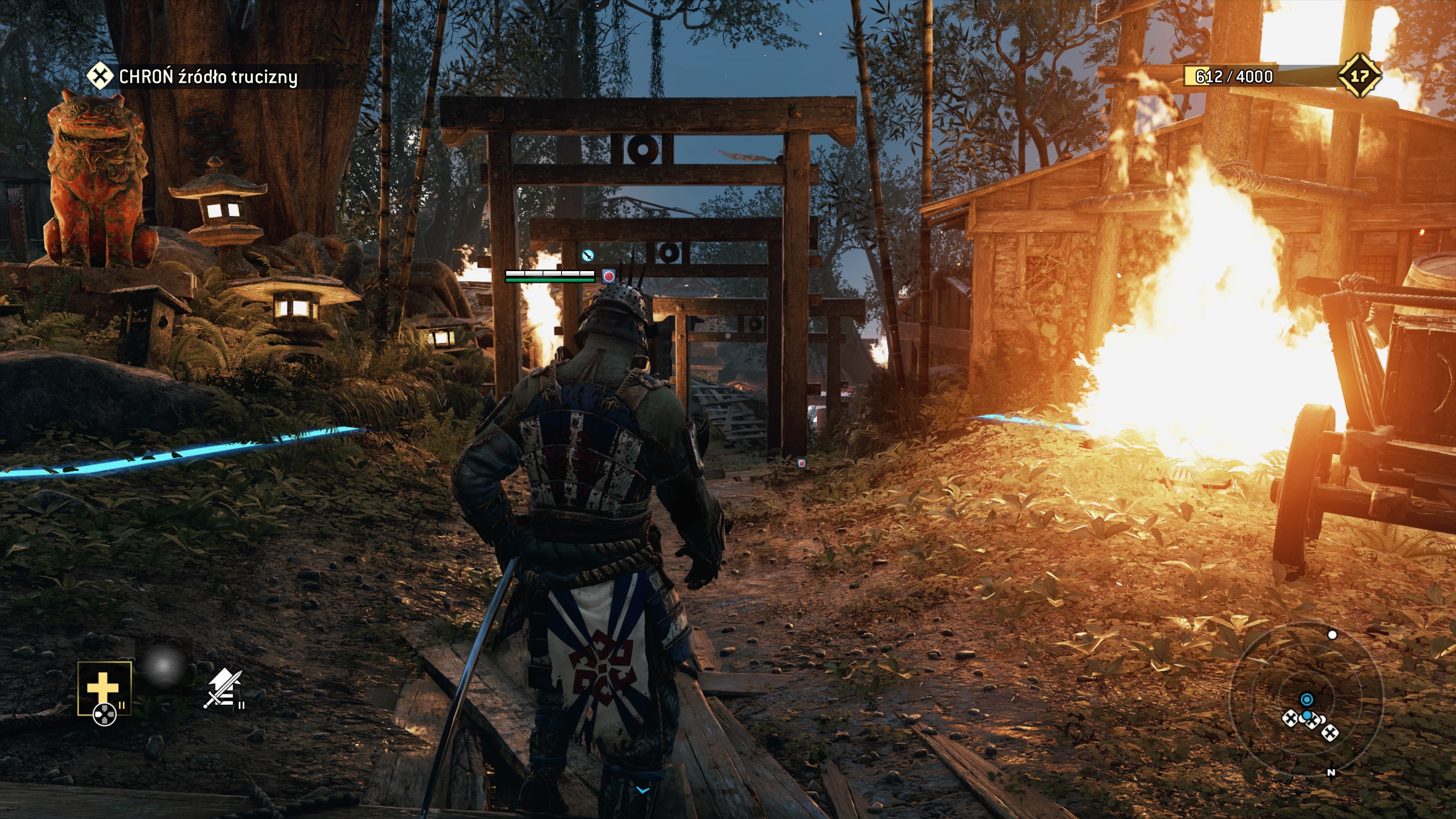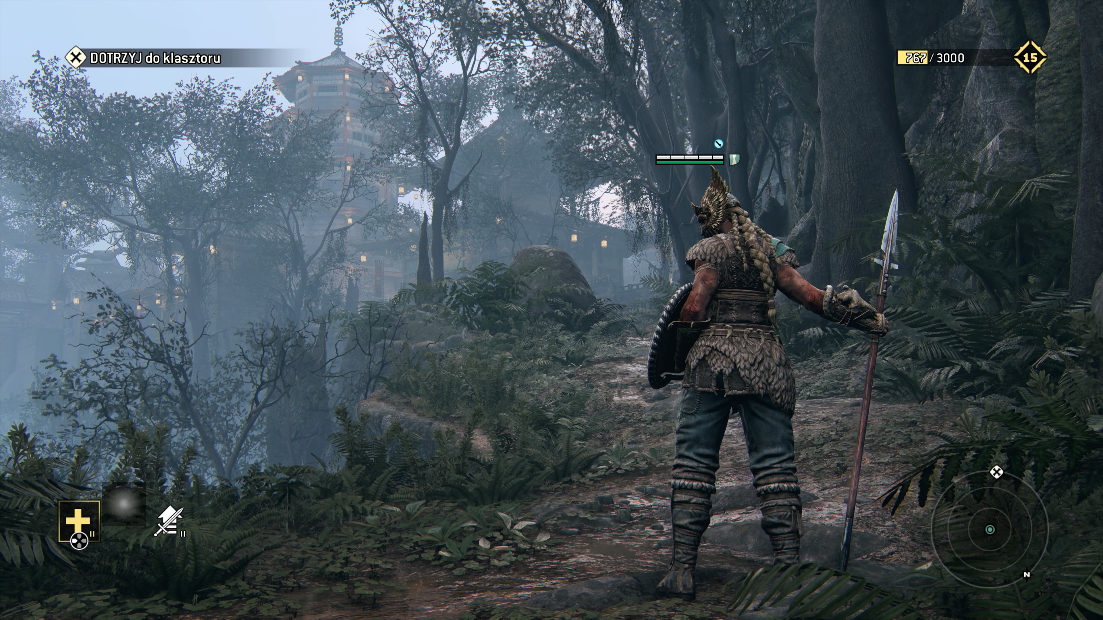 EElementem wyróżniającym For Honor jest niewątpliwie sprytny [lub: przemyślany] system walki, aczkolwiek nie powiedziałbym, że jest on pionierski, jak zwykłem słyszeć. Nieco podobnie do bijatyk, polega on w sporej mierze na odczytywaniu ruchów przeciwnika i dobrej znajomości własnego wachlarza ciosów, ale także mechanice trzech gard: górnej, lewej i prawej. Zmiana jest prosta i bardzo intuicyjna, albowiem za wszystko odpowiada prawa gałka analogowa, która w momencie przejścia w tryb walki przechodzi z kontroli kamery w ułożenie gardy. Zasada jest zatem prosta: chcąc zadać obrażenia przeciwnikowi, musimy uderzyć z kierunku innego niż wybrana przez niego garda. Blokowanie nie ma swojego przycisku, a polega na odczytaniu kierunku ataku przeciwnika i dopasowaniu do niego tego samego kierunku blokowania. Oczywiście, walka jest bardziej skomplikowana niż tylko powyższe. Przełamywanie obrony, rzuty, parowanie czy uniki – wszystko, co wyobrażamy sobie, że ma zastosowanie w starciach mieczy i toporów, ma tutaj swoje miejsce. Mimo wszystko miałem niemałe problemy z odnalezieniem się w systemie. Szczególnie jeśli chodzi o którąś z bardziej zaawansowanych mechanik. Do tego stopnia, że po dziś nie ukończyłem ostatniego zadania bazowego przewodnika. Mimo że nie trzeba szukać kolejnego ruchu przeciwnika na podstawie modelu i jego animacji, gdyż jest pomocny wskaźnik na jego środku. Nawet pomimo możliwości dostosowania martwych stref dla prawego analoga, pod wybór gardy. Ciągle miałem wrażenie, że nie trafiam z wyborem albo jestem spóźniony. Pomyślałem: „No nic” i w końcu sprawdziłem kampanię, zakładając, że na jej podstawie czegoś się nauczę, co później wykorzystam w multiplayerze.