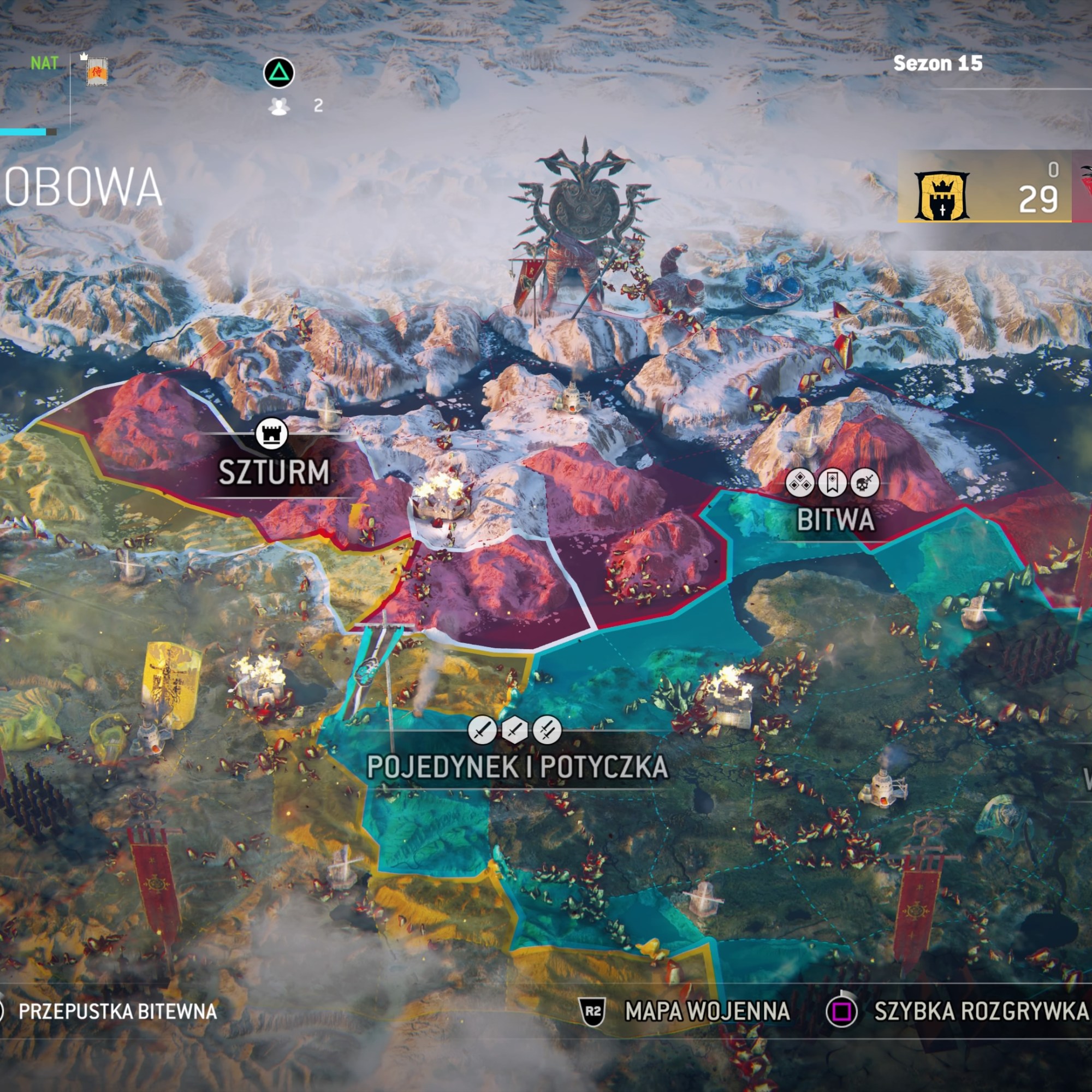 Multiplayer to zdecydowanie serce produkcji. Zbudowany wokół konfliktu trzech frakcji, rozpoczyna się od przedstawienia mapy. Z niej widzimy, jak nacierają na siebie trzy strony zbrojne. Przypomina to nieco trójstyk granic Niemiec, Belgii i Holandii, tylko, zamiast wymienić się w nim serem, bratwÜrstem i czekoladkami, robią to mieczem, toporem i włóczniami. Cały region podzielony został na trzy obszary walki, które jednocześnie są wyborem trybu gry. Szturm polega na zdobyciu twierdzy wroga, gdzie atakujący muszą eskortować wielki taran przez mapę (trochę jak ładunek w Overwatch), a obrońcy starają się im w tym przeszkodzić lub zniszczyć taran. Bitwa, czy inaczej Dominacja, to dobrze znana zabawa w kontrolowanie flag na mapie i zdobywanie punktów za grę w przewadze. Kiedy jedna z drużyn osiągnie ich tysiąc, wywołuje tzw. przełamania – przeciwnicy nie mogą się respawnować, a jedynie wskrzeszać na polu walki. Z przełamania można wyjść, przejmując jedną z flag na mapie. Dominacja to bezpodstawnie mój – a patrząc po popularności wśród oczekujących na mecz, to nie tylko – ulubiony tryb zabawy w For Honor. Prosty w założeniach, szybki (rundy trwają około dziesięciu minut), a kulminacyjne przepychanie się w przewadze pod koniec, potrafi wyprodukować naprawdę zapadające w pamięci starcia – nie ma nic bardziej satysfakcjonującego niż odbicie się od przełamania i wygranie meczu. Trybów zabawy jest jeszcze więcej, od pojedynków 1v1 czy 2v2, aż po najzwyklejszy Team Deathmatch, ale ponieważ słabo z ich popularnością, nie było mi dane ich sprawdzić. Mimo to, do multi wracałem chętnie, nawet pograłem w For Honor więcej, aniżeli zakładałem na początku, a zdecydowanie więcej niż mówił mi rozsądek, po mocowaniu się z systemem walki oraz kampanią.
