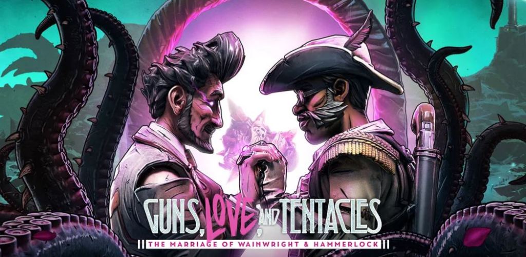 Drugim dodatkiem okazała się historia wesela Sir Hammerlocka oraz Wainwrighta Jakobsa, których związek (przepraszam za potencjalny spoiler dla niegrających w trójkę) może być zaskoczeniem. Jednak tak, panowie się pobierają, a do organizacji wesela zatrudnili osobę, która zajmuje się tym zawodowo: Gaige! Osoby niegrające w Borderlands 2 nie wiedzą, że była ona jednym z dodatkowych vault hunterów tamtej odsłony, obok Psycho Kriega. Zabawne widzieć ją w nowej roli, ale też nie spodziewałem się takiego powrotu, więc pierwszy plusik DLC załapało na starcie. Trafiamy na planetę Xylourgos, która niemalże w całości pokryta jest lodem, co kontrastuje z trójką, gdzie śnieżnobiałych krajobrazów nie mieliśmy za wiele. Okazuje się, że wybrana lokacja zaślubin przez parę młodą, skrywa kulty wyznający martwe truchło, jakiejś ogromnej, „mackowatej” istoty, która jest tak duże, że widać je z każdego miejsca mapy. Dodatkowo bardzo szybko, pani prezes kultu obiera sobie za cel jednego z nowożeńców, którego udaje się jej omamić, wprowadzić w stan transu, a finalnie porwać. Do nas będzie należeć dowiedzenie się, co się dzieje i uwolnić pana młodego. Klimatycznie dodatek jest dosyć creepy, co nawiązuje mi do dodatku z Borderlands 1, The Zombie Island of Dr. Ned. To znów dodatek fabularny, ale powiem szczerze: skok na kasyno podobał mi się znacznie bardziej jako motyw przewodni. Sytuację ratuje natomiast (znów) humor oraz wątki poboczne i ich bohaterowie. Miasto przeklęte najdziwniejszymi klątwami mnie masakrycznie rozbawiło, m.in. długa rozmowa z facetem, który, co kilka wypowiedzianych słów, wymiotuje. Klub czytelników w bibliotece również był świetny. Ciekaw jestem, czy reszta dodatków również będzie tak mocno nastawiona na fabułę. Raczej ma wydłużać historię i kierować ją w nowe miejsca, niż budować nowe sposoby zabawy. Wygląda na to, że taki trend obrało sobie Gearbox.