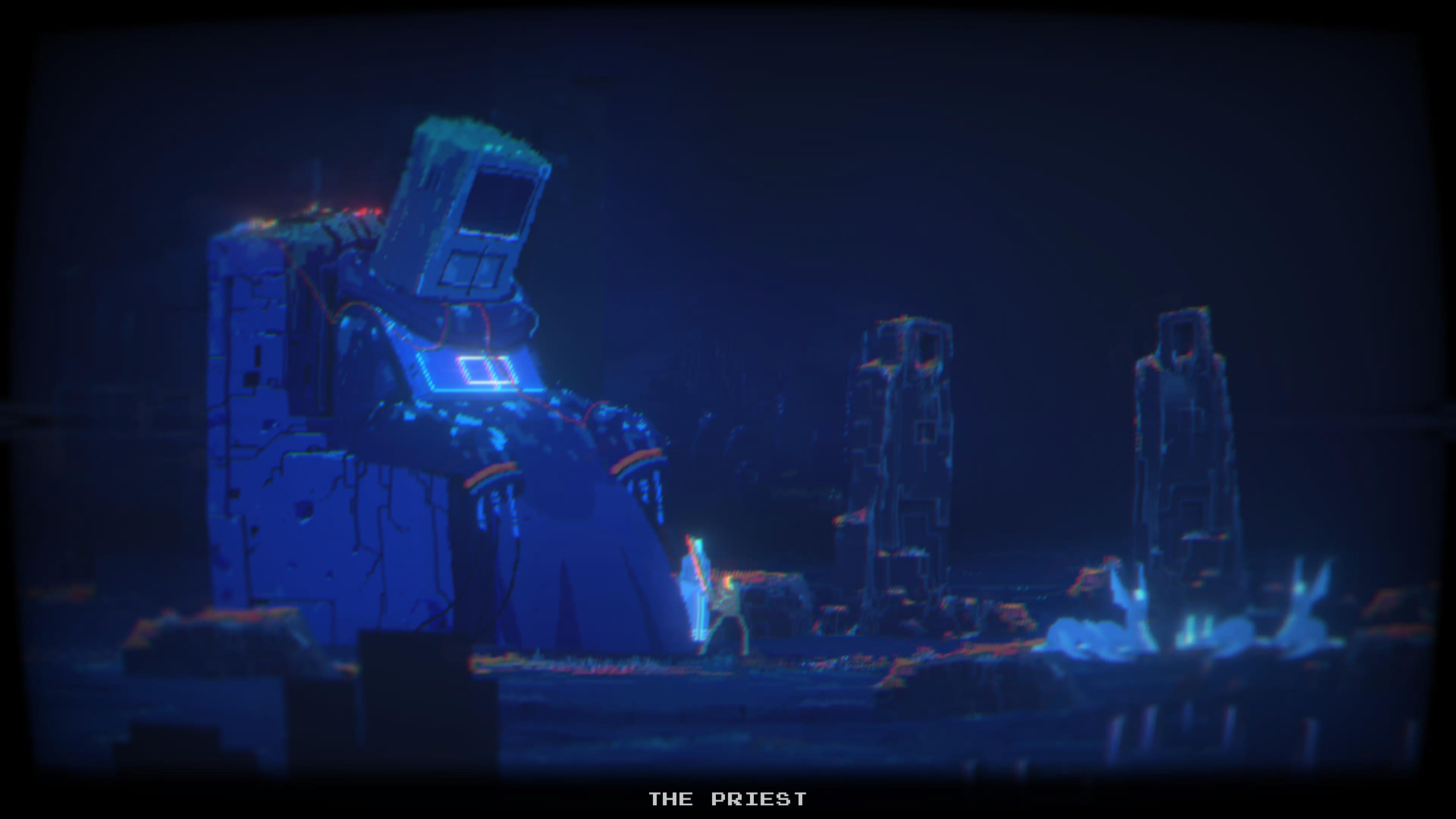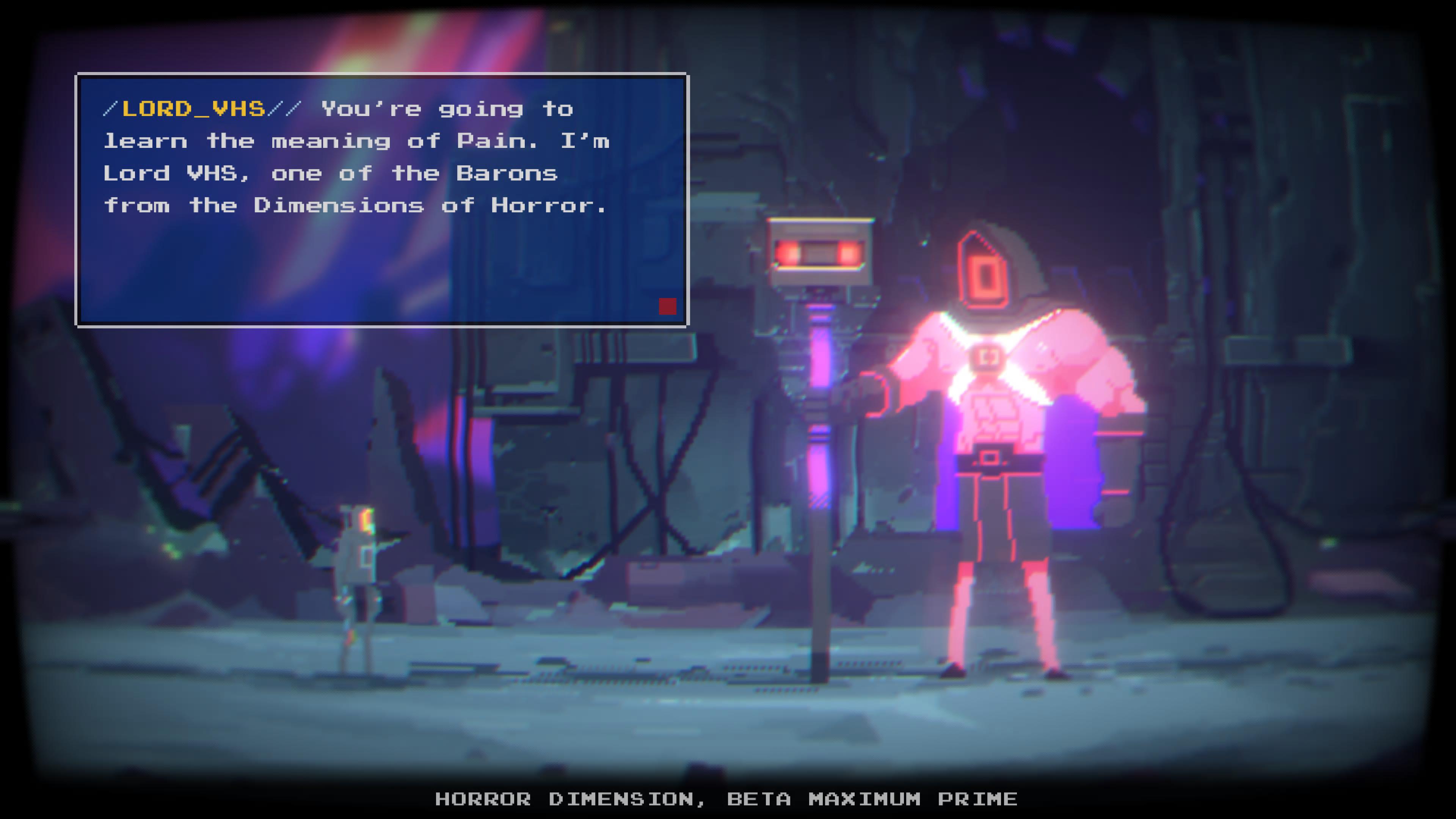 Nie ulega wątpliwości natomiast, że pierwsze skrzypce odgrywa tutaj oprawa wizualna, a i o walorach muzycznych również można powiedzieć wiele dobrego. Jeśli choć minimalnie podoba wam się pixel-art, czy oprawa mocno stylizowana na retro, to dosłownie zakochacie się w Narita Boy. Produkcja jest jednym a najlepiej wyglądających pixel-artów, jakie widziałem kiedykolwiek. Jakość stworzonych z kolorowych kwadracików pejzaży, lokacji, postaci, a kończąc na wszelkich elementach ruchomym, jak chociażby towarzyszące naszym atakom efekty specjalnie, to uczta dla oczu. Dodatkowe wrażenie robi fakt, że praktycznie każdy ekran czy miejscówka są unikatowe. Każdy kolejny obserwowany przez nas kadr jest wyjątkowy. Nie zobaczymy drugiego takiego prawdopodobnie w całej grze. Osoby odpowiedzialne za art w Narita Boy powinny być dumne z ostatecznego wyniku. Wspomniałem już o robiących robotę efektach specjalnych, które tak, są fenomenalne, ale kopara wali o ziemie na widok animacji w grze. Pixel-art, pixel-artem, aczkolwiek satysfakcjonujące animacje w takim stylu nie są czymś prostym i tak oto kolejny raz należą się brawa Studio Koba za osiągnięty poziom. Jeśli przyjrzymy się poruszaniu się naszego bohatera, to wyraźnie na każdą akcję składa się pełna paleta klatek, odhaczających wszystkie z pryncypiów animacji. Zresztą to nie tylko o naszego bohatera chodzi, ale i wszystko, co nas otacza, a w tym bossowie. Wielu elementom gry towarzysza mniej lub bardziej subtelne animacje jak, chociażby poruszane części ubioru na wietrze. Wisienką na torcie oprawy jest filtr nałożony na całość widocznego obszaru, który imituje stare telewizory kineskopowe, nadając obrazowi nieco zaokrąglenia oraz delikatnych pasów rodem z CRTka, do którego mieliście podłączone pierwsze PlayStation. Kapitalna walentynka dla fanów retro. Obiecałem, że wspomnę o muzyce, a ta została przygotowana przez artystę Salvinsky, którego twórczość możecie sprawdzić na Spotify. Nie pozostając dłużny oprawie wizualnej, artysta ujął w pełni klimat produkcji, dostarczając w ramach ścieżki dźwiękowej otwory pełne syntezatorów, mroku synthwave’u, retro i bitowych melodii rodem ze SNESa (czyt. Pegasusa).