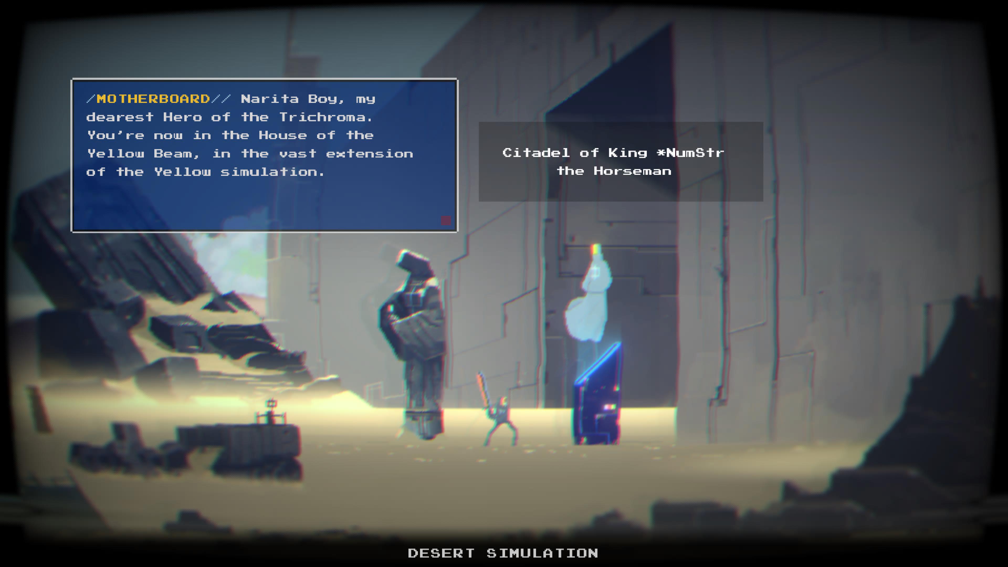 W produkcji wcielamy się w rolę tytułowego Narita Boya. Wybrańca i wybawiciela Cyfrowego Królestwa. Bohatera dzierżącego legendarny Techno Sword i przepełnionego mocą trzech promieni Trichroma. Kraina staje u skraju pogrążenia w otchłani zła, które rozlewa się na całą krainę za pośrednictwem złego czarnoksiężnika (w grze nazywanego: HIM, co przetłumaczyć można jako ON) i jego sługusów. Do świata przypominającego mi film Tron, wzywa go niejaka Motherboard, a wię….dobra daje sobie spokój z próbą tłumaczenia…ogólnie rzecz biorąc, ponieważ zostajemy niejako wciągnięci do środka gry wideo, to wszystko i wszyscy, których spotykamy w grze, nawiązuje do świata cyfrowego wewnątrz komputera. Naszym zadaniem staje się natomiast, odbicie trzech krain, które zostały opanowane przez siły złego, poprzez wykurzenie z nich wszystkich przeciwników, w tym licznych bossów. Tych rzeczywiście trochę się pojawia, często pod postacią minibossów, na których trafiamy w trakcie dalszej przygody. Starcia z nimi są ciekawe, a twórcy popisali się kreatywnością w wymyślaniu im mechanik czy ataków.