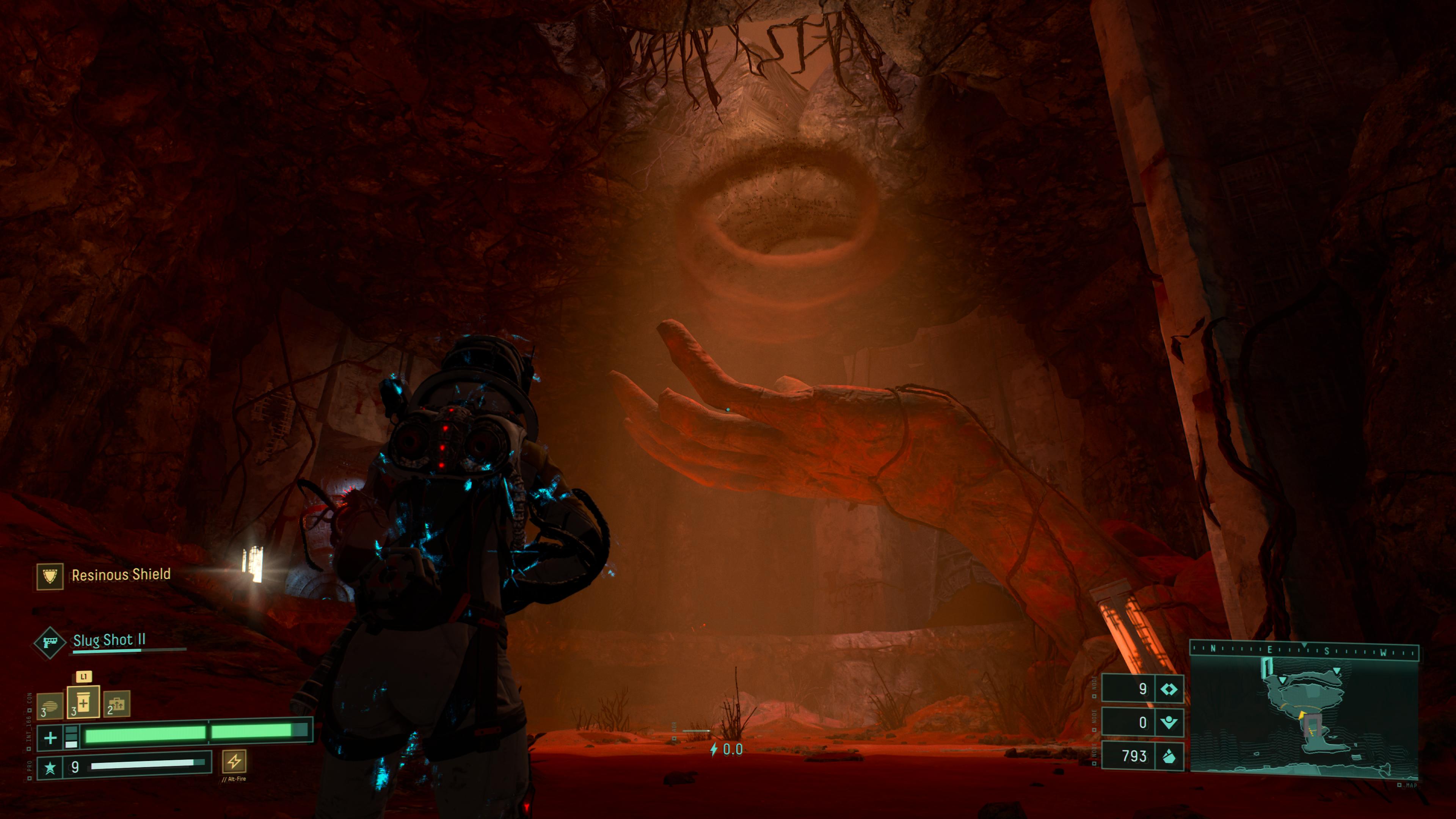 Wszystko, co do tej pory powiedziałem o Returnal, to zasadniczo zawartość pierwszych zapowiedzi, więc żaden spoiler. Również zaskoczeniem nie powinno być dla was, że Returnal jest grą, która wpisuje się w mechaniki roguelike. Choć sposobem implementacji bardziej skłania się do warianty lite – wyjaśnienie dla nerdów rogali. Mamy tu fundamentalną dla gatunku pętlę śmierci i prób, aczkolwiek poza utraconym czasem gra nie karze gracza za porażki, a nawet pozwala coś zachować. Jest również losowość na wielu płaszczyznach. Poczynając od budowy świata, który przypominał mi Dead Cells czy Enter the Gungeon, gdzie świat gry budowany był z gotowych pomieszczenia, które gra za każdym podejściem układała w losowej kolejności. Czasem natrafimy na bramę do bossa już w drugim pokoju, a innym razem na samym końcu levelu. Pewne lokacje są ustalone jak, chociażby skrzynia z bronią w drugim pomieszczeniu każdego przejścia. Broni, jest niewiele, bo liczba zamyka się na dziesięciu, ale każda posiada zestaw losowych atrybutów, które odblokowujemy poprzez użycie jednej czy drugiej. Arsenał jest bardzo różnorodny i nieźle wyważony. Bronie, które wydawały się z początku porażkami, z czasem urosły do stanu ulubionych, np. zatruwający przeciwników „kwasek” czy wyrzutnia rakiet, która po odblokowaniu trybu Full-Auto stała się jednym z moich faworytów. Raczej nie zdarzyło mi się zrzucać winę za kolejny fail na broń, a często zmuszony do konkretnej odkrywałem, że ‚nawet daje radę’. Tym bardziej że możliwości zmiany broni na każdym przejściu jest ogrom. Każdy znajdziesz w arsenale coś dla siebie.