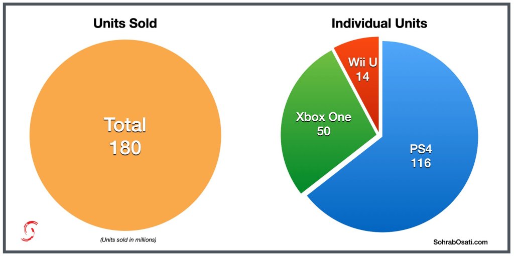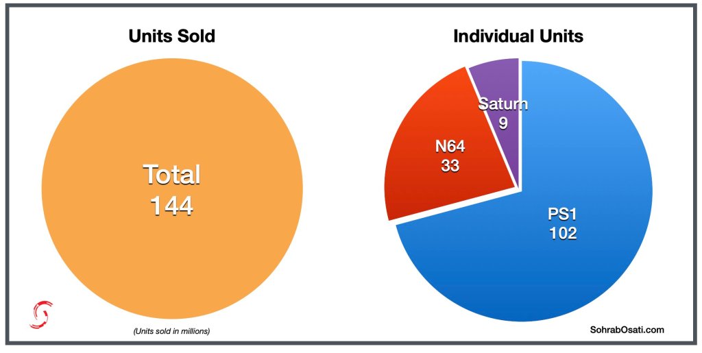Kiedy wychodzę do ludzi z powyższymi przekonaniami, przeważnie otrzymują zwrotką jeden argument: rynek gier wideo jest znacząco większy od tego sprzed lat, więc pomimo mniejszej de facto ceny, to producenci wychodzą na zero Co niestety, nie jest prawdą. Nieprawidłowość (choć nie do końca, ale o tym za chwile) tezy przeczuwałem już wcześniej, ponieważ dużo czytam o starych tytułach, o premierach konsol, o wspomnieniach minionych generacji i liczb, przypisywanych sprzedaży powyższych, więc nie zaskoczyło mnie przesadnie, że nie odbiegają ZNACZĄCO od dzisiejszych standardów. Na materiał podający mi namacalne dane w tym zakresie, natrafiłem stosunkowo niedawno, dzięki poleceniu dalej na Twitterze przez Shawna Laydena (byłego szefa PlayStation, którego następcą jest Hermann Hulst). Autor prezentuje w nim zestawienie ostatnich pięciu generacji „dużych konsol” oraz informacje: „Jak zauważyło wielu znawców branży, tradycyjny rynek gier na konsole nie urósł zbytnio w ciągu ostatnich dwóch do trzech dekad. Zamiast tego mamy rynek z bazą instalacji około 250-300 milionów, który jest wymieniany między wielką trójką. Czasami jest to PlayStation z większą liczbą użytkowników, inne generacje to Nintendo, ale nigdy nie jest to mniej niż 200 milionów i jeszcze nie przekroczy 300 milionów.”. To musi być niezłym szokiem dla osób, które spodziewały się co najmniej kilkukrotnego wzrostu. Pewnym, w moim odczuciu, wytłumaczeniem takich oczekiwań, może być rynek mobilny, który w ciągu ostatnich lat wystrzelił niesamowicie do góry, a nie zaliczany jest do core’a branży. Autor dorzucił do swoich materiałów również graficzne przedstawienie sprzedaży głównych sprzętów. Przy czym warto zaznaczyć, że pokazują one jedynie po jednym sprzęcie każdego giganta (według definicji dane j generacji) oraz brak handheldów, które również swój kawałek ciastka zjadały – specjalnie dopytałem o to autora, zabierając się za napisanie tego wpisu.