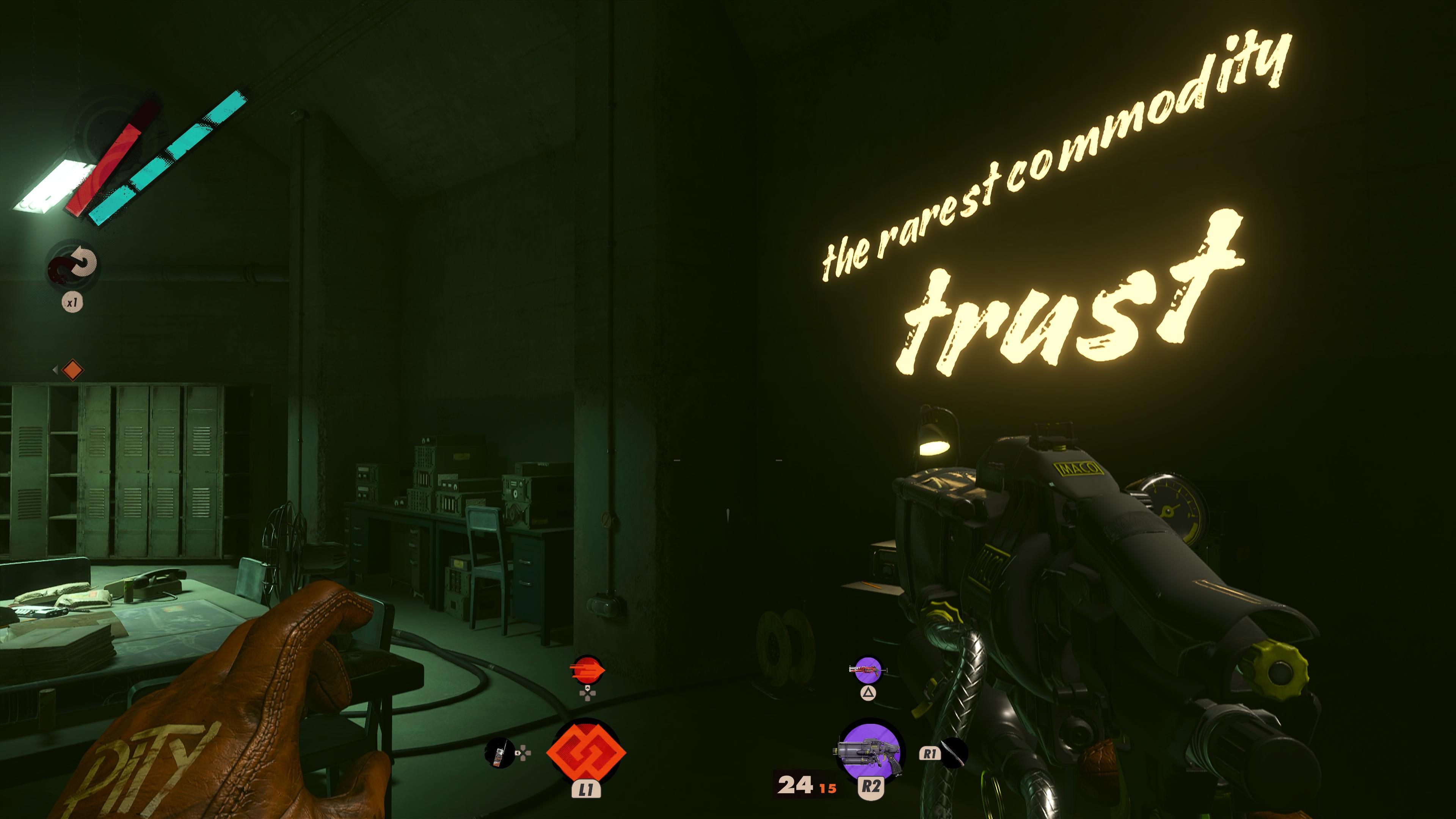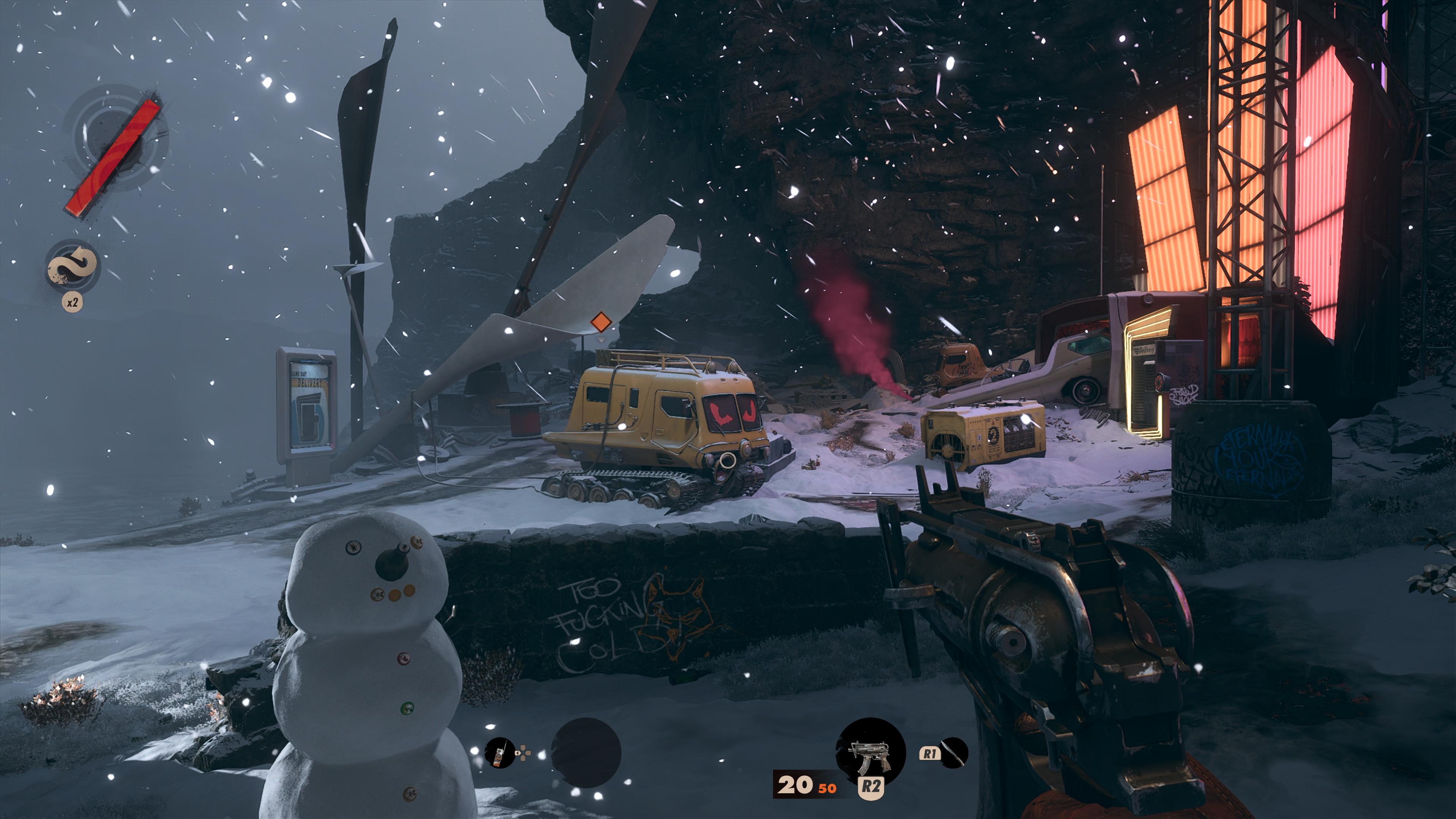 Gdyby jednak ktoś wciąż miał problemy z ukończeniem gry, to twórcy również przygotowali system progresji postaci gracza, który pozostawia sporo pola do zabawy, ale też i wiele do życzenia, jeśli ktoś oczekiwał od niego głębi. Cole rozwija się poprzez znalezione moce, zebrane z pokonanych wizjonerów, poza początkowym Blin….to znaczy…Shiftem. Jednym z moich ulubionych jest Link. Moc ta łączy ze sobą przeciwników stojących w niedalekiej odległości od siebie. To, co zrobimy dowolnemu z nich, stanie się pozostałym, więc zabijając z ukrycia jednego, jesteśmy w stanie położyć całą grupę mieszkańców Blackreef. W ostatniej misji, gdzie roi się od wielkich skupisk przeciwników, użycie Linka daje niesamowitą dawkę radochy i zadowolenia. Pozostałe są równie odjechane, wszystkie natomiast wyglądają na coś, co już chyba widziałem na materiałach z Dishonored. Drugim sposobem na rozwój jest ulepszanie broni, dzięki perkom, które wypadają z pokonanych przeciwników. Bronie mają od jednego do trzech miejsc na perki, które np. zwiększają magazynek, redukują odrzut, czy wydłużają jej nominalny zasięg. Natomiast, aby je zachować (podobnie jak bronie), musimy poświęcić na nie odpowiednią pulę punktów, w grze zwanych Residuum. Walutę tę można farmić i zbudować sobie swój wymarzony, najlepiej działający da nas build. Aczkolwiek mam wrażenie, że sporo tej części gry jest tutaj albo wrzucone na siłę, albo ze względu na osoby, które niespecjalnie potrafią w strzelanki. Fakt faktem, że jeśli zostaniemy zauważeni, to trzeba się trochę napocić, aby wyjść z tarapatów, jednak mimo wszystko – ta gra jest naprawdę łatwa. Zatem trochę moim zdaniem overkill z całą masą perków, których nie użyłem chyba ani razu, ALE wyobrażam sobie dwie rzeczy. Po pierwsze, już z rozmowy z Barkiem wnioskuje, że co gracz to inny podejście do rozgrywki – to oczywiste. Po drugie, perki mogą się przydać w starciu z innymi graczami, albowiem Deathloop posiada system rywalizacji online, oparty na napadach graczy – i cyk mamy możliwość referencji do Dark Soulsów! Gracz wciela się w rolę Joanny i próbuje przeszkodzić innym graczom, podobnie jak robi to SI w kampanii. System ten można wyłączyć lub ustawić w trybie globalnym, lub tylko dla znajomych PSN. Pomysł ciekawy, pasujący jak ulał do ról dwójki bohaterów, i choć nie spędziłem z nim zbyt wiele, to chapeau bas za pomysł na umieszczenie go w produkcji i realizację. Jako Joanna zdobywamy punkty za pomyślne inwazje, za które odblokowujemy nowe skille, ulepszenia oraz bronie, wszystkie znane z kampanii. Nie widzę potencjału na przesadną drugie życie Deathloop dzięki temu trybowi, ale jako ciekawostka jest mocno OK.