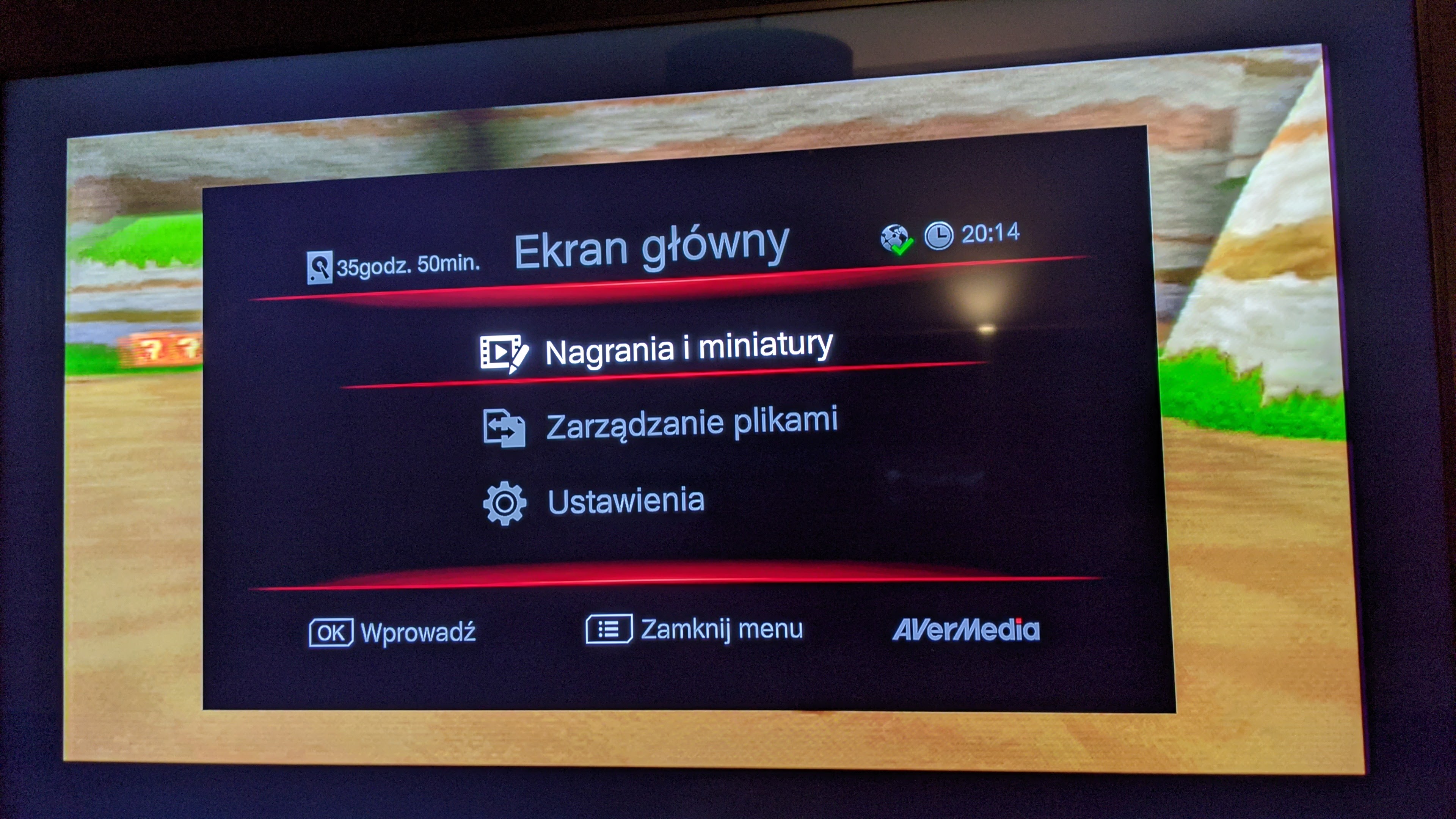 W pudełku z nagrywarką znajduje się sam sprzęt, przewód HDMI, zasilacz (wraz z europejską i angielską wtyczką), pilot (plus za baterie) oraz papierologia. Zatem pierwszą rzeczą, o jakiej musicie pamiętać, że do nagrywania potrzebny jest wam dysk 2.5 cala, sformatowany na NTFS. Na szczęście miałem taki ze starego laptopa, więc zamontowałem go pod zaślepką u spodu modelu. Sama nagrywarka robi spokojne wrażenie. Design jest raczej stonowany, a małe pudełko nie rzuca się w oczy. Na frontowej części mamy USB pod zgrywanie filmów, diody wskazujące na źródło wideo, które dochodzi do nagrywarki, a także światełko nagrywania i zasilania. Po uruchomieniu naszym oczom ukazuje się konfiguracja początkowa, gdzie przeklikujemy się po ekranach podstawowych ustawień. Ogólnie rzecz biorąc, oprogramowanie całkiem nieźle jest opisane, płynnie działa, więc od strony wizualnej nie miałem żadnych problemów, aby dowiedzieć się wszystkiego, co skrywa nagrywarka. Można nawet przycinać nagrania wbudowanym edytorem. Dodać watermark, wysłać nagranie z nagrywarki do serwisu YouTube, a nawet dorzucić do nagrania komentarz głosowy poprzez wpięcie mikrofonu na 3.5mm jacka. Bardzo fajną cechą (i w zasadzie newralgiczną) jest możliwość pracy sprzętu w trybie passthrough, a więc możliwości grania na podpiętych do niego konsolach, bez włączania go. Pilot jest dosyć mały i lekki, więc prezentuje się nieco tanio. Chciałem sprawdzić aplikację mobilną, którą reklamuje pudełko, aczkolwiek nie znalazłem jej w sklepie Androida – cóż, sprzęt ma już trochę (rok produkcji 2013). Do tego momentu nagrywarkę miałem podpiętą do chlebaka przez HDMI. Zatem, aby nagrywać materiały, musiałem przejść na połączenie kablem komponent – koniec prostych rzeczy.