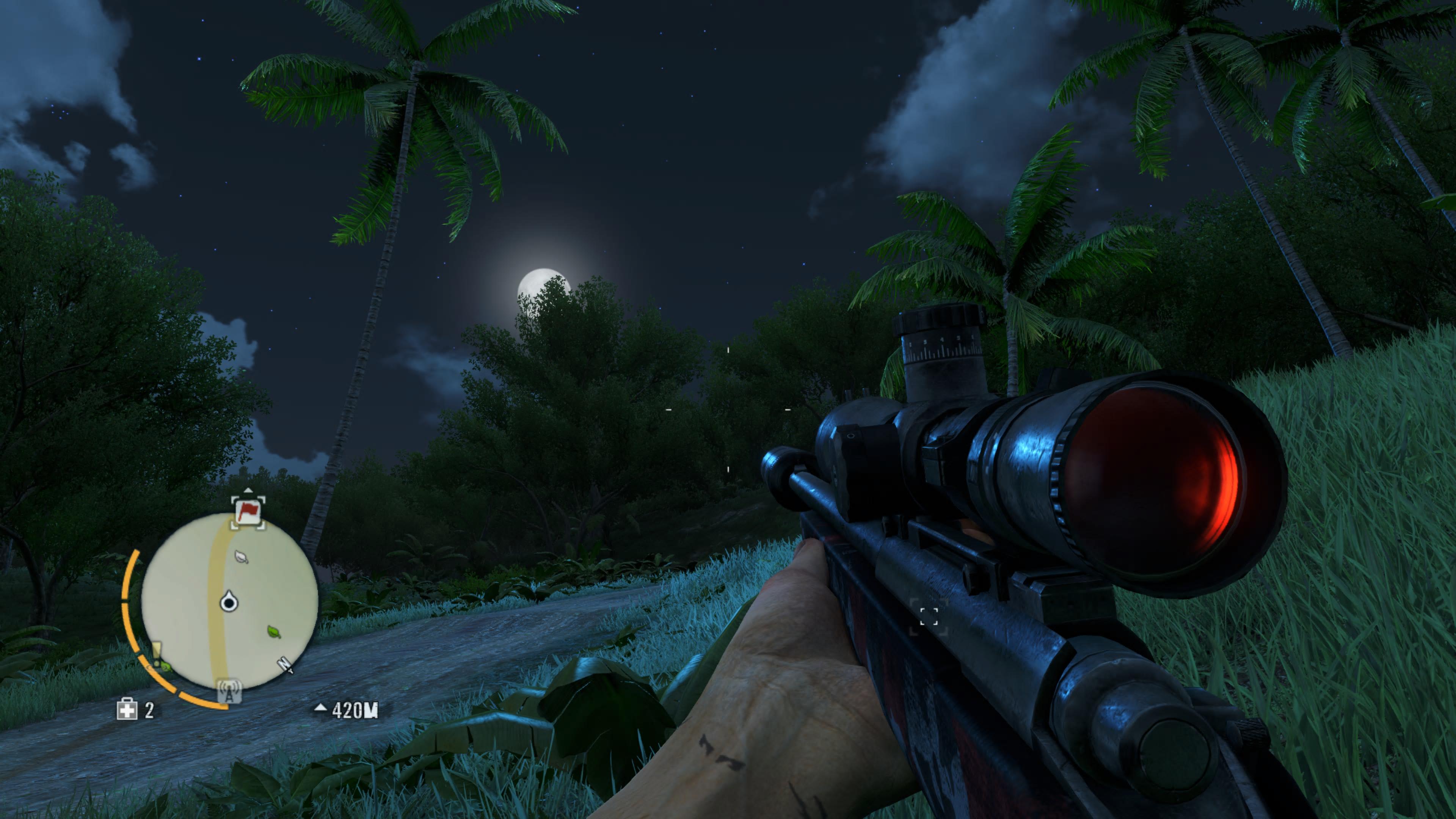 Swoboda to motyw powtarzający się przez całą rozgrywkę. Radiostacje, obozy, specjalnie wyzwania z limitem czasu i skalą punktową, polowania na dzikie zwierzęta, zlecenia na zabójstwa konkretnych piratów, wyścigi po dżungli na czas czy mini-gry w obozach. Od samego początku gra zupełnie zostawia nas samych ze światem gry, przesadnie nie przeszkadzając. Do naszej dyspozycji oddano kilka drzewek rozwoju, które czynią z nas tropikalnego Rambo. Również i w nich mamy dużo swobody wyboru, czy skupiamy się na zwiększeniu cech leczniczych u naszego bohatera, czy raczej na finezji w skrytobójstwach. Na koniec jednak i tak możemy być wszystkim. Może na początku nieco prowadzi za rączkę, jeśli chodzi o naukę systemu wytwarzania przedmiotów z upolowanej zwierzyny (po oskórowaniu) czy leków z roślinności wyspy. Ubisoft oddało nam w ręce duży plac zabaw, choć oczywiście to skala PS3, nie PS4 czy obecnej generacji. Widoczne jest to po zarówno skali, jak i wykonaniu. Cała wyspa Far Cry 3 zbudowana została z tych samych elementów. Każde wzgórze wygląda tak samo. Las to (może) kilka assetów obracanych dla niepoznaki, co zresztą tyczy się wielkości flory. Mimo wszystko, co muszę przyznać, że nie wygląda to źle czy tragicznie, a nawet panowie zajmujący się level designem ładnie wykorzystali trawę w grze, wskazując nią ścieżki na zboczach wzniesień, którymi Jason jest w stanie na nie się wspiąć – nie wiem, czy było to zamierzone, czy nie, ale w każdej sesji mi się to przydało. Pomimo takiego skromnego „budżetu” assetów, tropiki wygląda na tropiki. Modele zwierząt przypominają te z prawdziwego świata – i na tym zostawię ten temat. Postacie są okej, z całkiem niezłą mimiką, co było ważne, bo gra bardzo lubi bohaterów gadających nam w twarz. Gra całkiem nieźle działa, nie zauważyłem większych zgrzytów, nawet będąc w samym środku palącej się dżungli. To również jest fajnym ficzerem, który przypomniał mi ww. materiały z Far Cry 2, gdzie zachwycano się możliwości spalenia całego terenu wokół gracza. Wystarczy granat wyrzucony w krzaki, nie mówiąc już o koktajlu Mołotowa, a roślinność dookoła nas stanie się morzem płomieni. Jak jednak mówi stare porzekadło: gdzie systemów sześć tam bugów więcej.
