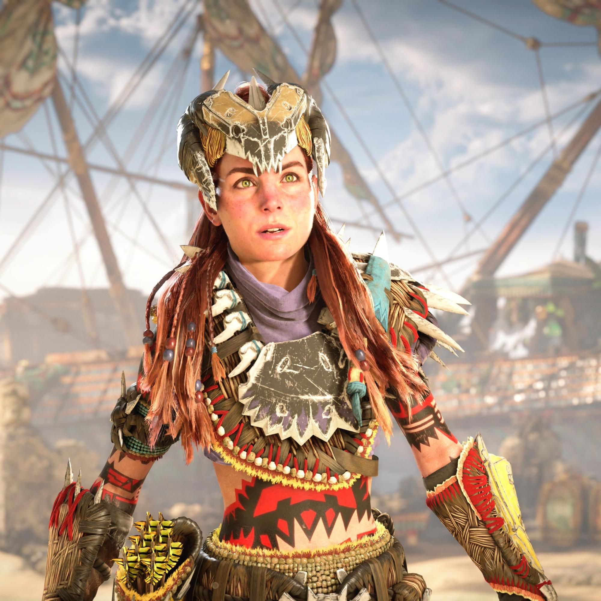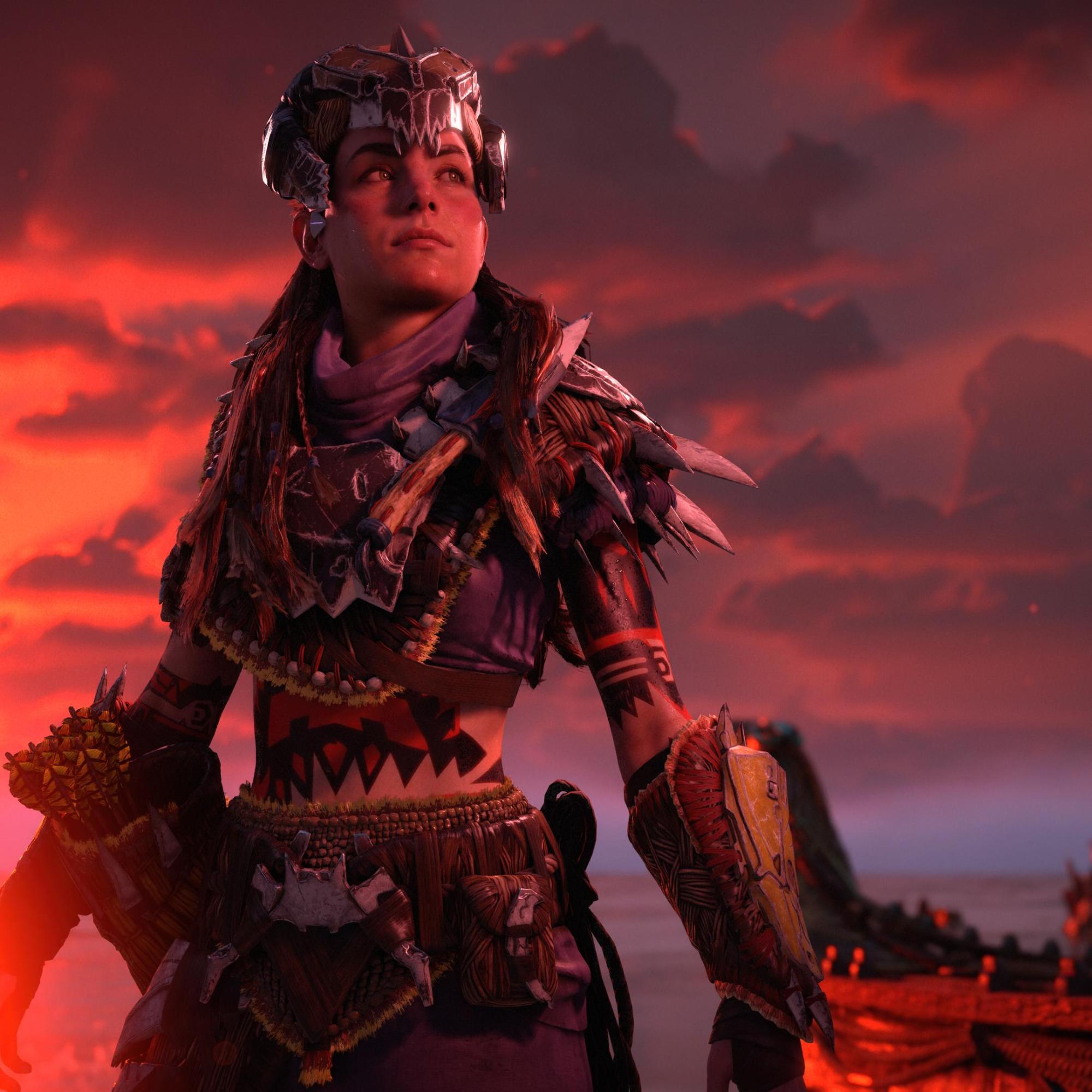 Świat światem, jednak wiecie, kiedy zdarzało mi się, odkładać pada i po prostu patrzeć na grę? Kiedy Aloy kogoś spotkała. Dowolnie kogo. Pamiętający moją recenzje Zero Dawn (ta, jasne, tekst sprzed kilku lat) wiedzą, że elementem, który zrobił na mnie szczególne wrażenie w pierwszej części, była mimika twarzy. Emocje przekazywane zmarszczeniem brwi czy wykrzywieniem ust. Forbidden West podnosi poprzeczkę dla tego elementu rzemiosła animacji na kolejny poziom oraz dokłada coś więcej, żeby konkurencja nie miała czasem zbytnio łatwego zadania z nadrobieniem straty — kunszt reżyserski. Ustawienie kamery, zachowanie postaci, drobne i makro-gesty. I dotyczy to właściwie wszystkich dialogów w grze albo Guerilla Games dostarczyło tak wiele szytych na miarę bohaterów, że nie pamiętam tych „zwykłych” rozmówek — co nie jest wykluczone. Przez całą moją rozgrywkę, trwającą blisko setkę godzin, nieustannie byłem onieśmielany reżyserią kolejnych rozmów z NPC-ami, aż zobaczyłem napisy końcowe i momentalnie stało się jasne, dlaczego tak bardzo ten element gry mi imponował. Nie będę tego zdradzał, fajnie by było, abyście sami do tego dotarli, choć pewnie i tak część z was poszuka zaraz w Google, o co chodzi. Oczywiście animacje i szczegółowość oprawy graficznej w modelach postaci, czy maszynach, powala. Aż trudno sobie wyobrazić, jak wiele pracy studio musiało włożyć w warstwę wizualną produkcji. A ponieważ piszę o tym w akapicie siódmym recenzji, liczę, że nie pojawi się zbyt wiele komentarzy przypominających mi, że najważniejszy jest gameplay. Tak, tak. Wiem. Najważniejszy jest też charakter u osoby, nie wygląd. Rozumiem. Mhm.