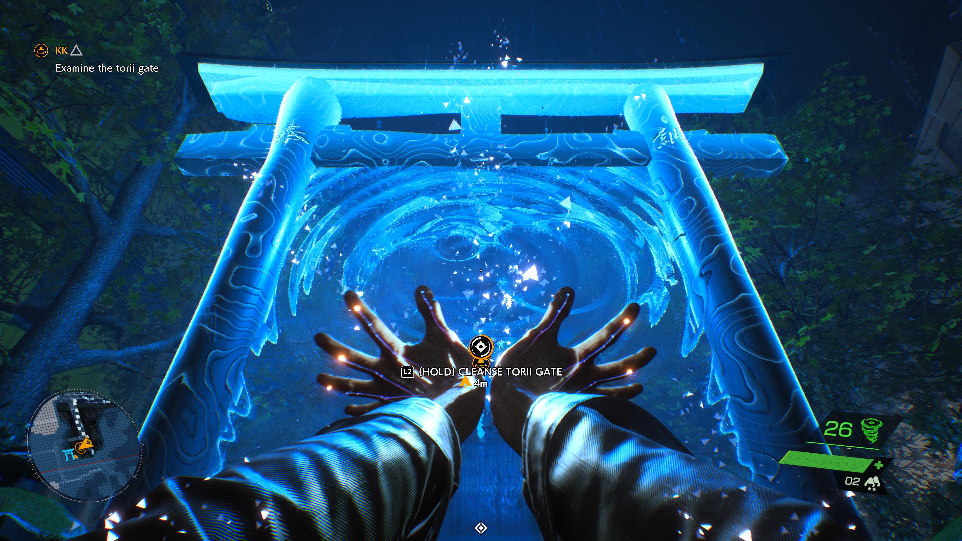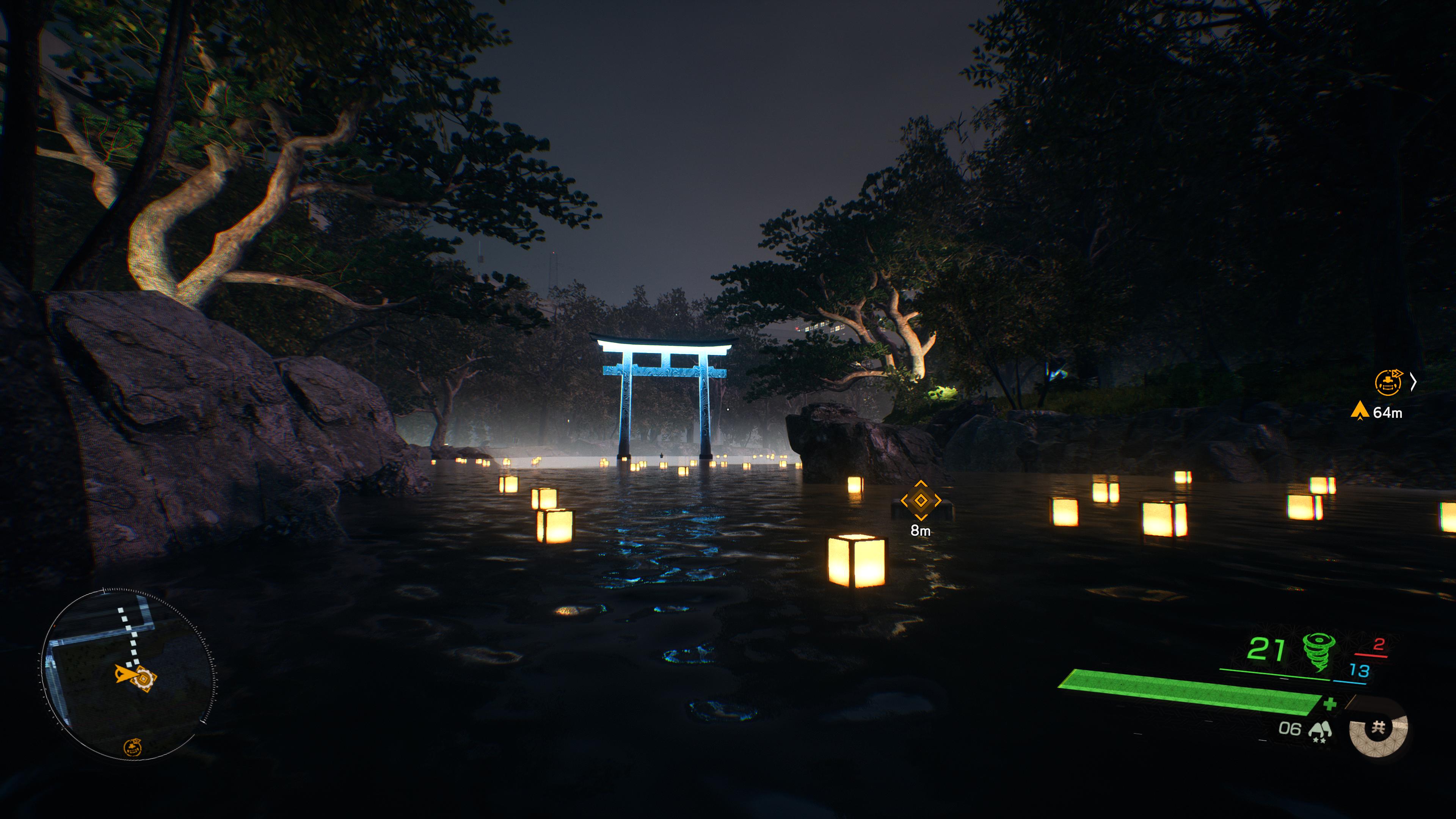 Jeśli na tym etapie nie czujecie jeszcze DOOMa w opisie mechanik gry, to co powiecie na to, że po zmęczeniu przeciwnika i doprowadzeniu jego punktów życia na skraj przepaści, mamy możliwość bezpośredniego zaatakowania wręcz odsłoniętego punktu krytycznego, tzw. jądra. Jeśli tak wykończymy przeciwnika, pozostawi on po sobie amunicję, a czasem i nieco zdrowia. Zwykłe wykończenie zostawia nas z niczym, prócz punktów doświadczenia. Wciąż, nie? Eh, a co powiecie, że ta amunicja czy punkty zdrowia nie czekają wiecznie, tylko musimy się do nich spieszyć, bo znikną? No. Wiedziałem, że was przekonam. To DOOM w wersji japońskiego anime z mniejszym PEGI. Problem jednak jest taki, że dosyć szybko wkrada się do walki monotonia, spowodowana ograniczeniami, jakie twórcy, chociażby ze względu na lokacje narzucili na combat. Z początku, zanim człowiek załapie schematy, na jakich opierają się starcia, gra sprawia nawet problemy – ale tylko wtedy. Całe szczęście, większość starć można załatwić, zanim zdążą wybuchnąć. Albo poprzez zachodzenie przeciwników z ukrycia czy załatwianiu ich headshotami ze specjalnego łuku, którym posługuje się Akito, gdy np. nie może korzystać z magii. Trochę wygląda to jakby twórcy po świetnym pomyśle na produkcję, zgubili się, gdy przyszło do zbudowania dla Ghostwire Tokyo, sprawiającej radochę rozgrywki. Stąd zaciągane siły z ekip po sąsiedzku – prawdopodobnie – w celu ratowania sytuacji. Czasu pewnie też nie starczyło na drzewka umiejętności i rozwój bohatera, przez co obszar ten jest sprowadzony do absolutnego, nudnego minimum koniecznego. Mimo wszystko walka nie jest zła. Czarowanie to na pewno pomysł bardzo ciekawy, jednak za dużo tego. Naprawdę twórcy przesadzili z rozciągnięciem tytuły. Nie wiem, czy bali się reakcji graczy na grę krótszą, aniżeli półka AAA, czy co, ale moim zdaniem tytuł mógłby być tak z 1/4 mniejszy.