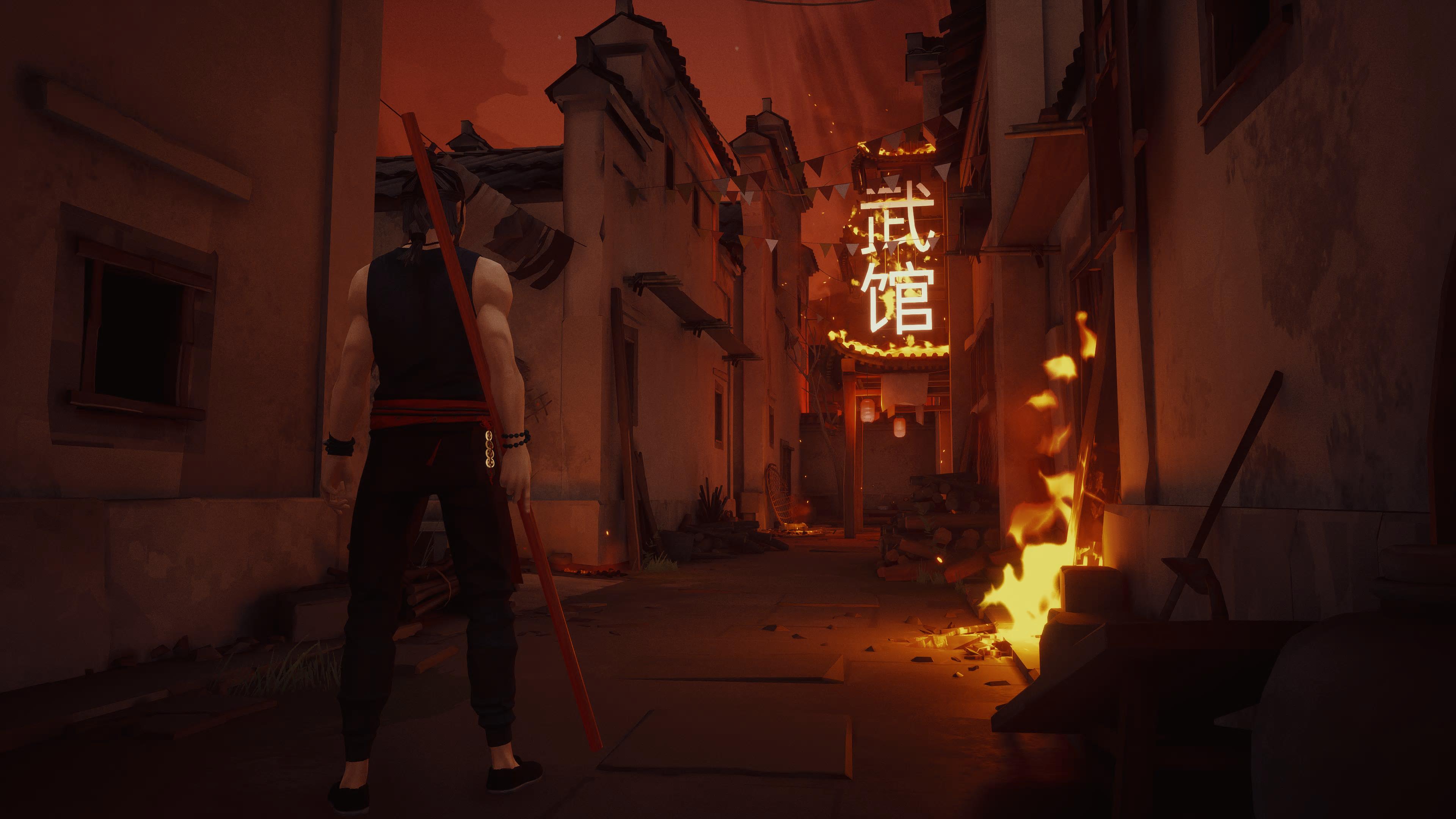 Sifu w telegraficznym skrócie jest historią o zemście, jakich pełno w filmach z Hongkongu czy anime. Wcielamy się w rolę adepta szkoły kung-fu, której wszyscy uczniowie oraz mistrz zostali wybici przez grupkę najemników. Na jej czele stał natomiast wyklęty z szeregów klanu, uczeń mistrza. Życie traci również i nasza postać, która pomimo bardzo młodego wieku i ukrycia się w kredensie, nie uciekła przed ostrzem zabójców. Zakłopotani? Jednym ze skarbów naszego klanu jest (chyba mogę go tak nazwać) łańcuszek składający się z pięciu chińskich monet, nawleczonych na nić czy kawałek czerwonego sznurka. Ten magiczny artefakt pozwala nam powstawać ze zmarłych, aczkolwiek ma ograniczenia, o których powiem znacznie więcej, gdy opisywać będę rogalikowość Sifu, w którego ważnym elementem jest właśnie ten skarb rodzinny. Plot nie brzmi, jak coś specjalnie odkrywczego, a nawet brzmi dziwnie znajomo, natomiast wraz z postępem i kolejnymi etapami naszej zemsty, odkrywamy tajemnice skrywane przez naszego mistrza i klan. Kawałek po kawałku obnaża się przed nami „prawda”. Ta część historii to prawdziwe drugie dno, które osobom zainteresowanym jedynie ukończeniem gry, może zupełnie przelecieć koło nosa. Jeśli natomiast się zaangażujecie w tytuł, to czeka was bardzo intrygująca historia.
