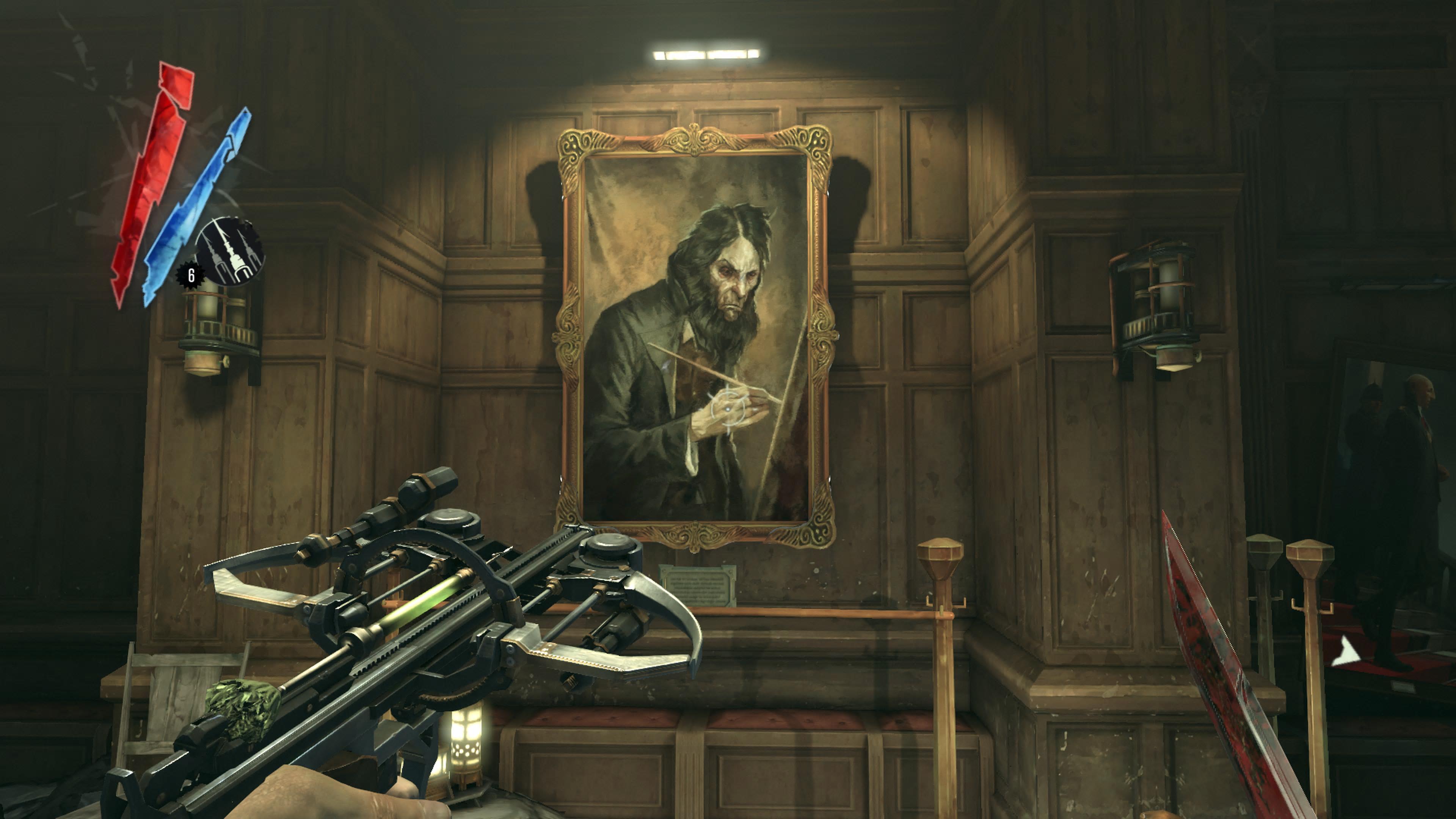 Przyznać się muszę tutaj, że początkowo czułem sporą presję związaną z tyloma możliwościami, mnogimi celami do wykonania oraz faktem, że niektóre z rozwiązań są ukryte w gąszczu rozmów przechodniów czy losowych notatkach. Gdzieś z tyłu głowy pojawiał się głos, mówiący mi, abym nie ominął niczego i sprawdził każdy kąt miejsca misji, przed zajęciem się moim celem. Tutaj również wychodzi na jaw kunszt ekipy z Francji, albowiem pierwsze zlecenie uczy nas tego, jak gra działa i jak powinniśmy się w niej zachowywać. Na co zwracać uwagę i czego szukać w otoczeniu. Sporą pomocą była również możliwość zapisania stanu gry w dowolnym momencie, o czym twórcy wspominali przy okazji ekranów ładowania, więc nie ma mowy o wykorzystywaniu luki gry, a korzystaniu z opcji przemyślanej przez devów. Doskonale wiedzieli, że w tak gęstej systemami produkcji, gracze, będą zaskakiwani tym, jak gra reaguje na ich gameplay, więc powinni mieć możliwość „spróbowania jeszcze raz”. Wpisuje się w to ekran podsumowujący misje, na którym dostępna jest opcja powtórzenia całego zlecenie, jeśli końcowy wynik nie był dla nas satysfakcjonujący. Dishonored, albowiem reaguje nie tylko w trakcie misji, ale i poza nimi, dzięki systemowi Chaosu. W skrócie: im bardziej krwawe, głośne i śmiercionośne nasze poczynania w misjach, tym świat gry będzie stawał się bardziej wymagający, np. poprzez zwiększoną liczebność zakażonych, żywych trupów na ulicach oraz sił porządkowych. Oczywiście, ze względu na moje jak najcichsze podejście do zleceń, spowodowało, że nie uświadczyłem jego pełnych możliwości, a jedynie liznąłem efekty Chaosu, gdy czyściłem drogę ucieczki z pierwszej eliminacji i nie wiedziałem o skutkach. Tym większą miałem motywację do działania w cieniu, poza wzrokiem strażników, wykorzystując strzałki usypiające, chowając ciała w składzikach. Chwilę zajęło, zanim załapałem, jak działa wzrok strażników (niestety nie ma mapki ze stożkami) albo kiedy mogę pozwolić sobie na wychylanie się zza przeszkód – i bawiłem się przy tym kapitalnie.