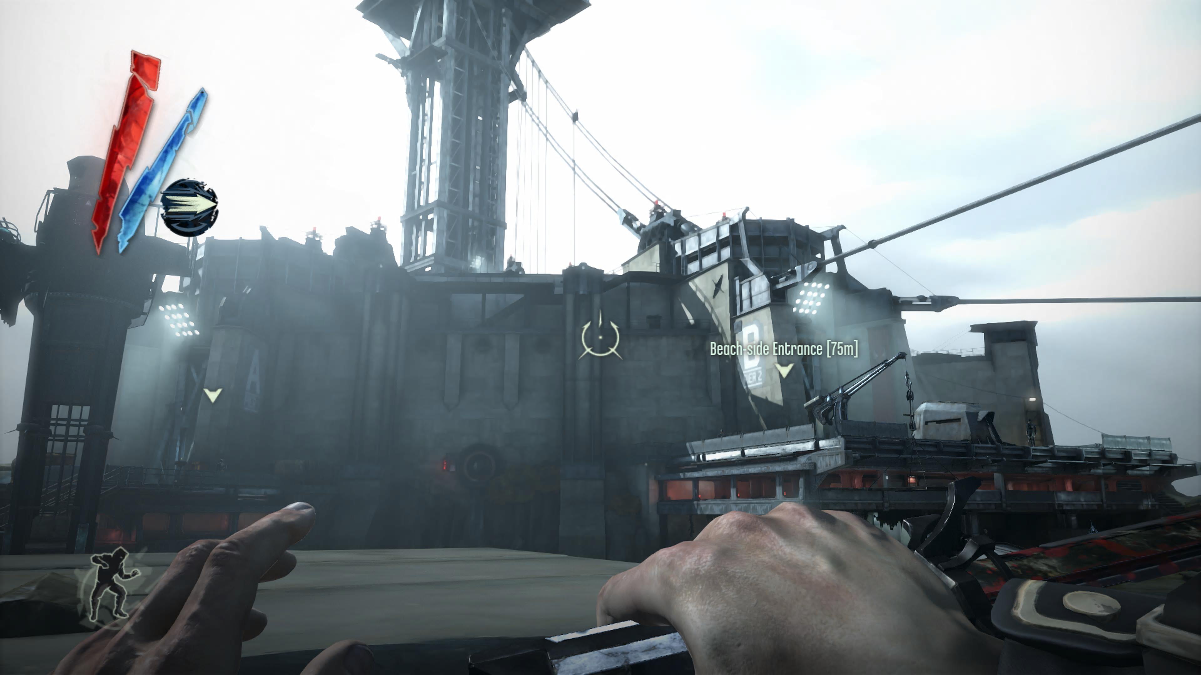 Jedną z pierwszych myśli, jaka towarzyszyła mi w trakcie ogrywania to: „Matko! Przecież nie będę miał żadnych klipów z gry, aby wrzucić do recenzji!”. Dishonored, albowiem jest grą stealth, i choć wiele osób mówi o tytule jako połączeniu skradanki oraz gry akcji, to w mojej rozgrywce akcji za wiele nie uświadczyłem. Wszystko przez to, że gra daje bardzo dużo swobody w podejściu do misji, ale jednocześnie wyraźnie wskazuje, że ciszej znaczy sprawniej, znaczy lepiej. Budowa rozgrywki oparta jest na lokacji wypadowej, w której załatwiamy swoje sprawy oraz misji, na które udajemy się do połączonych ze sobą, niezbyt dużych otwartych lokacji. Każdy cel, każda lokacja, do której mamy się dostać, umieszczona została w gąszczu różnych ścieżek, podejść, wyzwań i rozwiązań. Naszymi przyjaciółmi są wszelkie gzymsu, daszki, kanały wentylacyjne, instalacje elektryczne, ścieki, odpływy itp. Level design naprawdę robi wrażenie. Z każdej sytuacji jest wyjście albo i wejście, w zależności, czego szukamy. Czasem rozwiązanie jest wielkości szczura albo daleko nad nami, ponad możliwościami fizycznymi człowieka. A zatem, w mojej rozgrywce skradałem się dużo. Zgodnie z moim zamiłowaniem do skrupulatnego planowania podejść i pozostawania niezauważonym. Stąd rozgrywka oglądana przez osoby trzecie, musi być strasznie nudna, jednak zapewniam, że takową nie jest – no bo przecież, w materiale wideo trudno zaprezentować procesy myślowe, jakich gra nieustannie od nas wymaga. Wspominałem już o elementach level designu oraz mnogości podejść do wejścia i wyjścia ze zlecenia. Nie ma ścieżek optymalnych, a wybór tej, która stanie się naszym rozwiązaniem, zależy w sporej mierze od tego, w jaki sposób rozwijamy Corvo, głównego bohatera gry.