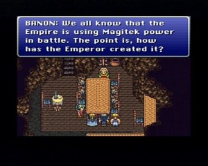 Świat, w którym rozgrywa się akcja, przez mieszkańców określany jest jako World of Balance. Nazwa ta wzięła się od konfliktu, jaki miał miejsce tysiąc lat przed wydarzeniami z gry. W nim toczyła się wojna o dominację pomiędzy trzema stronami, których nazw nam nie podano. Co istotne natomiast, wszystkie strony wykorzystywały w walce modyfikowalnych żołnierzy, których nasączano magią, tworząc niewolnicze istoty. To właśnie o nich pisałem wcześniej, bo mowa o Esperach. Wykorzystywani w walce jako broń, która pochłonęła ogromne straty po wszystkich stronach. W końcu strony doszły do opamiętania i postanowiły zaprzestać konfliktu, a magię oraz stworzone Espery umieścić w innym wymiarze i na zawsze zamyknąć do niego dostęp. Ludzkość bez pomocy czarów rozwijała się technologiczne w pokoju i dobrobycie. Gdy trafiamy do gry Imperium (zawsze to cholerne Imperium), jedna z nacji World of Balance, postanawia podbić świat za pomocą nowej technologii: Magitek – połączenia mocy magii i technologii. Skąd czerpią magię, której od tysięcy lat nikt na świecie nie widział? Aby nie robić spoilerów, powiem tylko, że Imperium jest bardzo bliskie korporacji Shinra. Inne kraje nie mają szans i tak oto Imperium podbija większość ziem, m.in. dzięki widzianym we wstępie robotom. Jak zwykle bywa w takich okolicznościach, przeciwstawiają się temu rebelianci, tutaj nazywani Returners.
