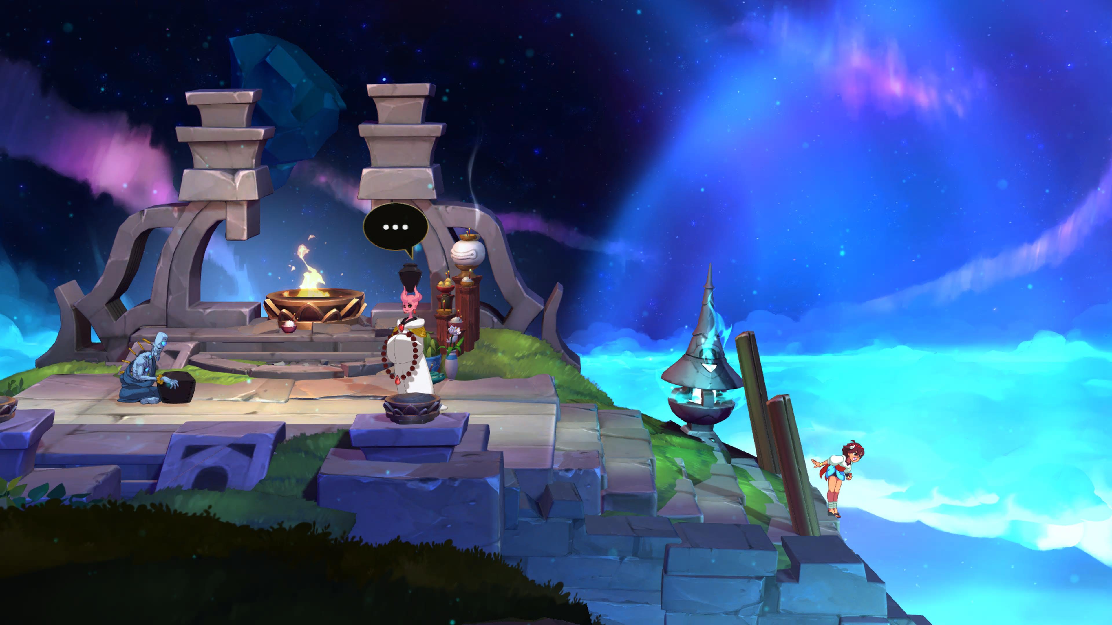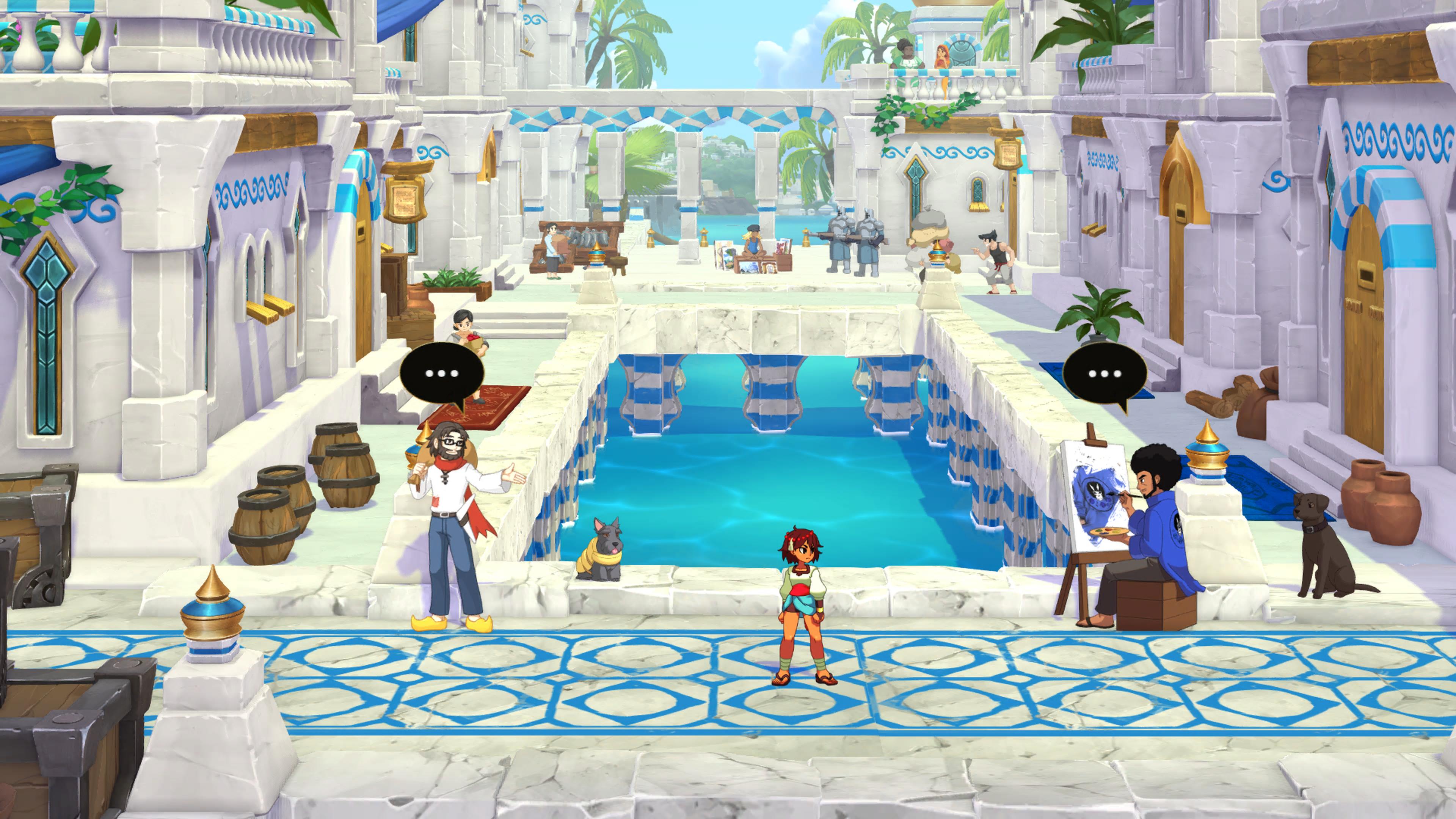 Zaraz po uruchomieniu produkcji rzuca nam się w oczy intro do gry, przygotowane przez studio Trigger, które m.in. ostatnio odpowiedzialne było za anime Edgerunners, w świecie Cyberpunka. Renomowana ekipa animatorów przygotowała bardzo ładne wprowadzenie, ukazujące świat gry, jej bohaterkę oraz kreskę towarzyszącą pozostałej grze. Całość produkcji jest ręcznie malowana, z kreską przypominającą mi zachodnie animacje, wzorowane na anime. Modele postaci, przeciwników, elementów otoczenia, krajobrazów czy efektów wizualnych w trakcie starć, np. kurzu pojawiającego się po upadku, to wszystko zostało ręcznie namalowane przez grafików studia. Przy czym warto zaznaczyć, że z uwagi na dynamiczne starcia oraz bogatą paletę postaci, z których będziemy mogli korzystać, praca artystów studia jest tym bardziej imponująca. Bardzo też bym chciał wiedzieć, czy NPC w miastach to odrzuty z procesu produkcyjnego, bo nigdy nie widziałem tak różnorodnych postaci w tle. Cała estetyka jednocześnie mam wrażenie, że czerpie z bardzo wielu źródeł i miejsc naszej historii. Jest tutaj dużo klimatów Indii, jest miasto wzorowane na budowlach Azteków, kraina jak z steampunkowego Londynu czy nadmorskie miasteczko z budownictwem przypominającym tereny Morza Śródziemnego. Indivisible mnie oczarowało, ale oczywiście, mocno „bajkowa” kreska może się komuś nie spodobać, chociażby dlatego, że sugerować może pewną infantylność całości – co nie mogłoby być dalsze od stanu faktycznego.