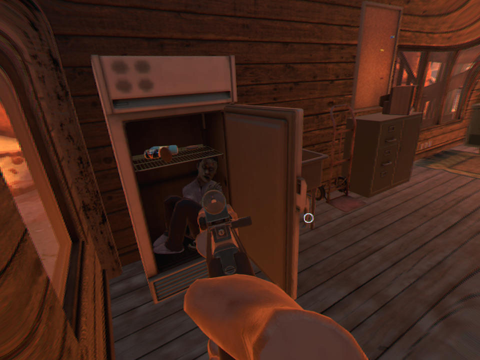 Nasz bohater, prawdopodobnie z racji paranoi wywołanej samotnością i wiecie… apokalipsą zombie, wyhodował w sobie dwa nawyki: nieustannie gada do siebie i nazywa wszystkich zombie Fred. Otwiera lodówkę i rzuca: „Fred, nie patrz na mnie takim zimnym wzrokiem„, i takie tam. Trochę osób narzekało w sieci, że gada za dużo, ale rozumiem, że w pewnym sensie to konieczne ze względu na VR, ale też ma sens, ponieważ w sytuacji, w jakiej znalazł się bohater, też byśmy gadali pewnie non-stop do siebie i wszystkiego, co przypominałoby ludzi – ktoś oglądał Cast Away? Poza suchymi żartami nasz bezimienny heros klnie jak szewc i to dużo. Atmosfera przez większość gry jest raczej luźna, ale bywają momenty, szczególnie pod koniec, gdy gra robi się trochę poważna, a wtedy i bohater zmienia swój ton, zachowanie i ucina np. wszelkie żarty. Ogólnie rzecz biorąc, podoba mi się prowadzenie bardzo prostej i niewymagającej od nas zbyt dużo narracji, a zabieg z paranoikiem obdarzonym poczuciem humoru, uważam za świetny pomysł.