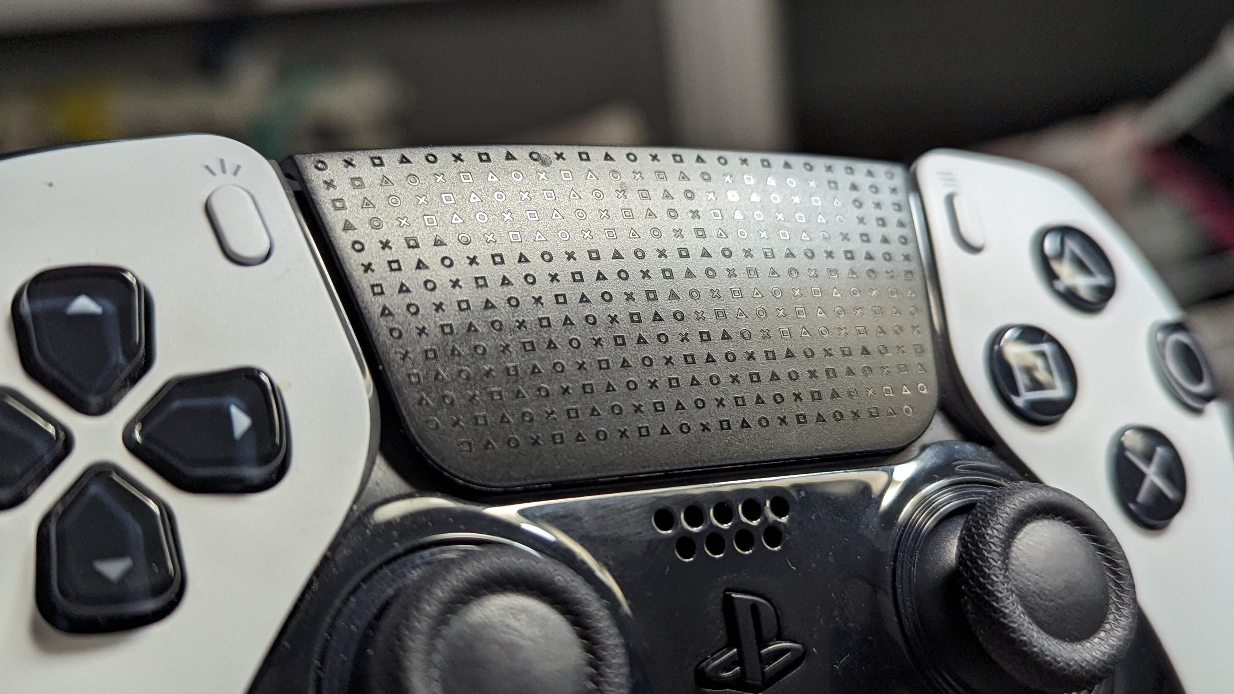 Sam pad po wyciągnięciu z wyżłobienia, nie różni się zbytnio od regularnego DualSense. Nawet waga jest dosyć podobna, więc nawet jeśli czytaliście, że pad jest cięższy, to różnica jest minimalna. Wręcz niezauważalna. W szczegółach od razu czuć nieco inną strukturę materiałów na poszczególnych elementach. Triggery doczekały się faktury z symboli PlayStation, aby palce jeszcze mniej się z nich ześlizgiwały. Tylną część pada, za którą trzymamy dłońmi pokrywa tutaj plastik o chropowatej powierzchni, przez co pad w rękach trzyma się jeszcze pewniej. Ostatnią zmianą jest touchpad, który z matowego, gładkiego plastiku, przeistoczył się w powierzchnię bardziej błyszczącą i pokrytą mikro symbolami, które delikatnie wyczuwa się pod palcem. Z początku bałem się, że przez błyszczącą powłokę panelu, będzie się on strasznie palcował, ale problemu, jak dotąd nie zauważyłem. Teraz przejdźmy do wszystkich elementów, które wyróżniają Edge od swojego „amatorskiego brata”.