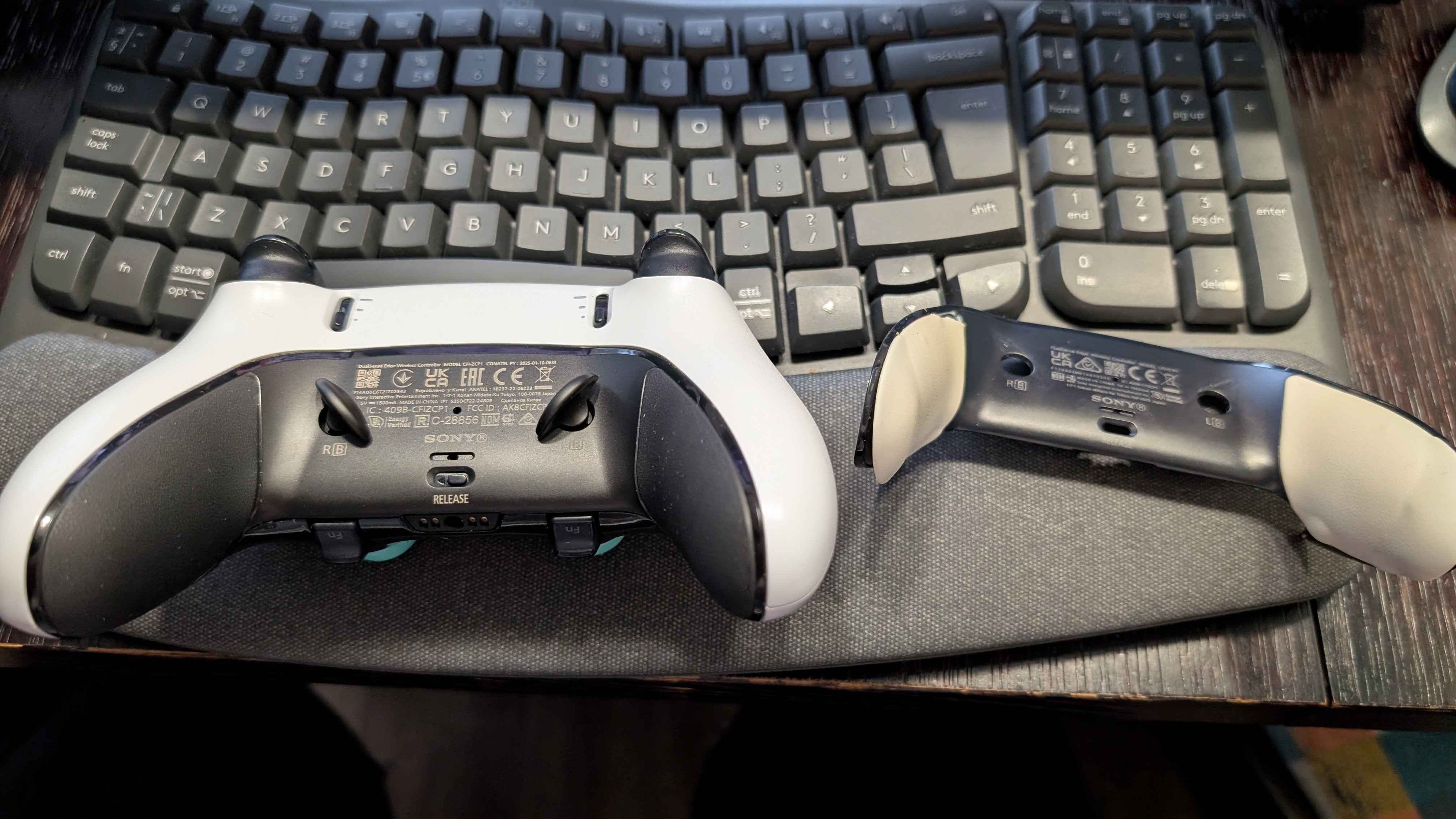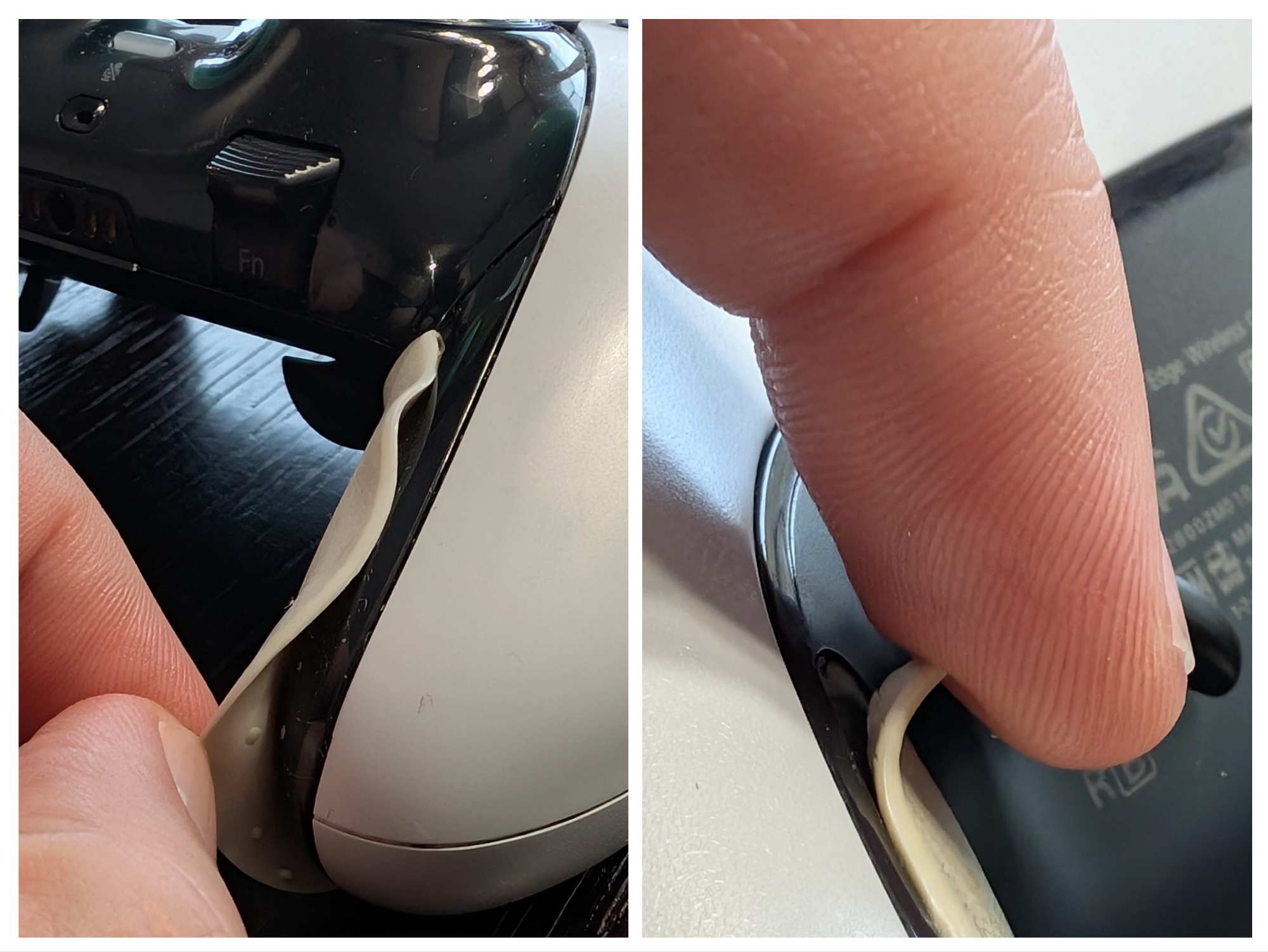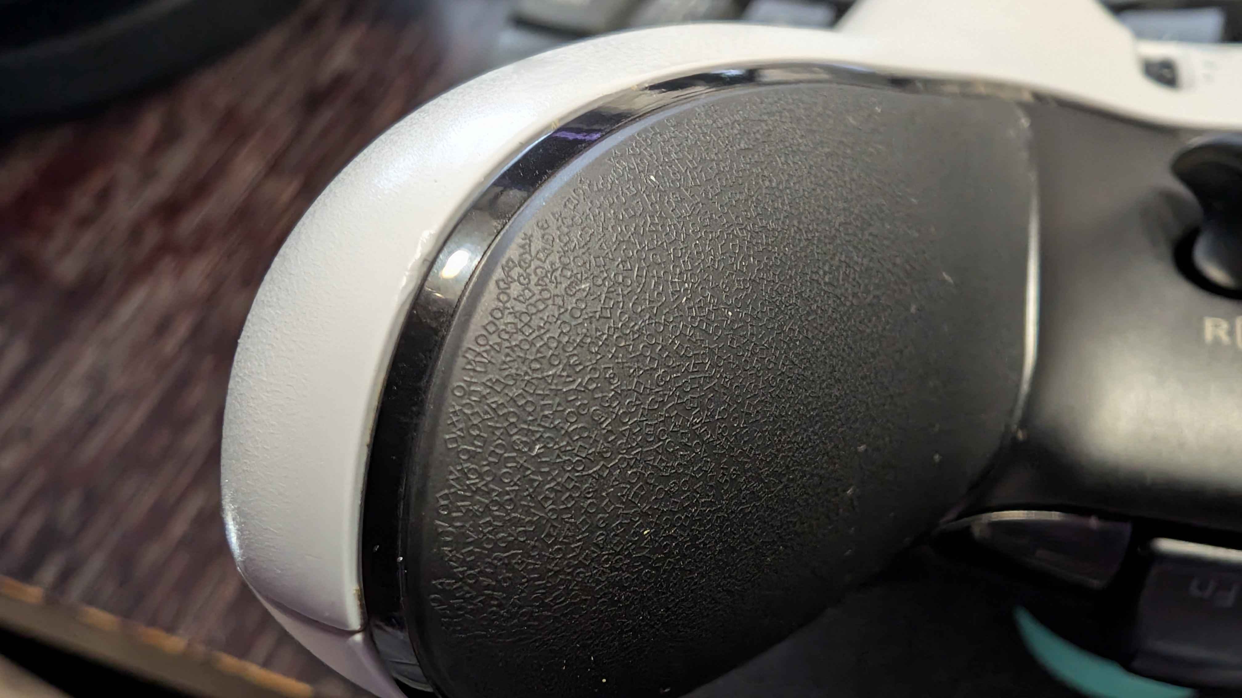 Czuję się w obowiązku napisać o wadzie, która zaczęła się pojawiać na padzie od jakiegoś czasu: niestety przy przecieraniu pada, gumowa powłoka na jego spodzie w jednym miejscu się rozłączyła od obudowy. Pojawiło się wybrzuszenie. I choć nie przeszkadza to w komforcie grania, jak i nie ma wpływu na rozgrywkę, to sytuacja się pogarsza i guma odrywa się w kolejnych miejscach. Na zdjęciu widać, jak to wygląda.