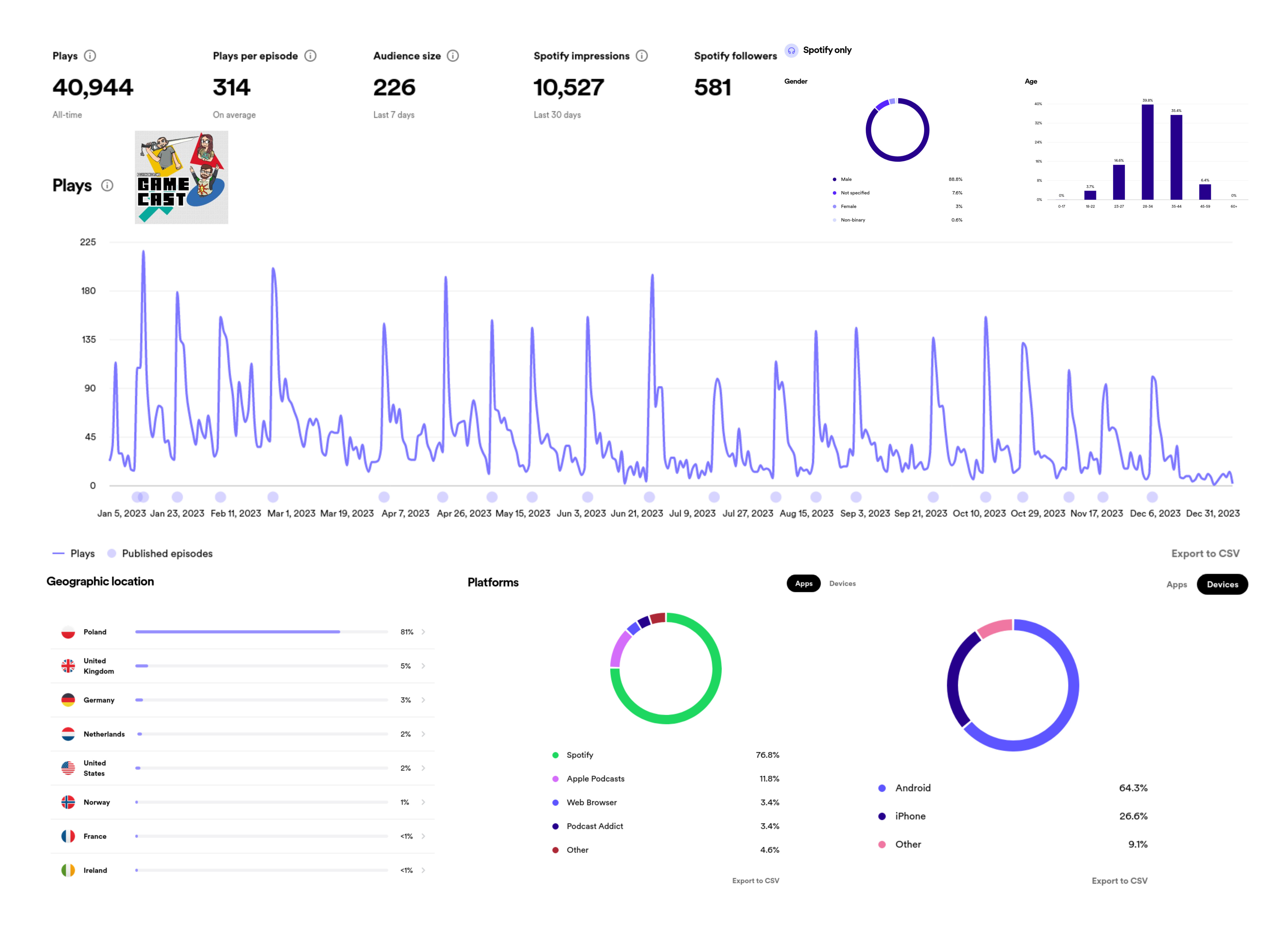 Miniony rok dla podcastów RaczejKonsolowo to zmiany i nowości, które niewątpliwie namieszały w statystykach i liczbach stojących za ich kondycją. W 2023 postanowiliśmy wyciąć z GAMECASTu część poświęcona newsom ze świata gier i stworzyć z nich zupełnie odrębny program. Tak powstał czokapik … znaczy RAPORT O GRACH. Podjęliśmy taką decyzję ze względu na fakt, że poprzednia forma GAMECASTu zmuszała nas do nagrywania przez dwa dni na każdy odcinek. To powodowało problemy logistyczno-małżeńskie i było ogólnie męczące. Jednocześnie z tyłu głowy miałem nadzieję, że uda mi się namówić a.k.a. Brucevskiego z Gralingradu na dołączenie do naszej ekipy. Chłop od zarania dziejów uczestniczył w naszych nagraniach jako auto pytań, komentarzy i uwag, które niejednokrotnie czytaliśmy na niemalże każdym odcinku. RAPORT O GRACH jawił mi się jako coś, co mogłoby go zainteresować, tym bardziej, że to nowy program, przygoda, produkt, gdzie można wyrobić sobie swoje miejsce w eterze – no i się zgodził! Pewnego wieczoru w marcu (czy kwietniu, było to w czasie remontu kuchni, więc mieszkałem u teściów) spotkaliśmy się na rozmowie online w trójkę i ustaliliśmy plan działania. W maju ruszył drugi podcast RaczejKonsolowo.